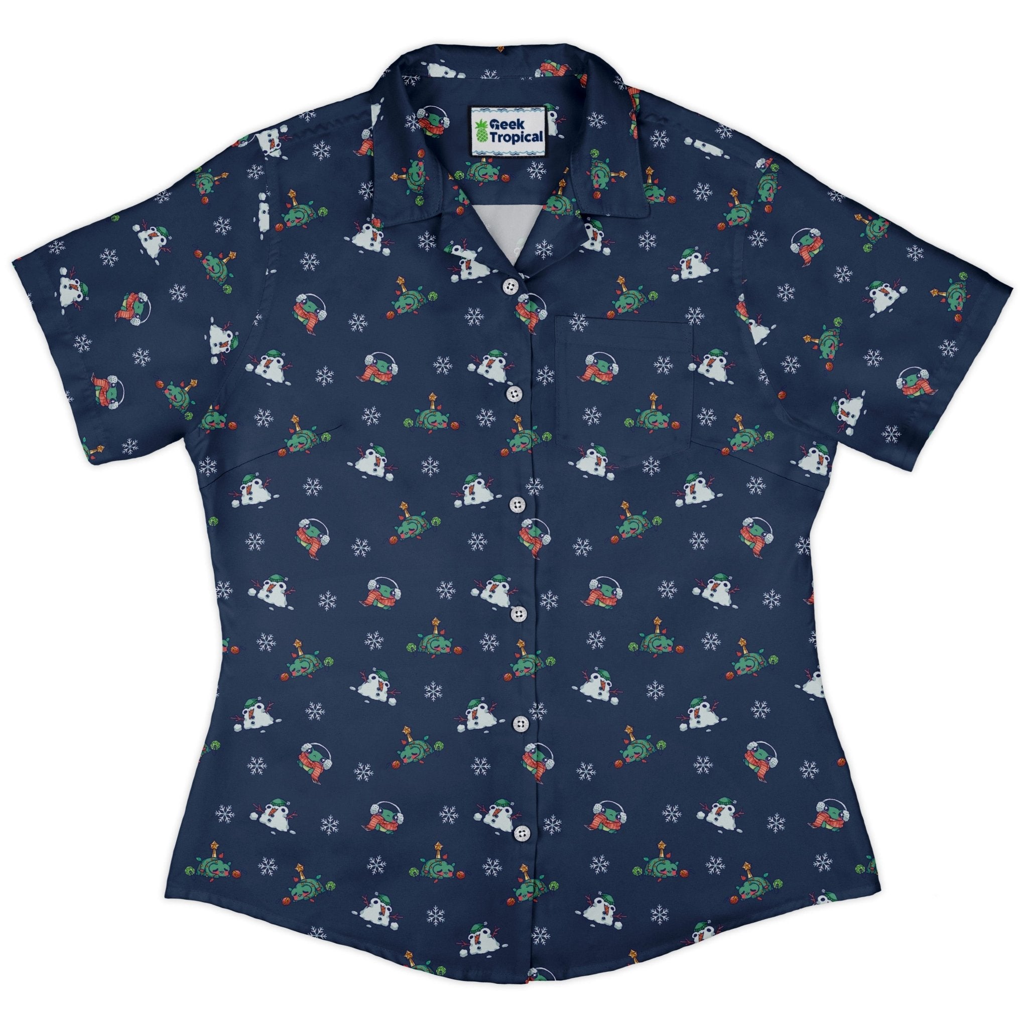 Snowing Frogs Chilly Night Curvy Button Up Shirt