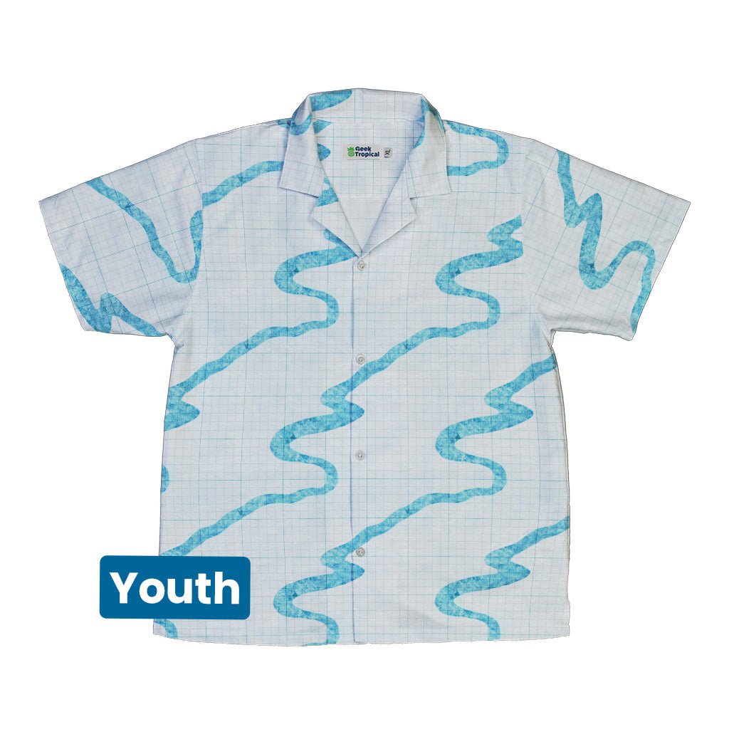 - The Youth Hawaiian Shirt features a flat, open notch neckline, also known as a camp or Cuban collar, offering a classic and relaxed style.