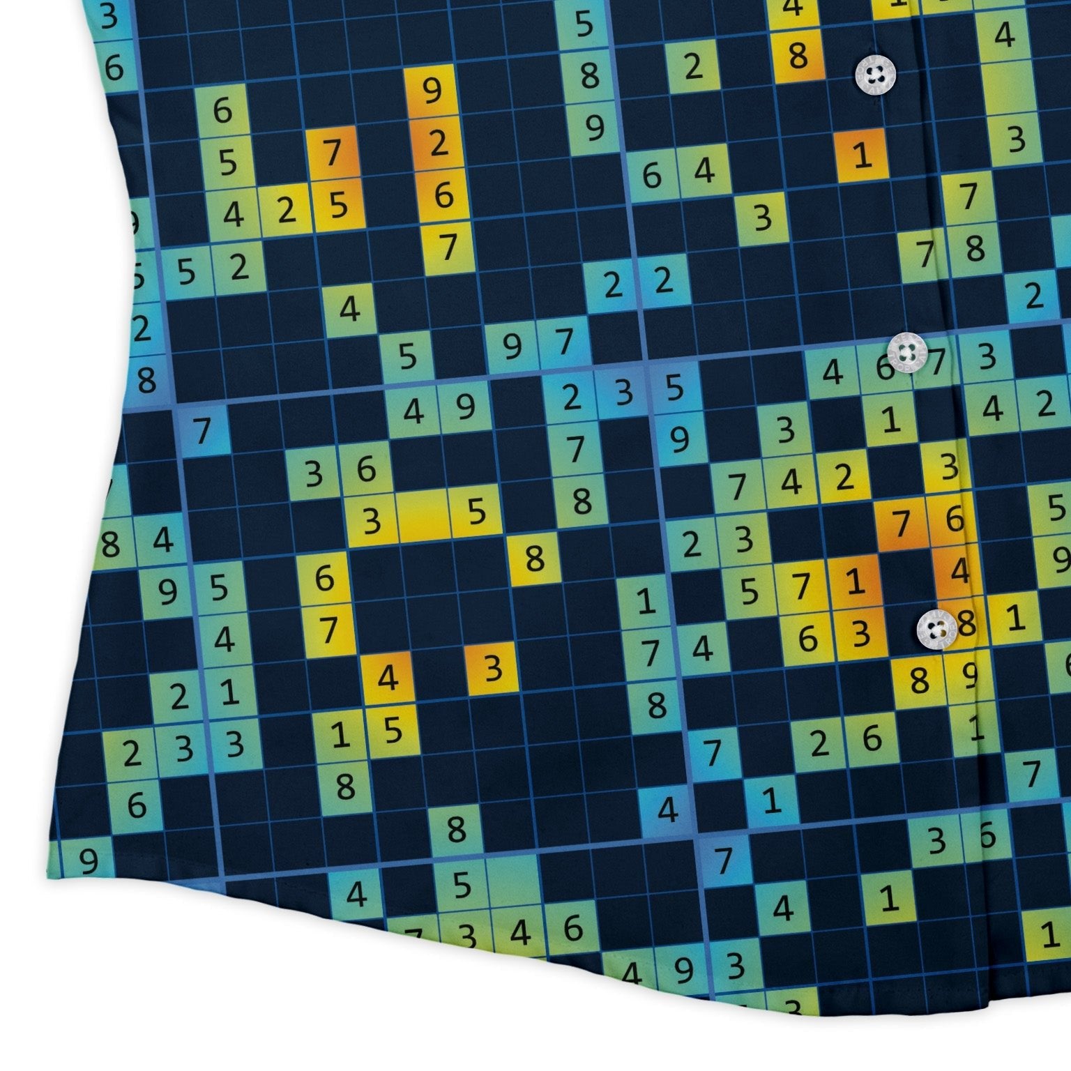 Solve your style equation with our Sudoku Math Puzzle Curvy Button Up Shirt, a playful nod to logic lovers. All-over Sudoku grids and crisp 1–9 numerals align across the placket and pocket for a clean, uninterrupted look. Tailored for curves with a gentle waist and a rounded hem that flatters untucked. Adjustable sleeves shift from neat to relaxed. Soft comfort, eco-conscious inks, and branded buttons. Artist-backed and unabashedly nerdy.
