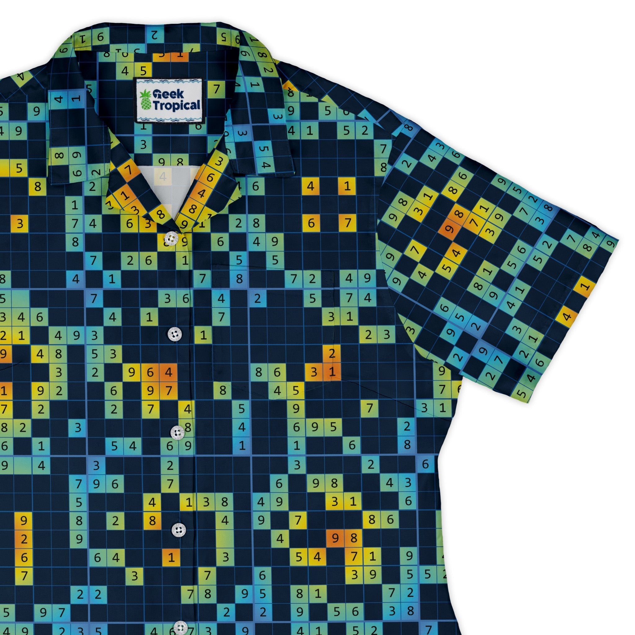 Sudoku Math Puzzle Curvy Button Up Shirt