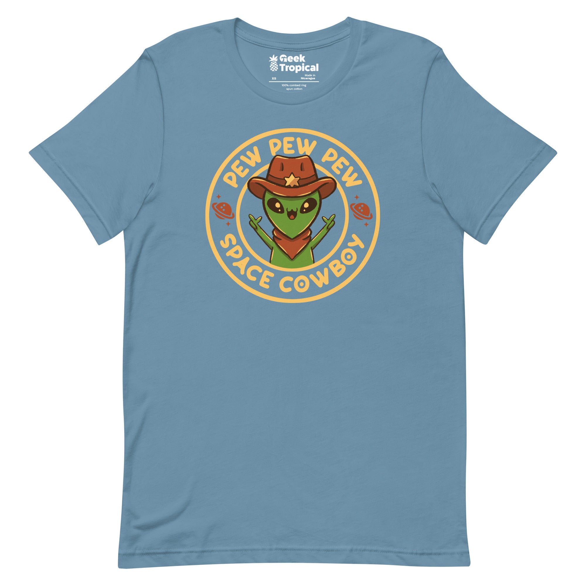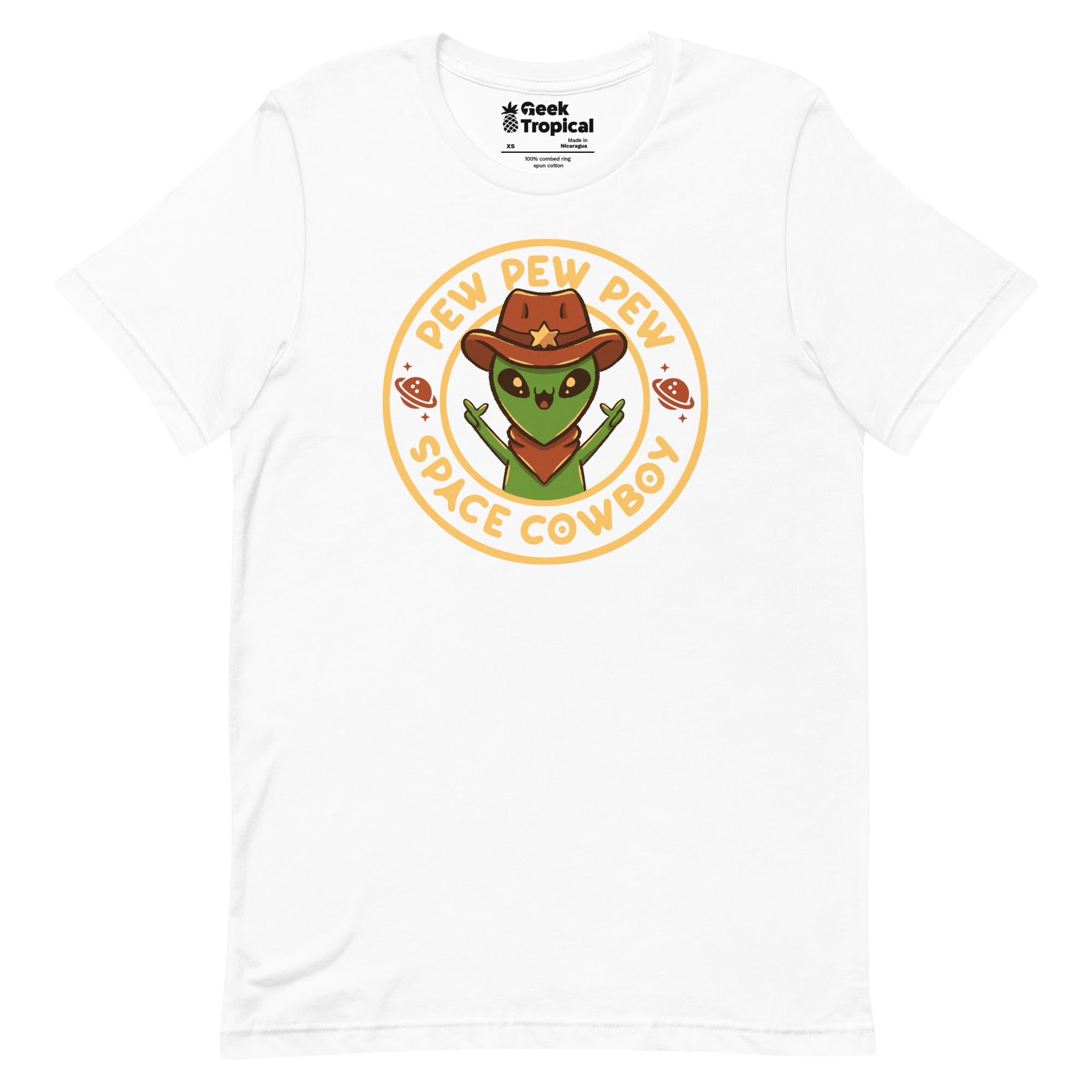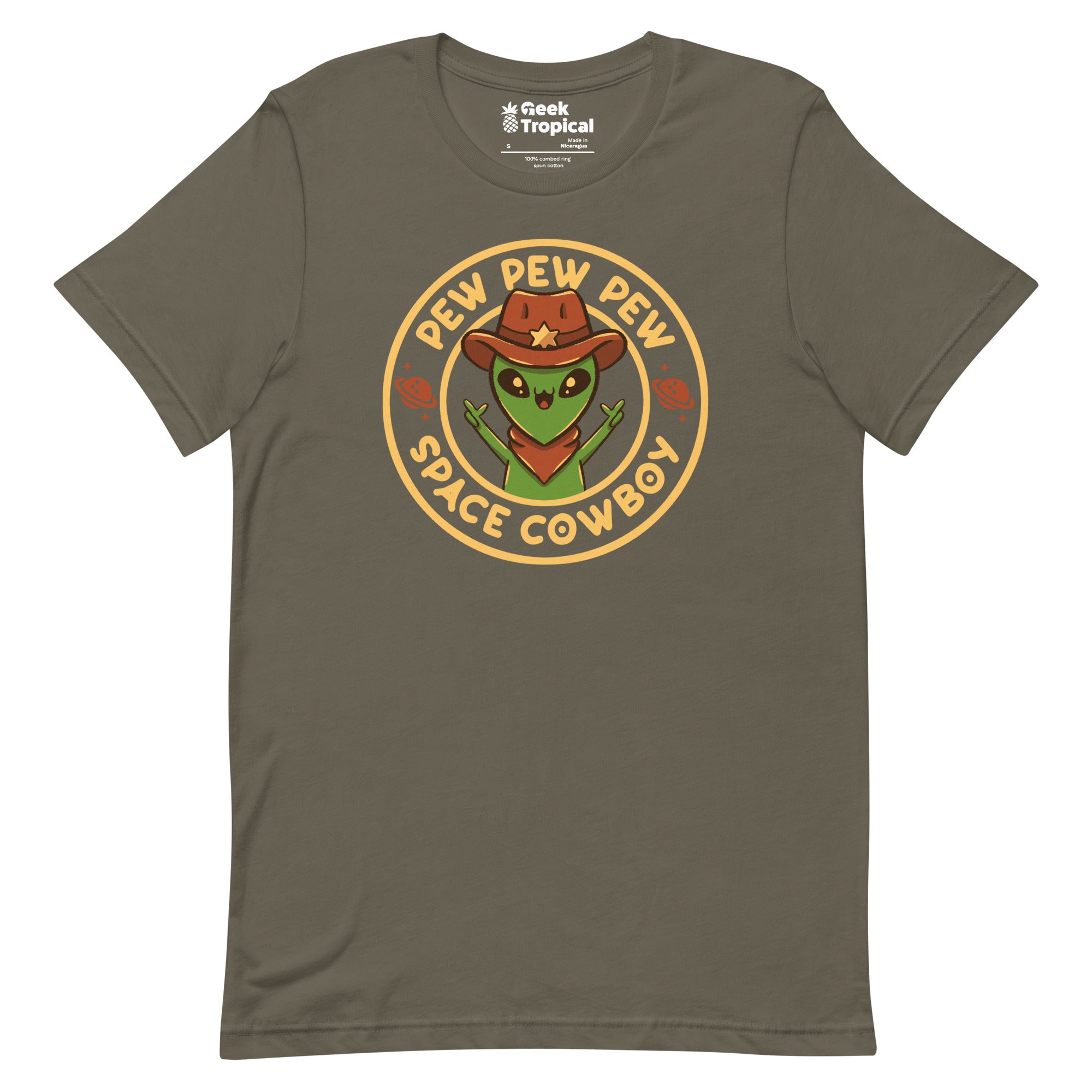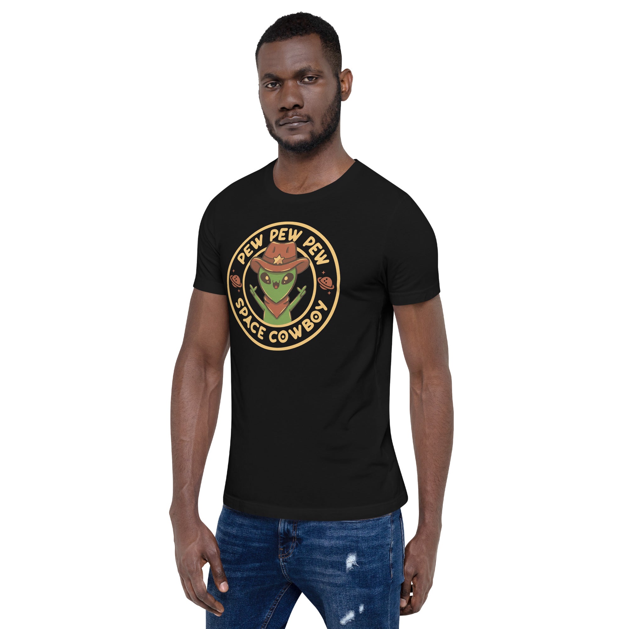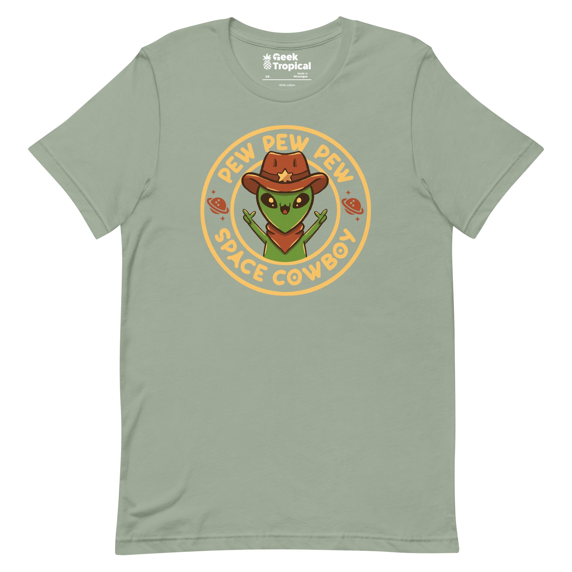 Saddle up for interstellar mischief with the Space Cowboy Funny Alien T-Shirt. Designed by Tobe Fonseca, the graphic showcases a cowboy-hatted alien tipping their brim beneath a scatter of stars—blending cosmic humor with frontier swagger. Clean lines and bold contrast make it pop. Artist-backed and printed the mindful way, it’s an easy flex for sci‑fi fans and science geeks alike.