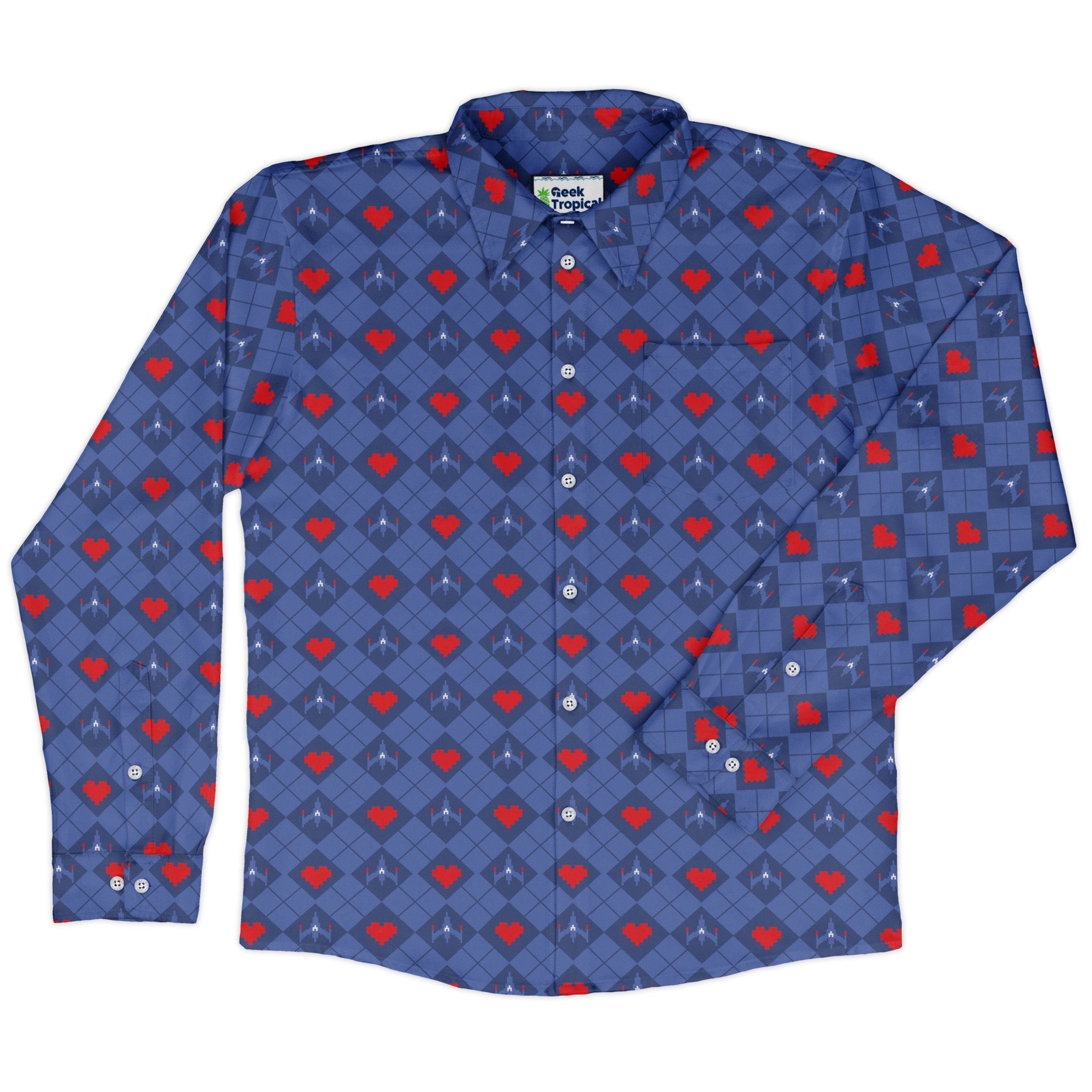 Space Fighter Heart Long Sleeve Button Up Shirt