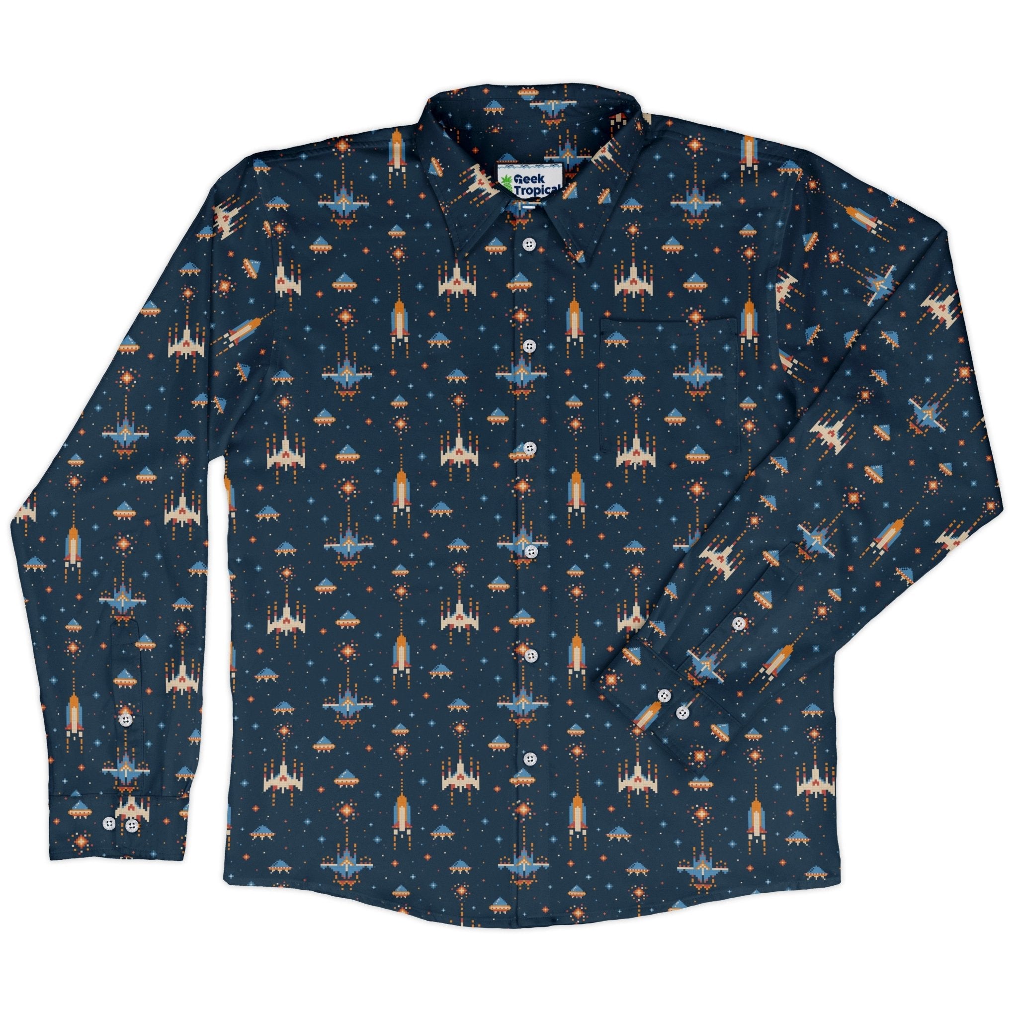 Space Retro Arcade Long Sleeve Button Up Shirt