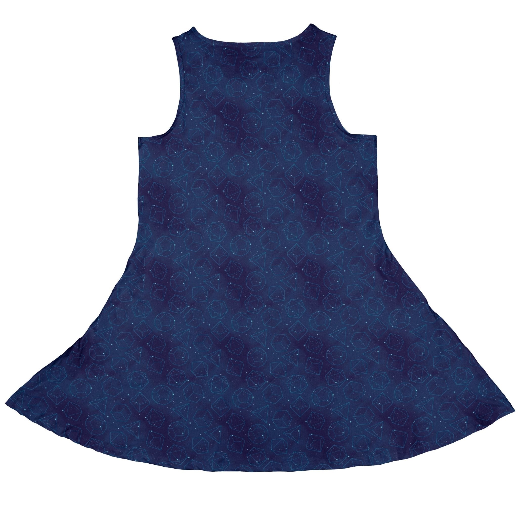 Level up your look with the Space Rpg Dice Blue Dnd Dress, a cosmic swirl of deep-blue nebula tones dotted with floating RPG dice and starry specks. The smooth, breathable stretch keeps you comfy from campaign kickoff to credits, and yes, there are roomy pockets. The fabric has a confident, non-sheer drape for an easy, polished vibe. Artist-backed and adventure-ready, it pairs just as well with sneakers as with your lucky set.