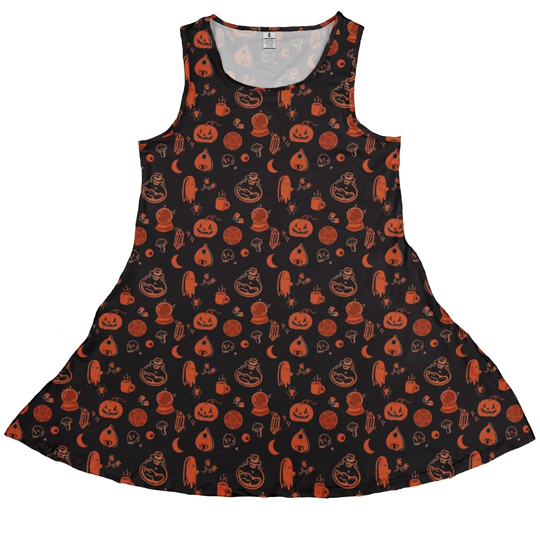 The Spooky Halloween Orange Dress sets your autumn aesthetic to hard mode. Designed by Heather Davenport, this easygoing staple features a bold pumpkin-orange canvas with an all-over spooky motif—ideal for haunted house hops or cozy game nights. Soft with just-right stretch and a substantial feel, it drapes confidently, and the roomy side pockets actually fit your game controller. Artist-backed and effortlessly wearable beyond October.