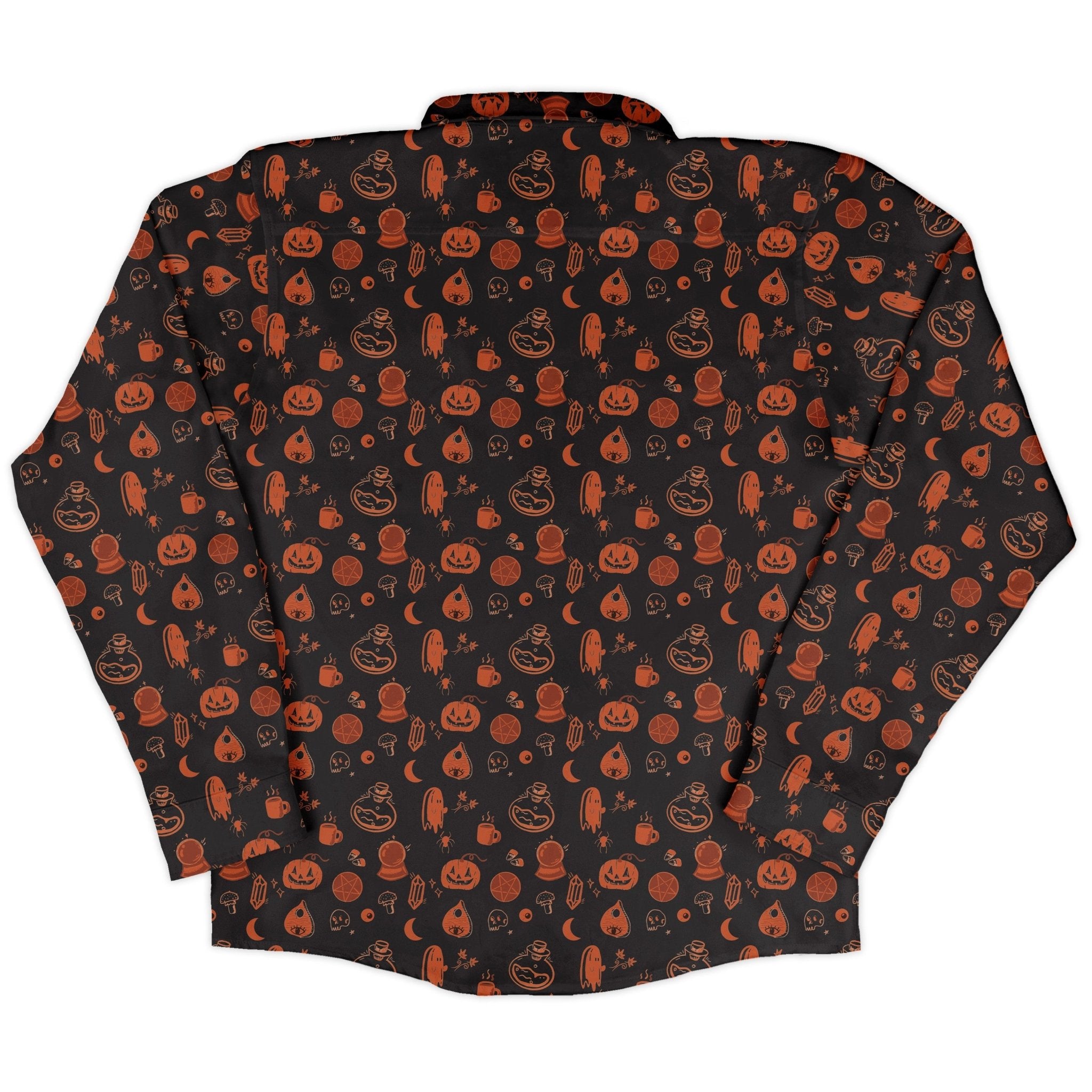Spooky Halloween Orange Long Sleeve Button Up Shirt