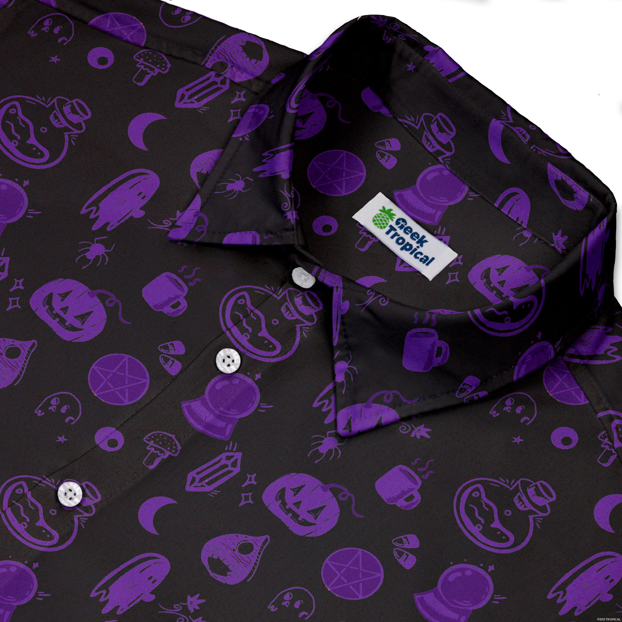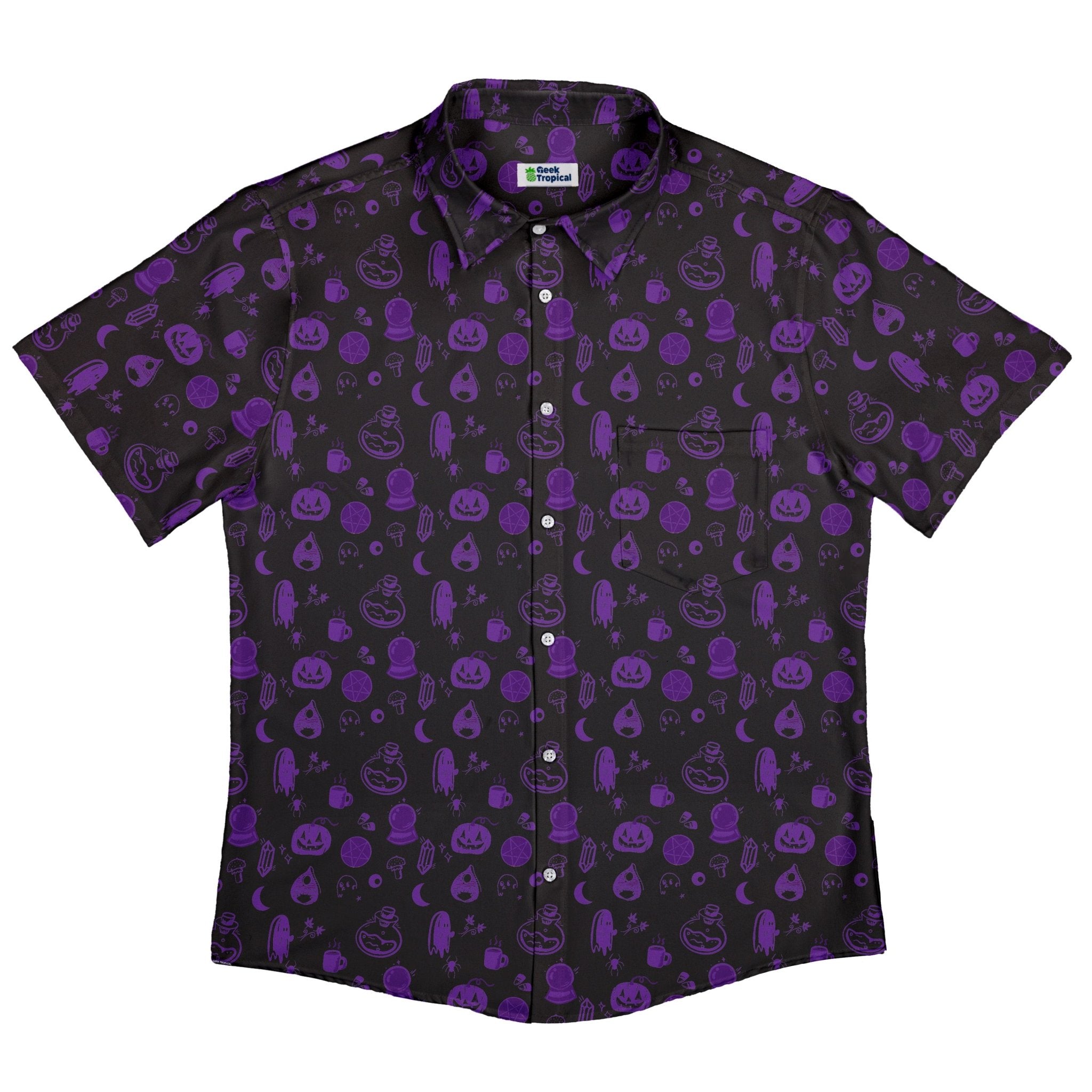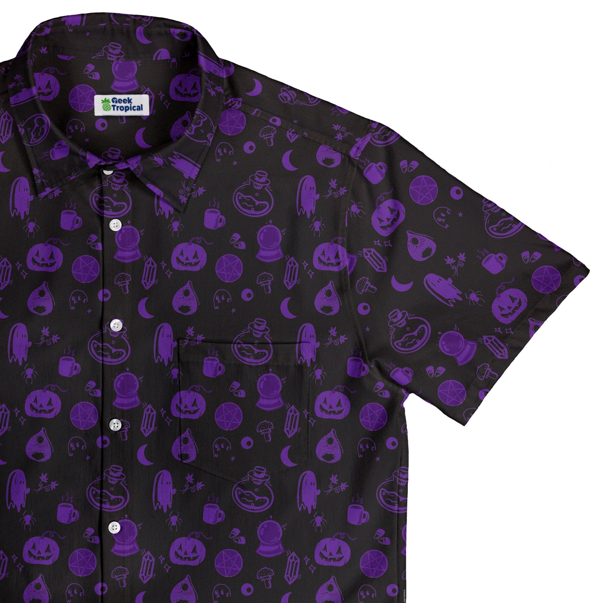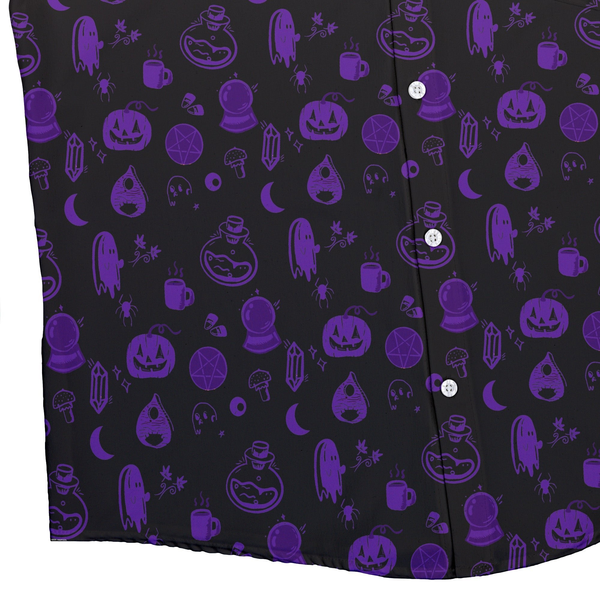Meet the Spooky Halloween Purple Button Up Shirt, your ticket to classy creepshow energy all October and beyond. A rich purple canvas hosts a seamless, all-over spooky pattern, matched cleanly across the placket and pocket for that satisfying, nerd-level precision. Designed by Heather Davenport, this artist-backed piece balances party-ready flair with everyday comfort, printed with eco-conscious care and finished with a sharp, relaxed silhouette.