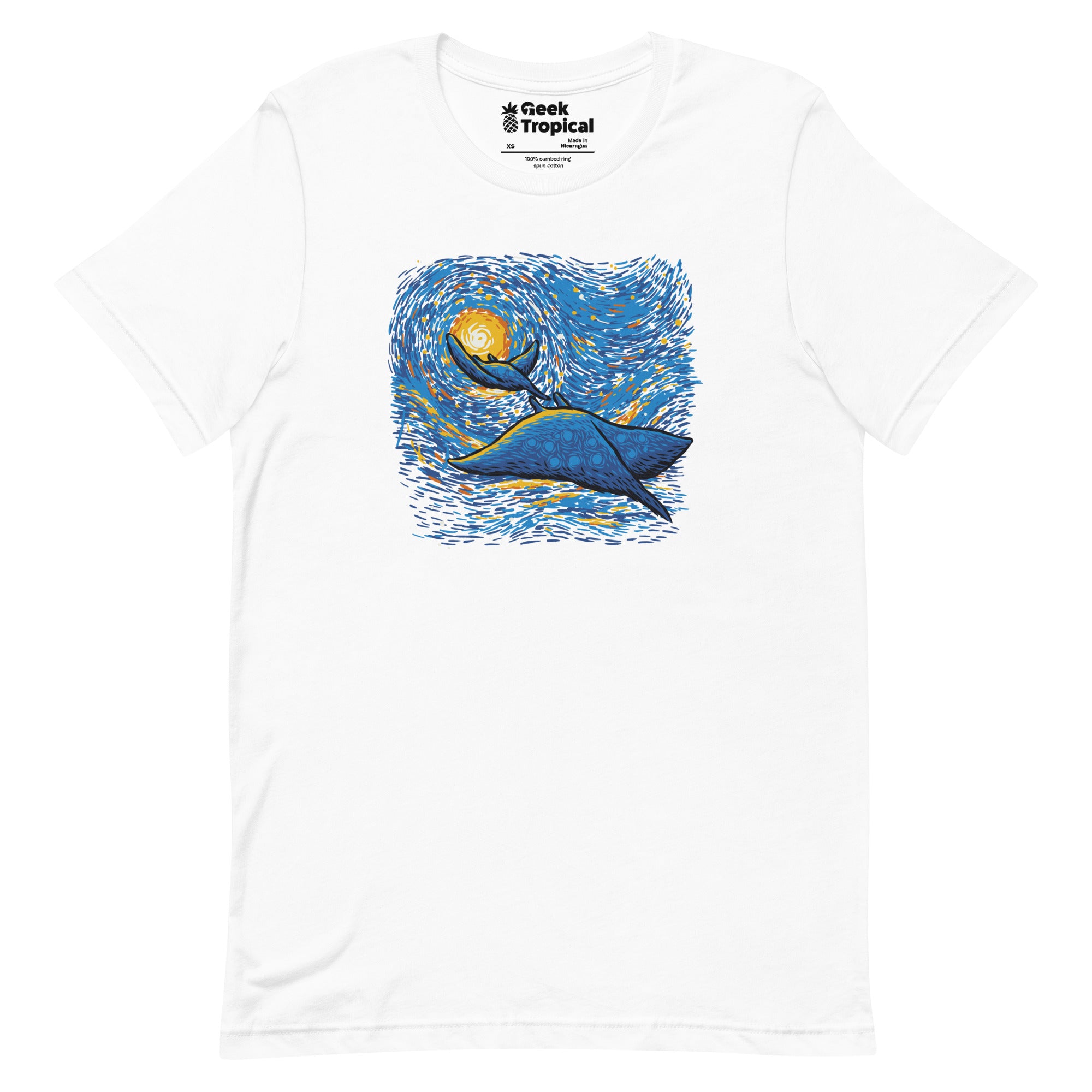 Meet the Starry Sky Sea Manta Ray T-Shirt, where marine wonder goes interstellar. A sweeping manta ray glides across the front, its wings filled with a night-sky scatter of stars, blending ocean grace with space-nerd curiosity. Designed by Tobe Fonseca and printed in vivid, lasting color, it’s an artist-backed favorite for science lovers, stargazers, and marine-bio geeks who like their facts sprinkled with cosmic awe.