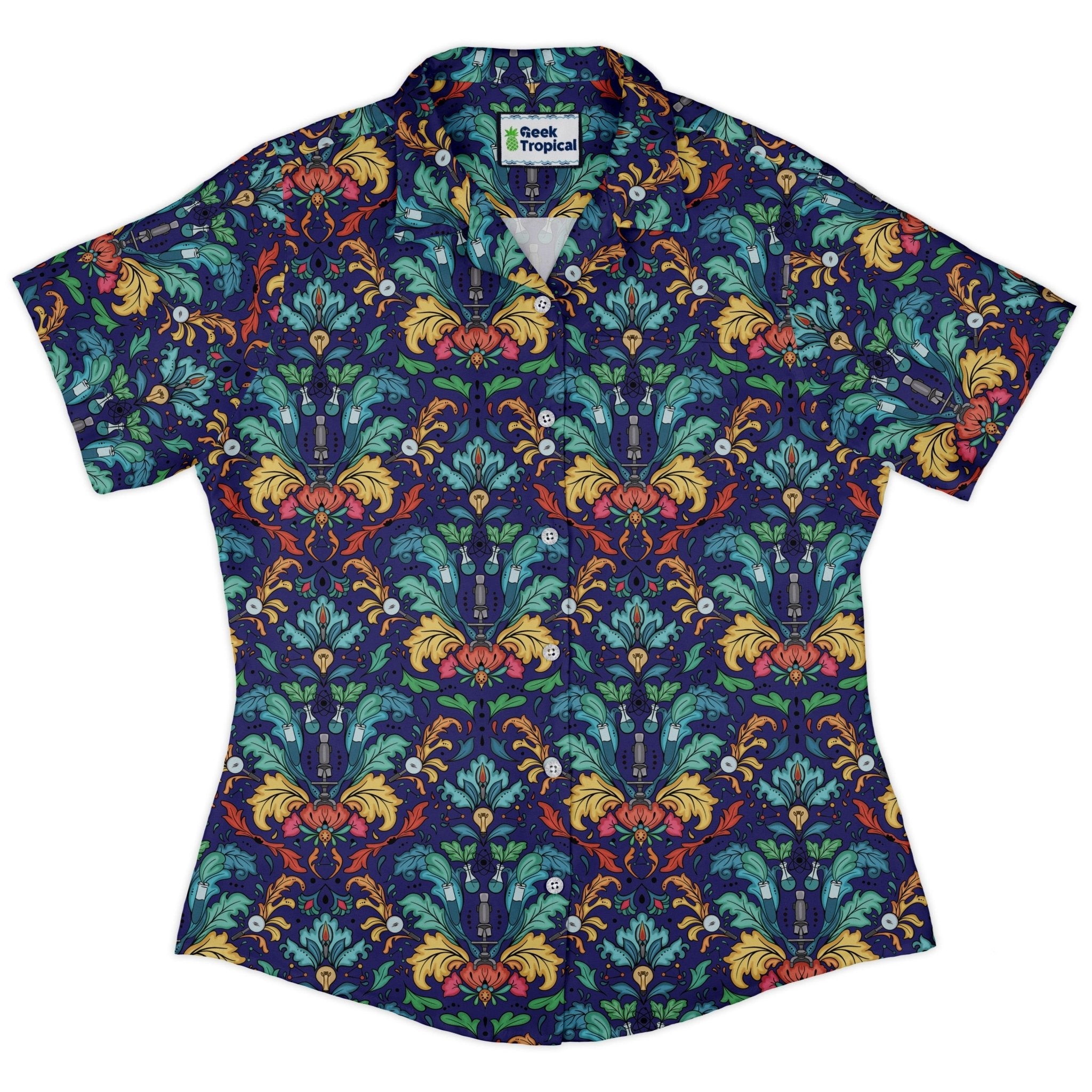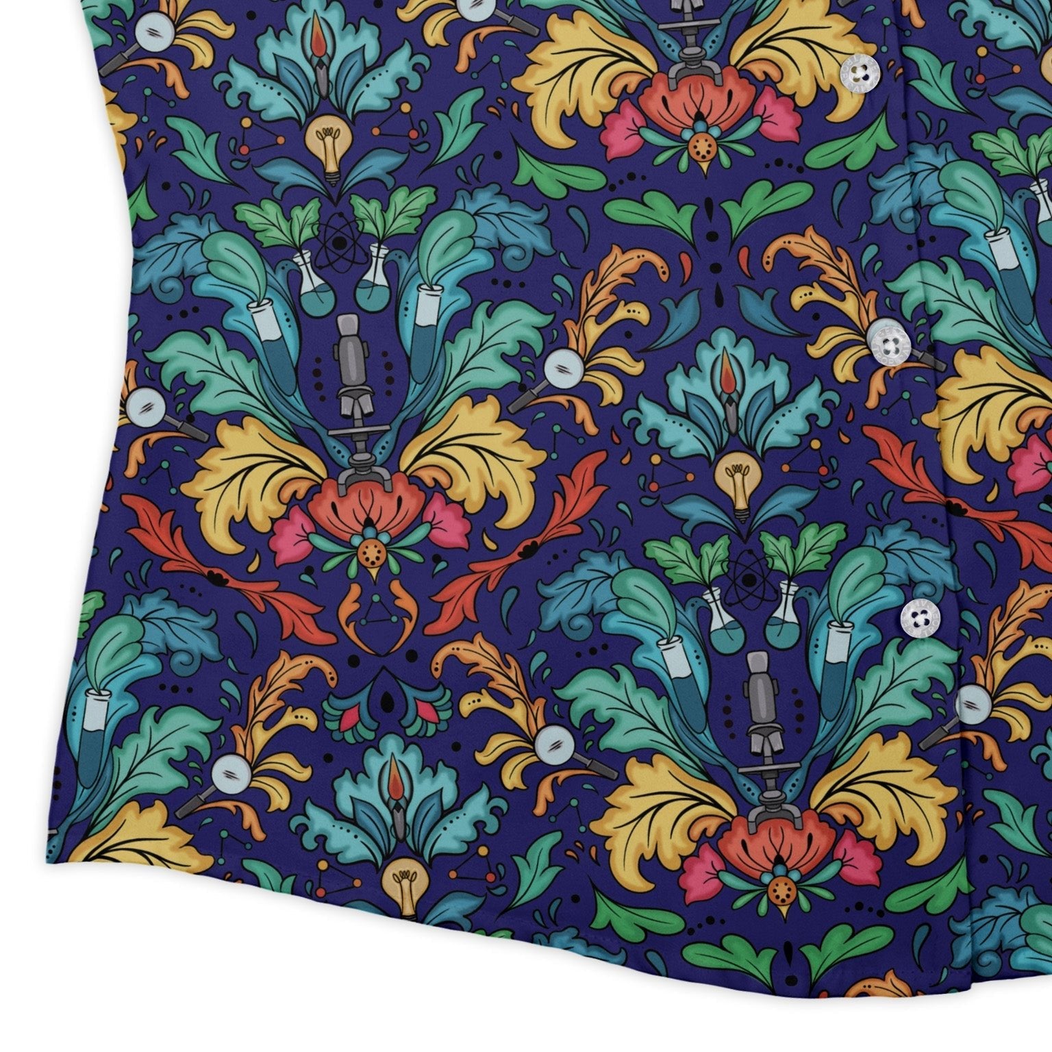 The STEM Hidden Sciences Curvy Button Up Shirt decodes your wardrobe with a sly, STEM-forward print that looks crisp from afar and reveals layered scientific artistry up close. Tailored for curves with an easy, untucked-ready polish, it’s equal parts clever and comfortable. Designed by Brigid Ashwood, the pattern aligns across the front and pocket, printed with eco-conscious inks and finished with clean, branded buttons.