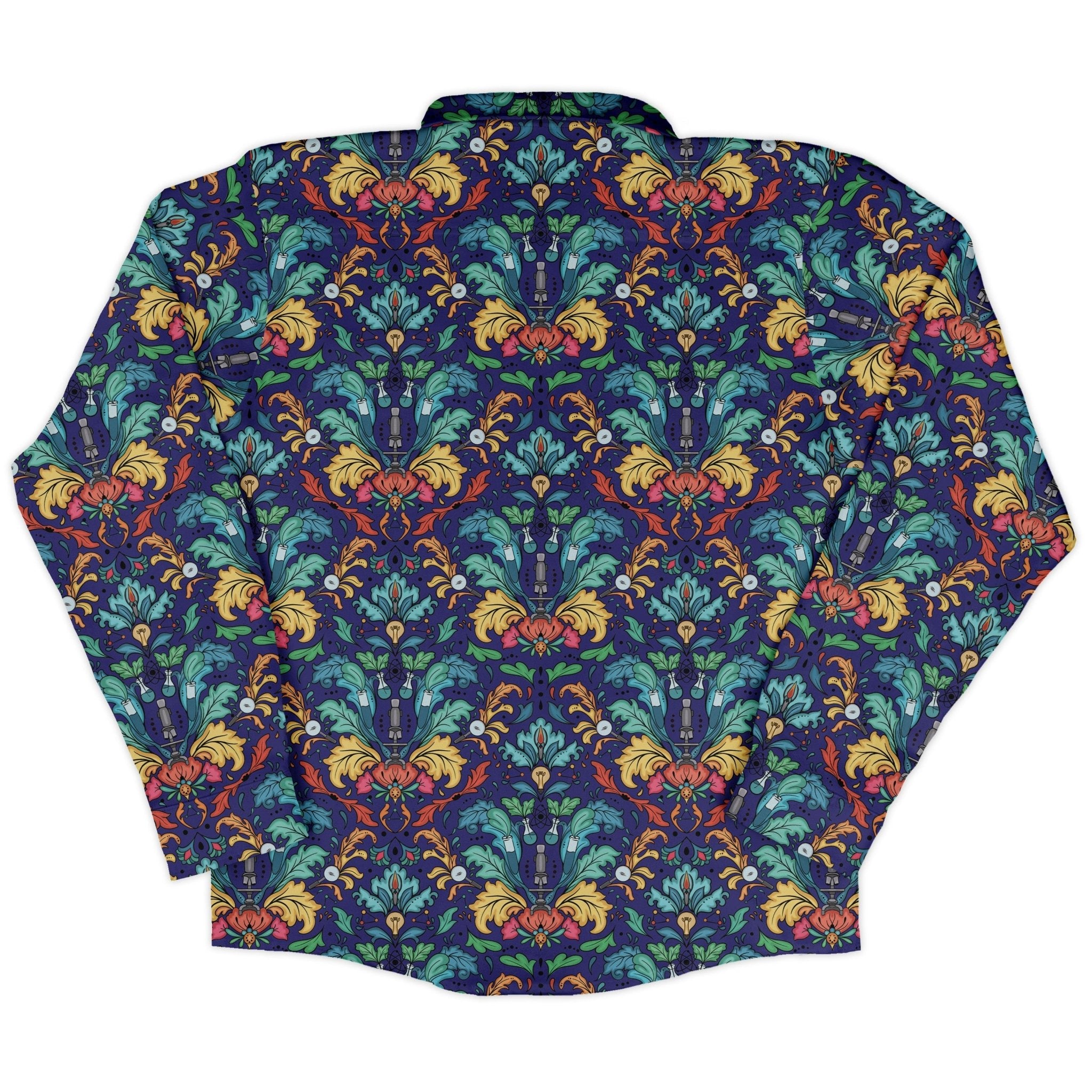 Meet the STEM Hidden Sciences Long Sleeve Button Up Shirt—your stealthy lab-to-lounge upgrade. Designed by Brigid Ashwood, this sleek button-up hides nerdy delights in an all-over science print: look closely and the geometric pattern reveals clever STEM easter eggs. Clean pattern alignment across the front and pocket keeps it sharp, while easygoing comfort handles workdays, conferences, and con nights with artist-backed, eco-conscious cred.