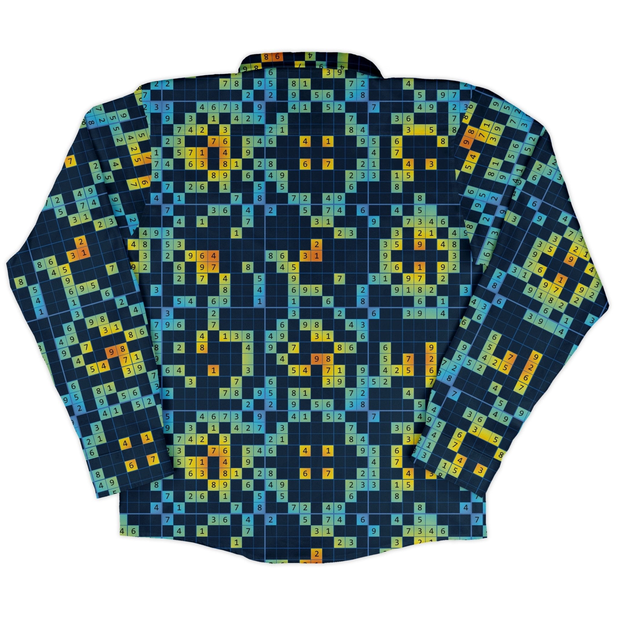 The Sudoku Math Puzzle Long Sleeve Button Up Shirt turns brainteaser energy into everyday style. An allover collage of Sudoku grids and crisp numerals wraps cleanly across the placket and pocket for a satisfying, solved look. Soft, breathable fabric keeps you comfy from workday to game night, while smart cuffs and a modern silhouette level up your rotation. Printed with eco-conscious inks and artist-backed—wear your math flex.