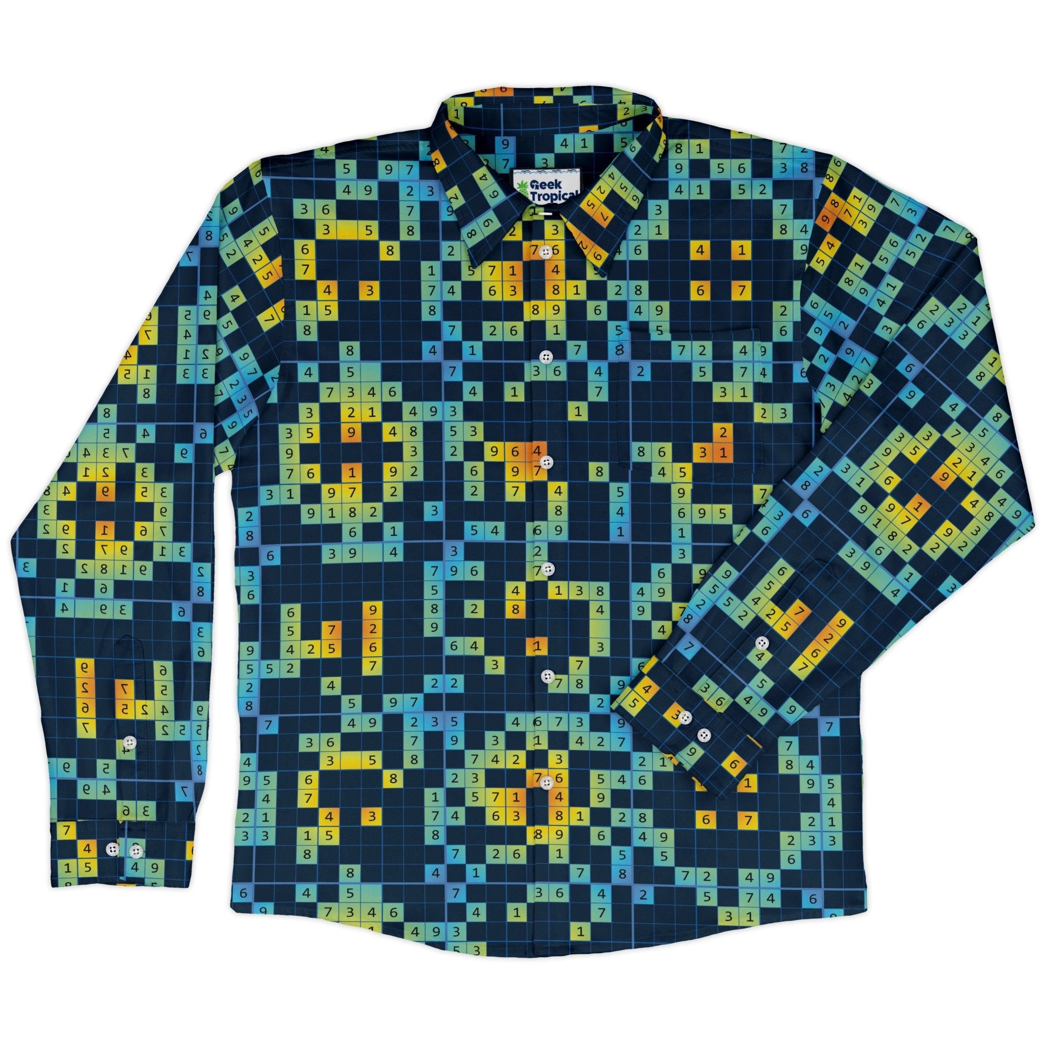 Sudoku Math Puzzle Long Sleeve Button Up Shirt