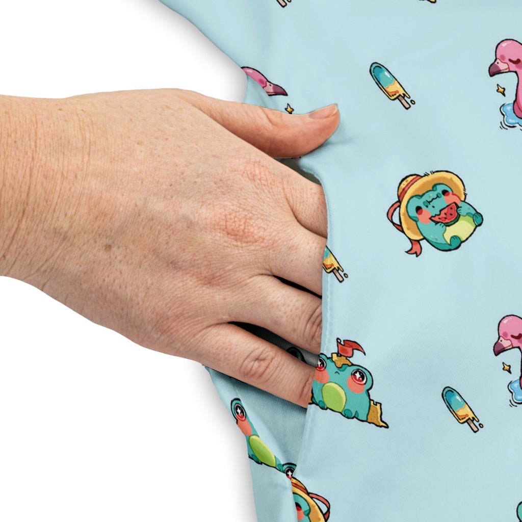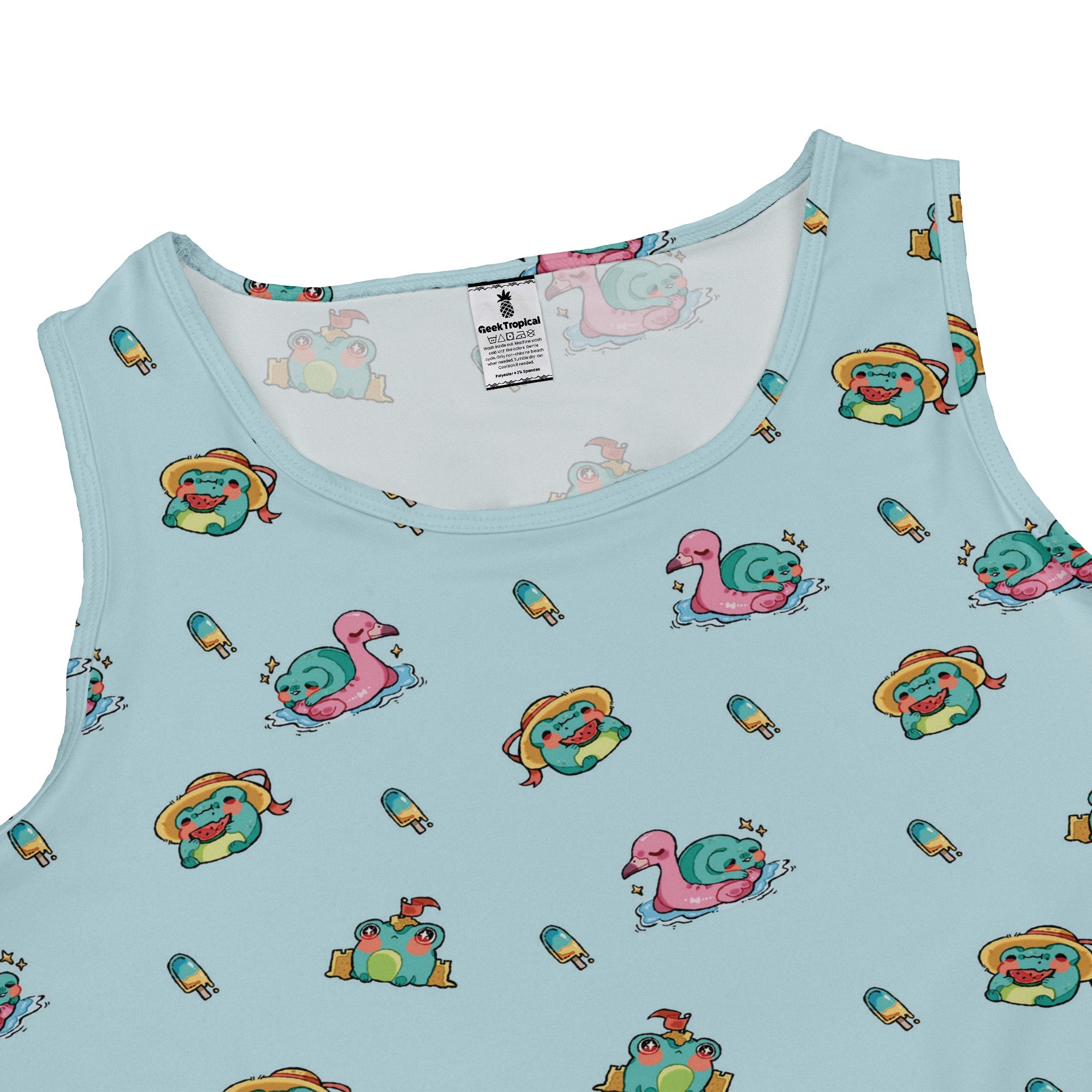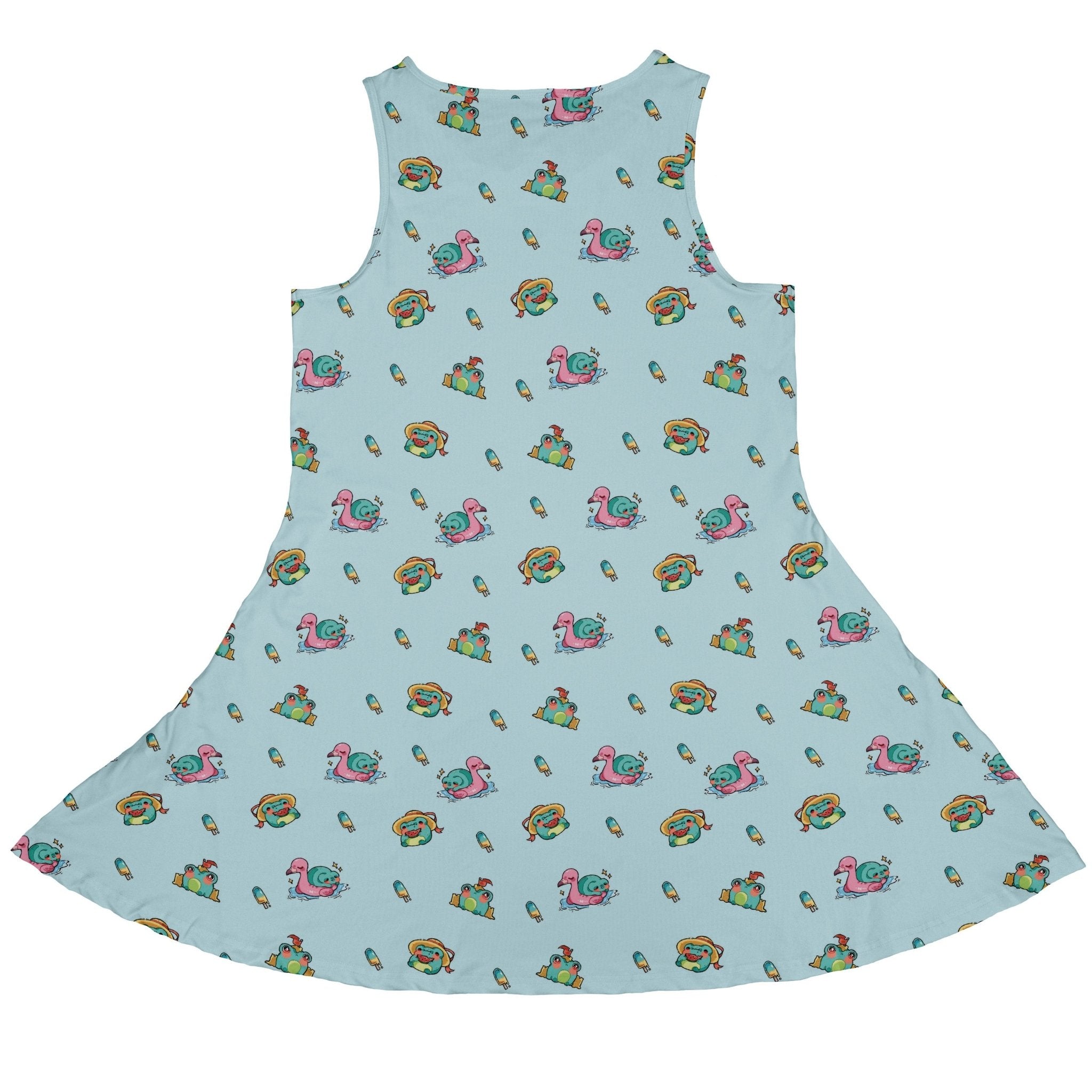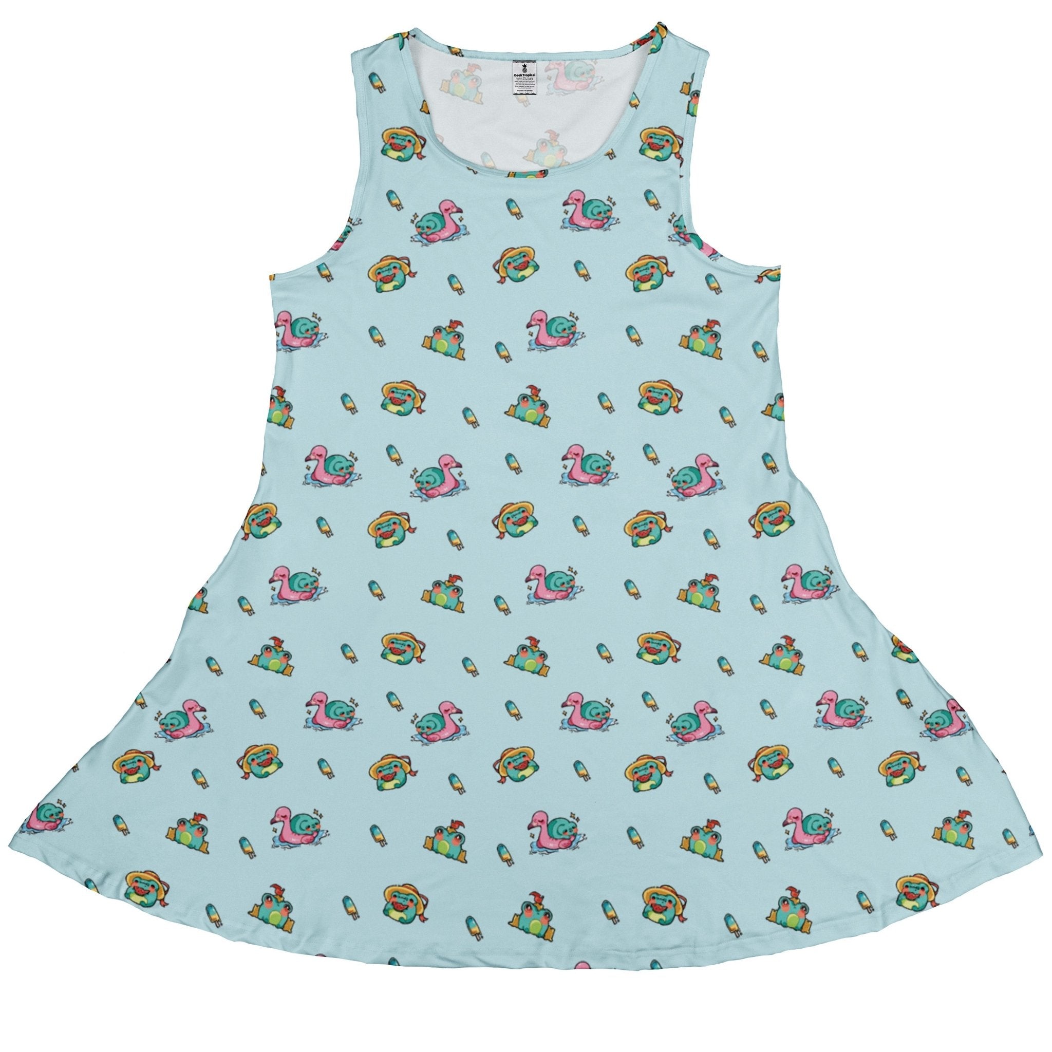 Meet the Summer Frogs Anime Dress, a breezy ode to geeky summer vibes featuring an allover parade of expressive, anime-style frogs in playful poses. The print pops without feeling loud, landing that laid-back yet polished sweet spot. Designed by Ardi Tong, it’s an artist-backed statement piece you can style up for nights or down for questing around town.