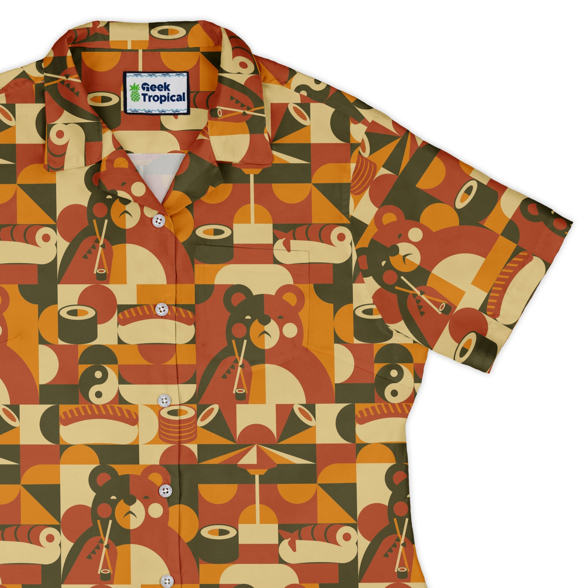 Sushi Eating Bear Anime Curvy Button Up Shirt