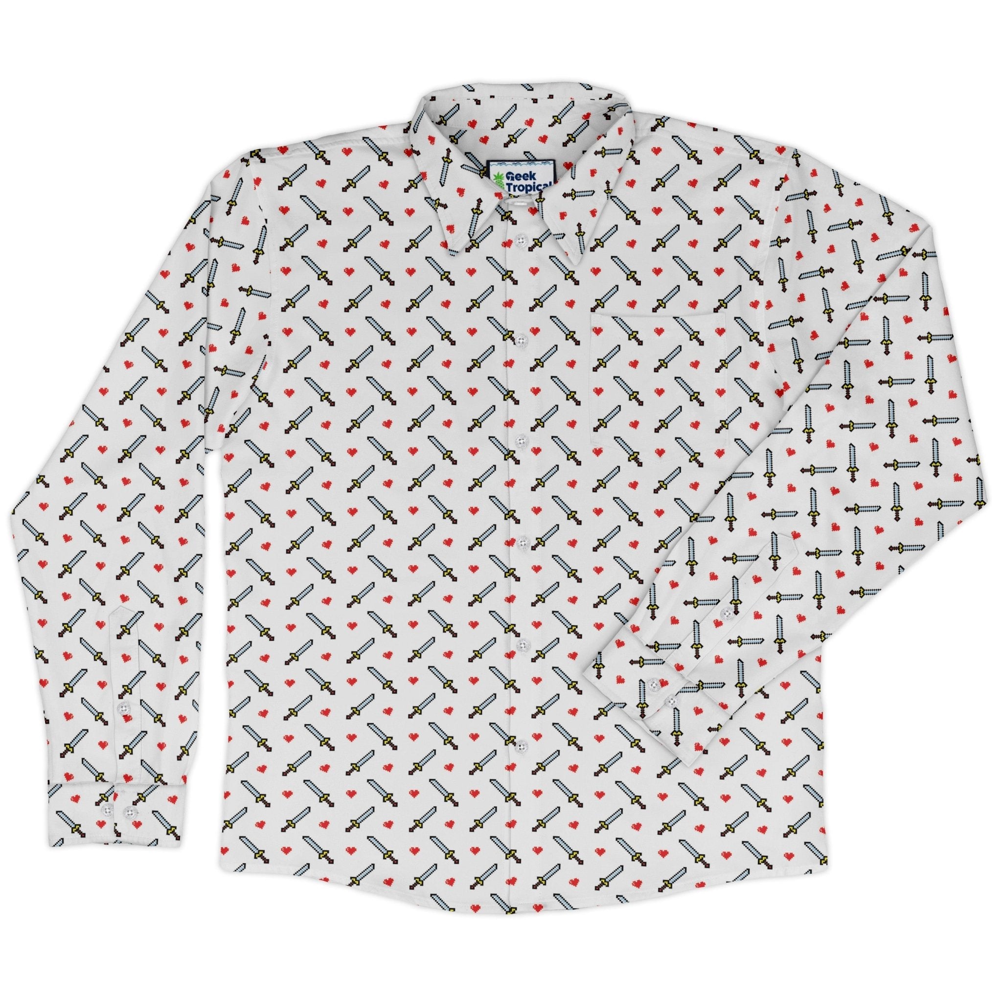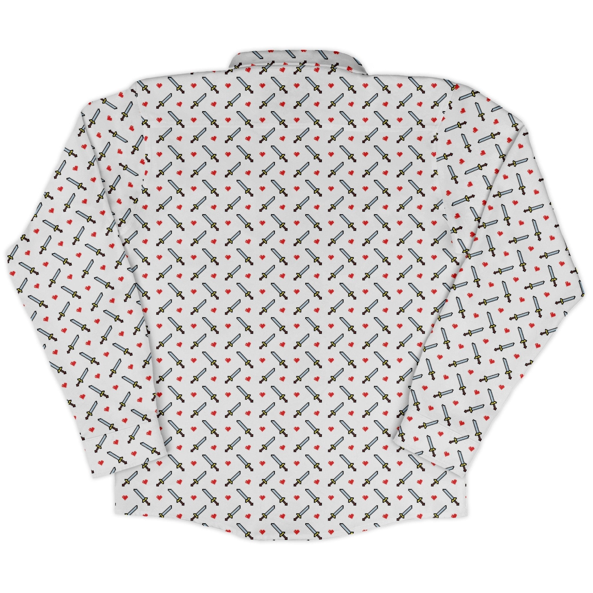 Sword and Hearts Video Game Long Sleeve Button Up Shirt