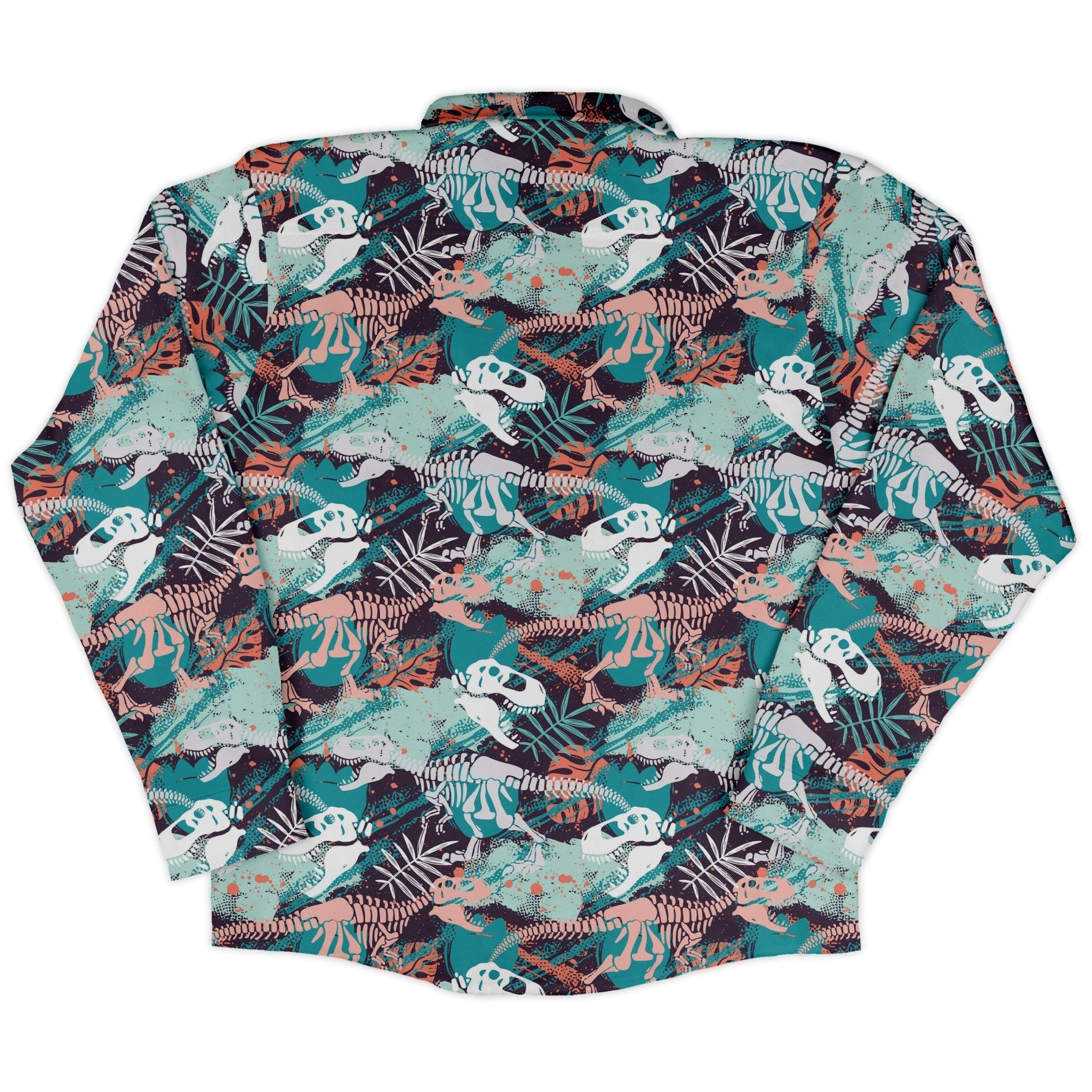 T-Rex Bones Footprints Green Dinosaur Long Sleeve Button Up Shirt