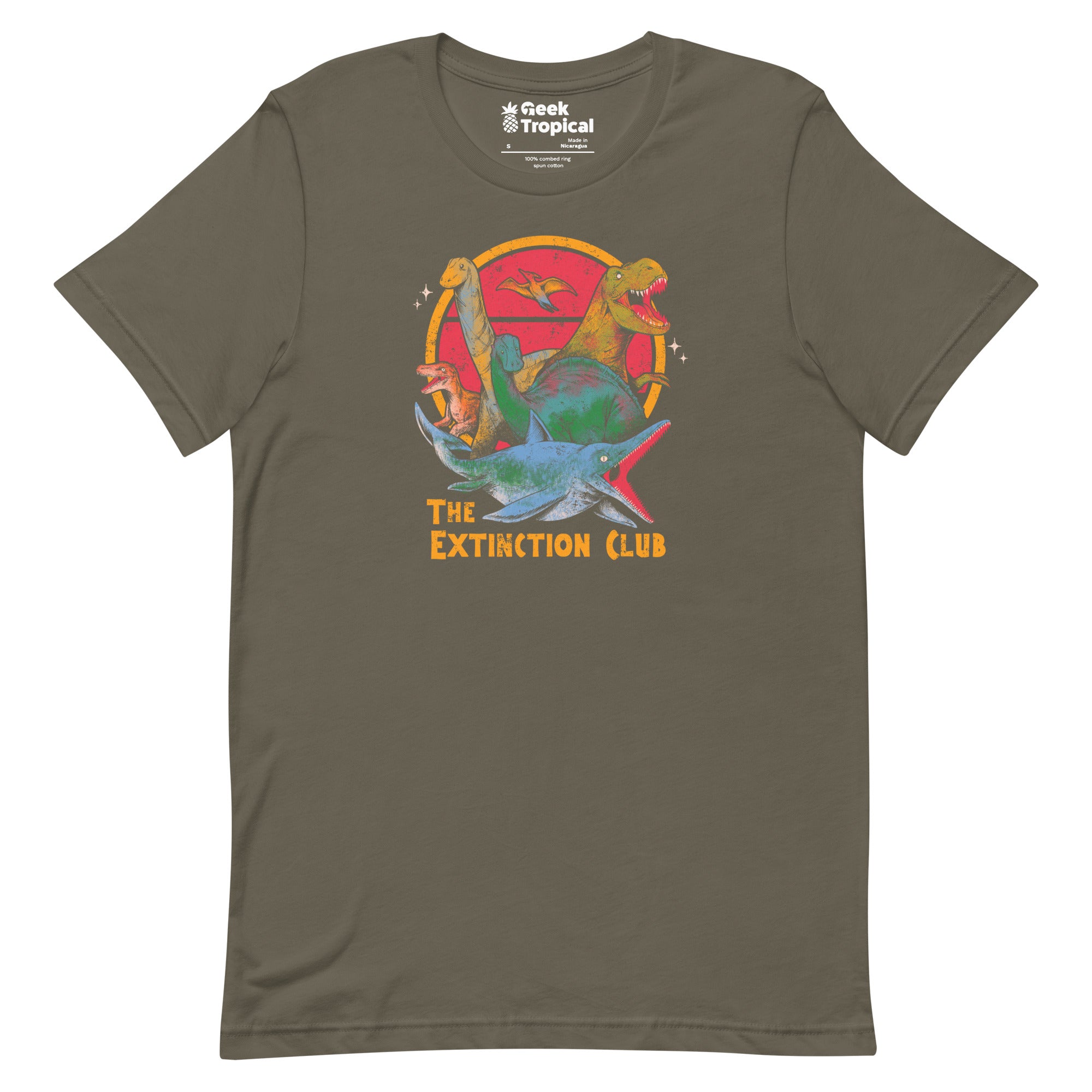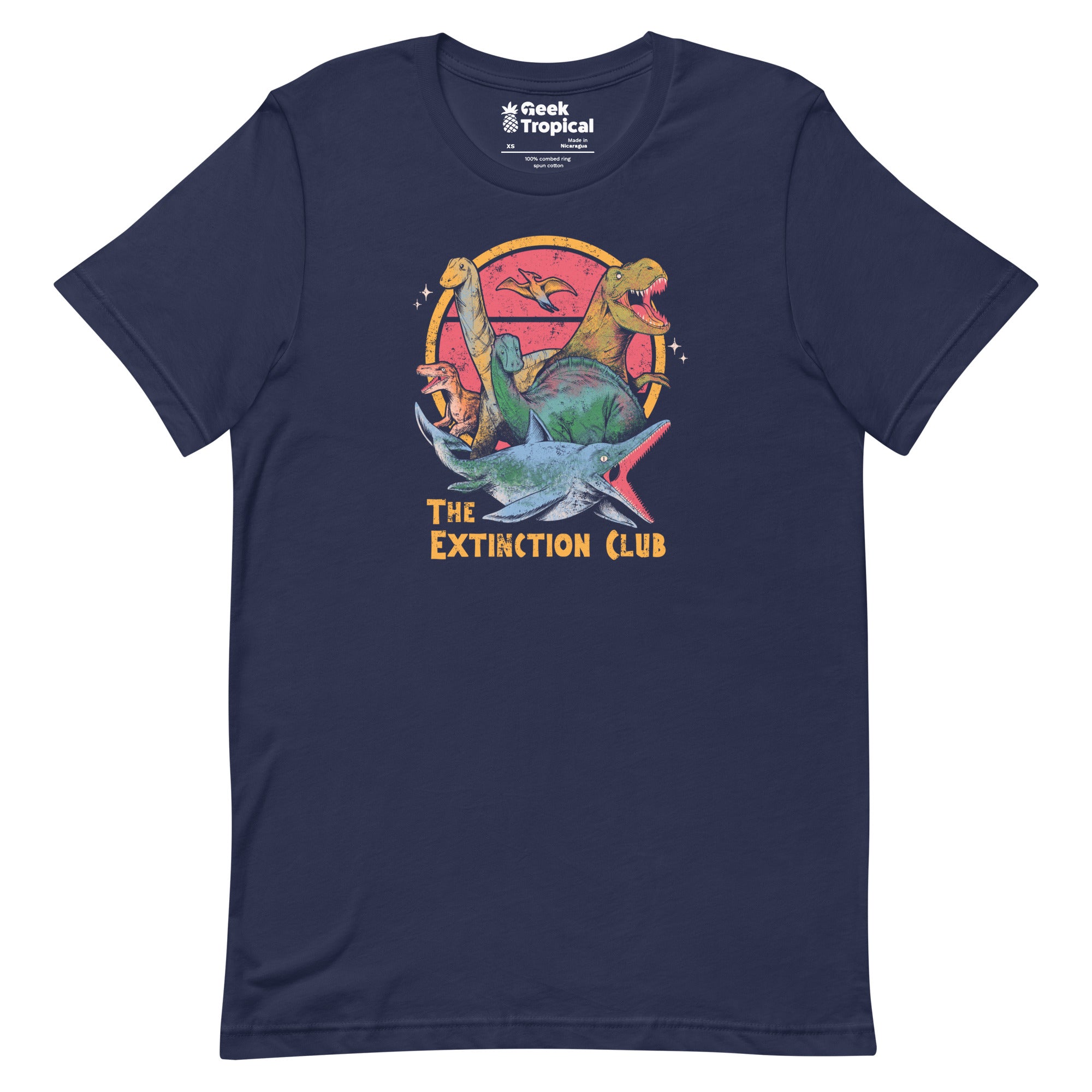 Meet The Extinction Club T-Shirt, a cheeky badge of honor for science nerds and paleo fans. Front and center, bold Extinction Club typography frames a dinosaur motif with a wink to deep time, blending clean graphic lines with lab-notebook attitude. Designed by Tobe Fonseca, this artist-backed piece pairs smart humor with striking detail. Wear it to the museum, a Dnd session, or any day you’re rooting for the fossil record.