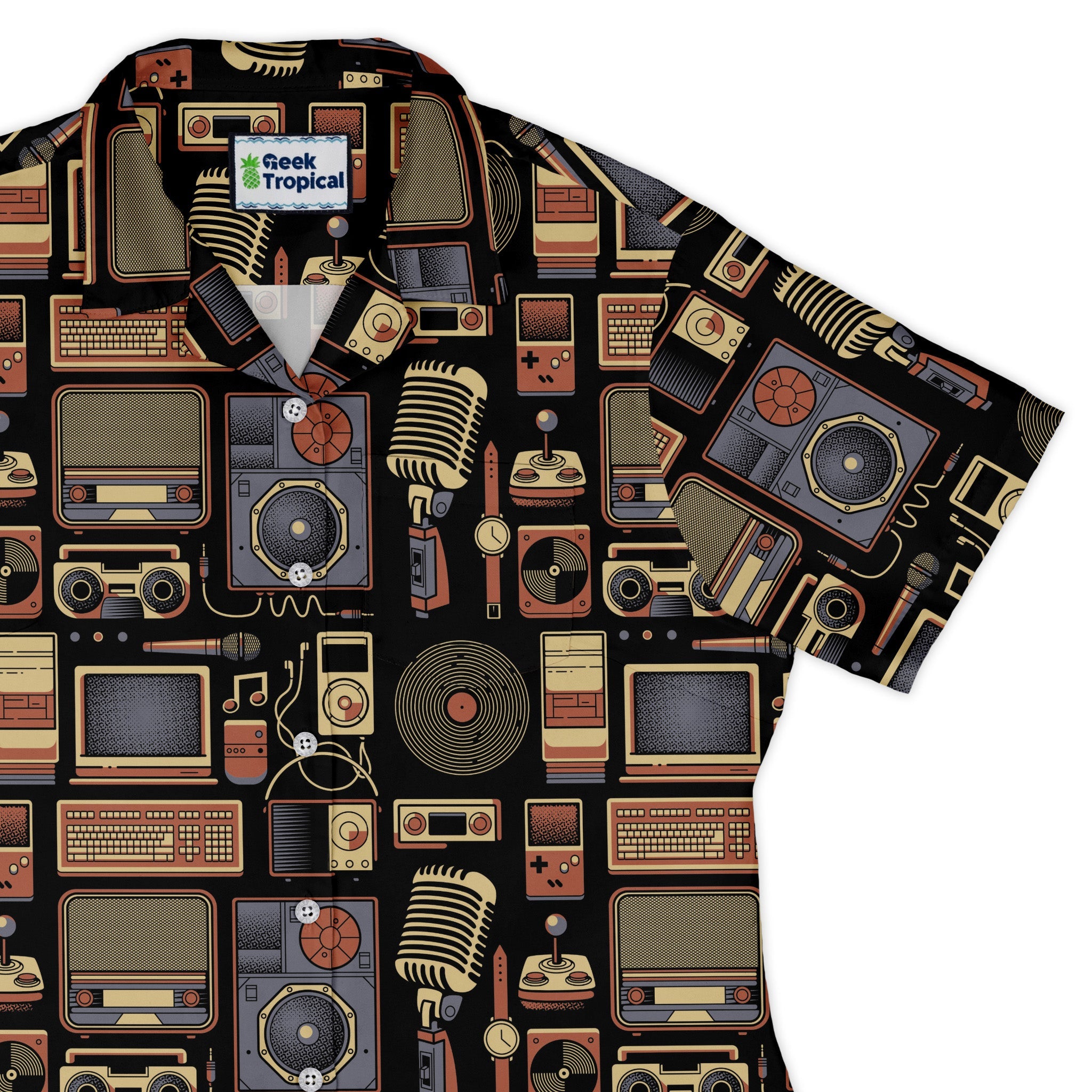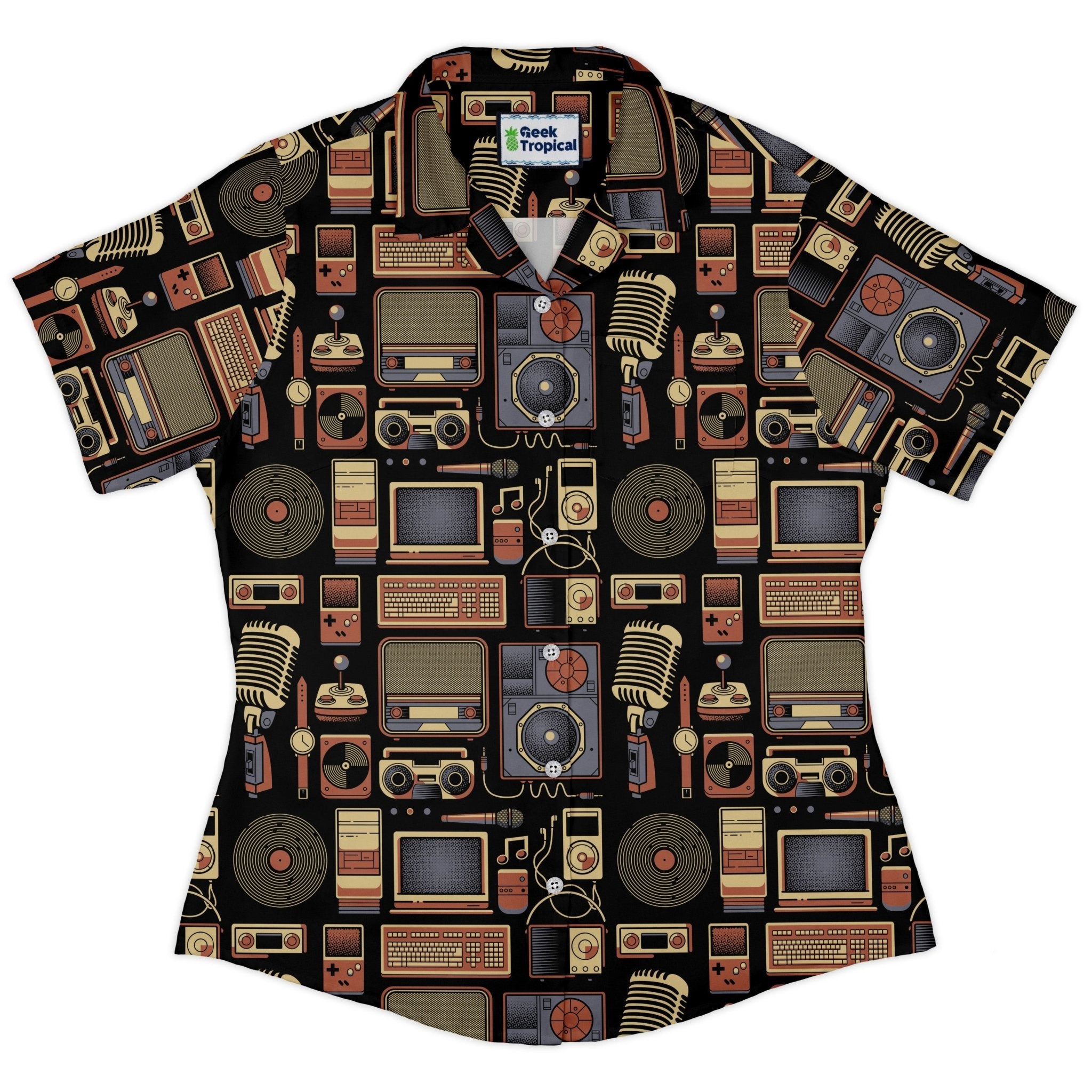 Throwback Tech Curvy Button Up Shirt rewinds style with a retro tech-meets-music pattern designed by Tobe Fonseca. Cut for curves with a sleek, untuck-friendly hem and sleeves you can wear fitted or relaxed, it brings geeky confidence from studio to after-hours. The allover print aligns across the front and pocket for a seamless look, finished with crisp buttons. Printed with eco-conscious inks and artist-backed—because nostalgia should look smart.