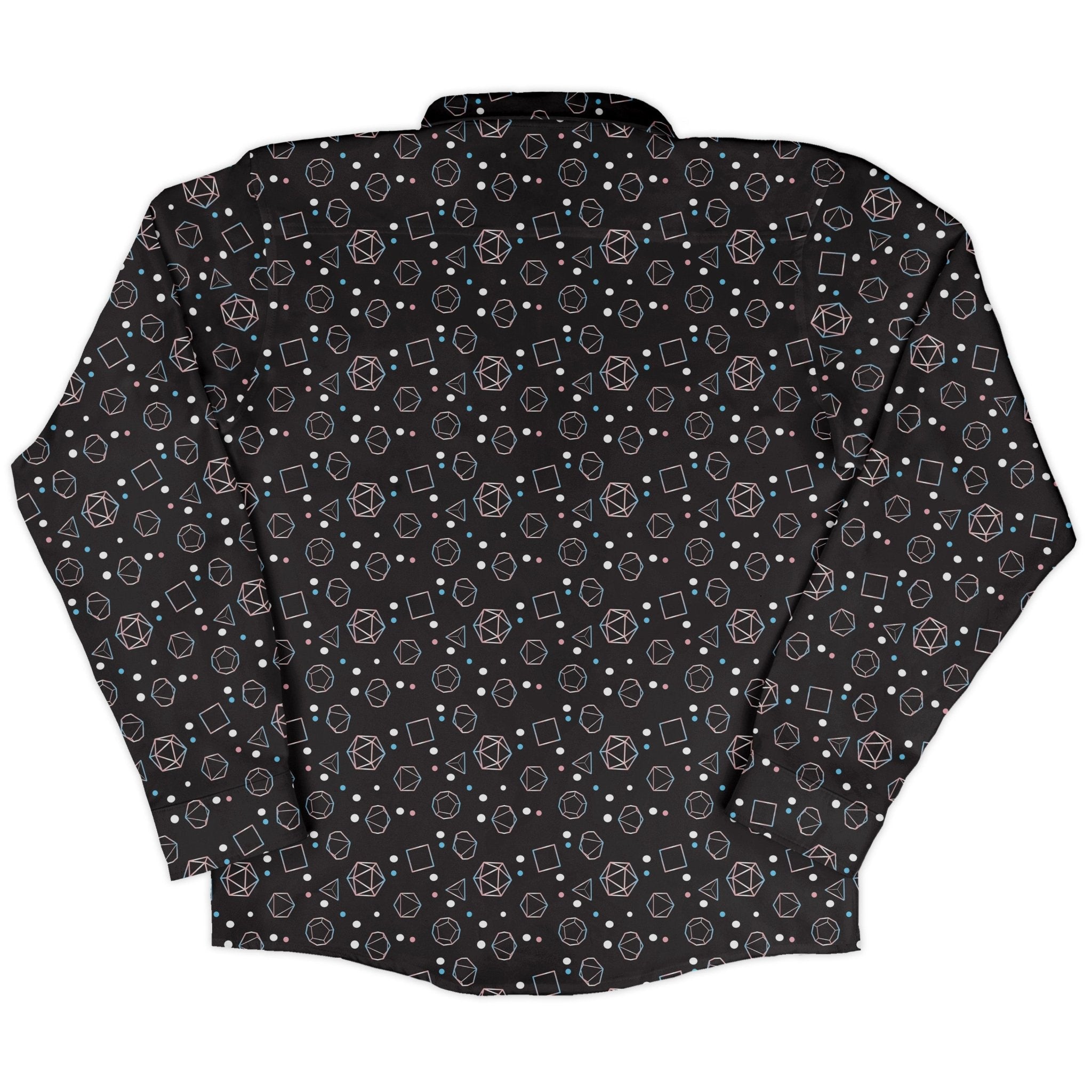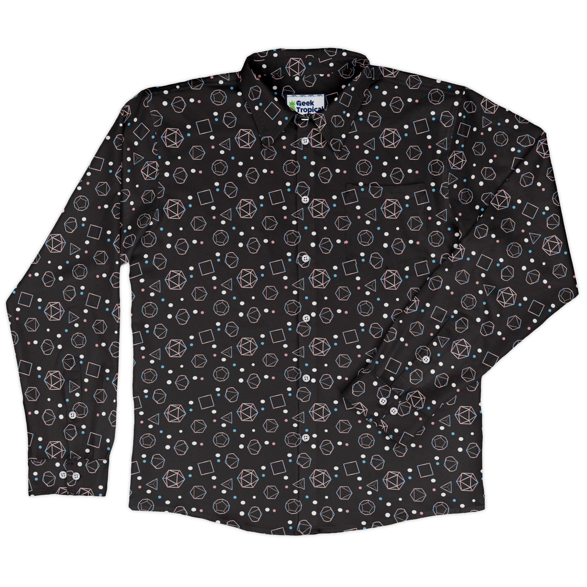 Trans Pride Flag Dnd Dice Long Sleeve Button Up Shirt