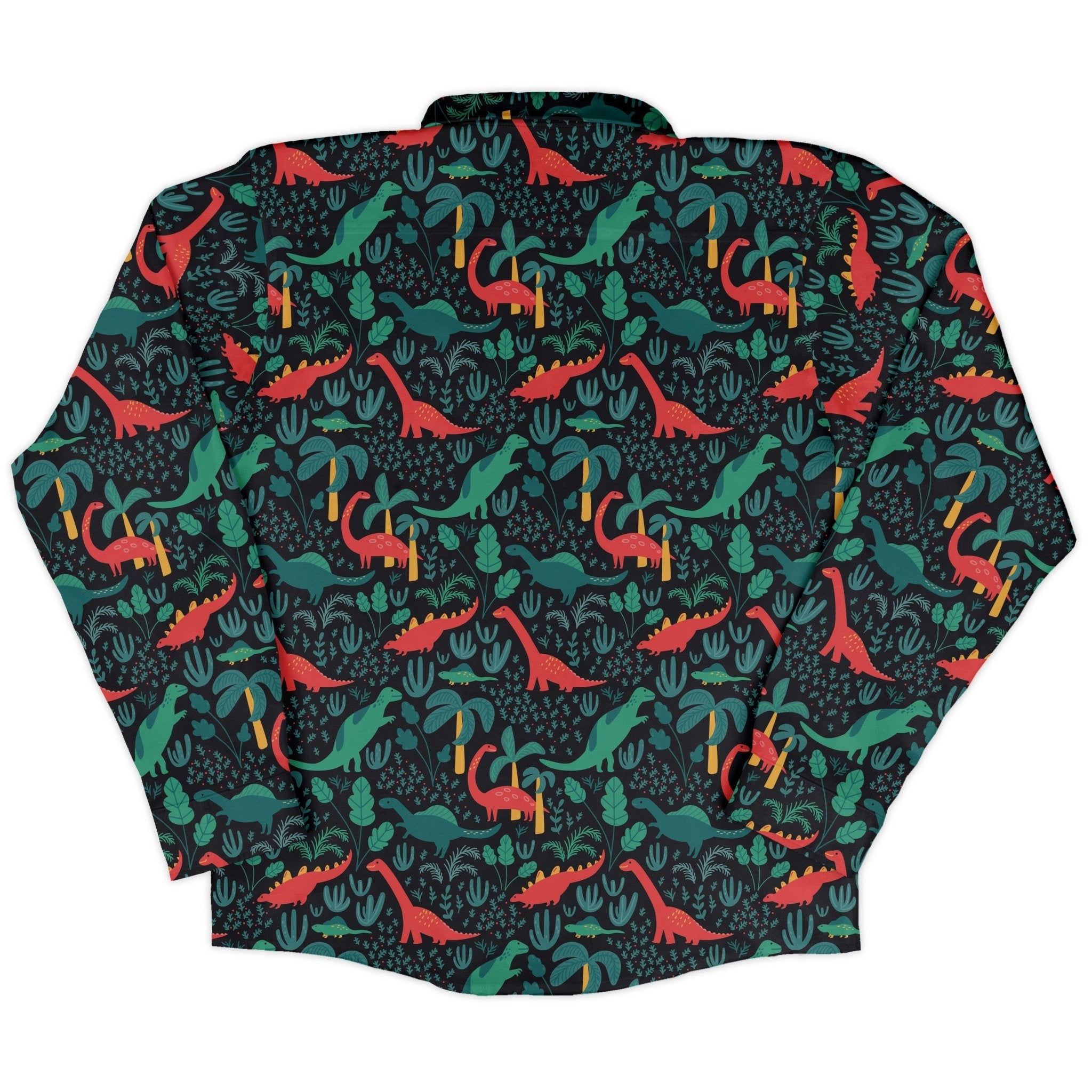 Tropical Dinosaur Green Aloha Long Sleeve Button Up Shirt