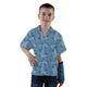 - The Youth Hawaiian Shirt features a flat, open notch neckline, also known as a camp or Cuban collar, offering a classic and relaxed style.