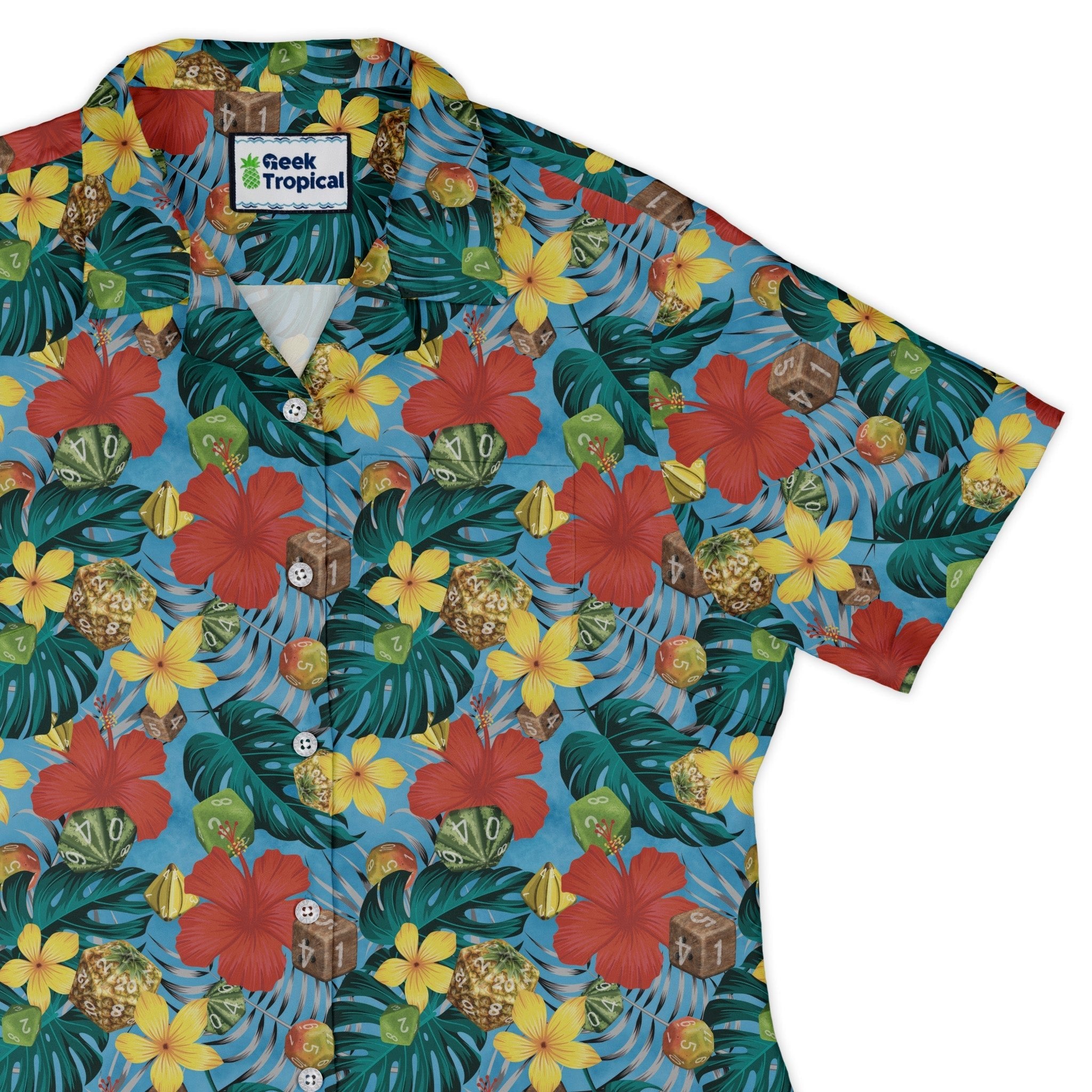 Meet the Tropical Fruit Dice Dnd Curvy Button Up Shirt—an island-bright mashup where juicy tropical fruit meets Dnd-ready dice for a pattern that rolls high on style. Tailored for a curve-loving fit, it stays polished while feeling effortless, and the all-over print even lines up across the pocket. Designed by Nathan with signature buttons and eco‑minded printing, it brings artist-backed flair to game night, beach days, and beyond.