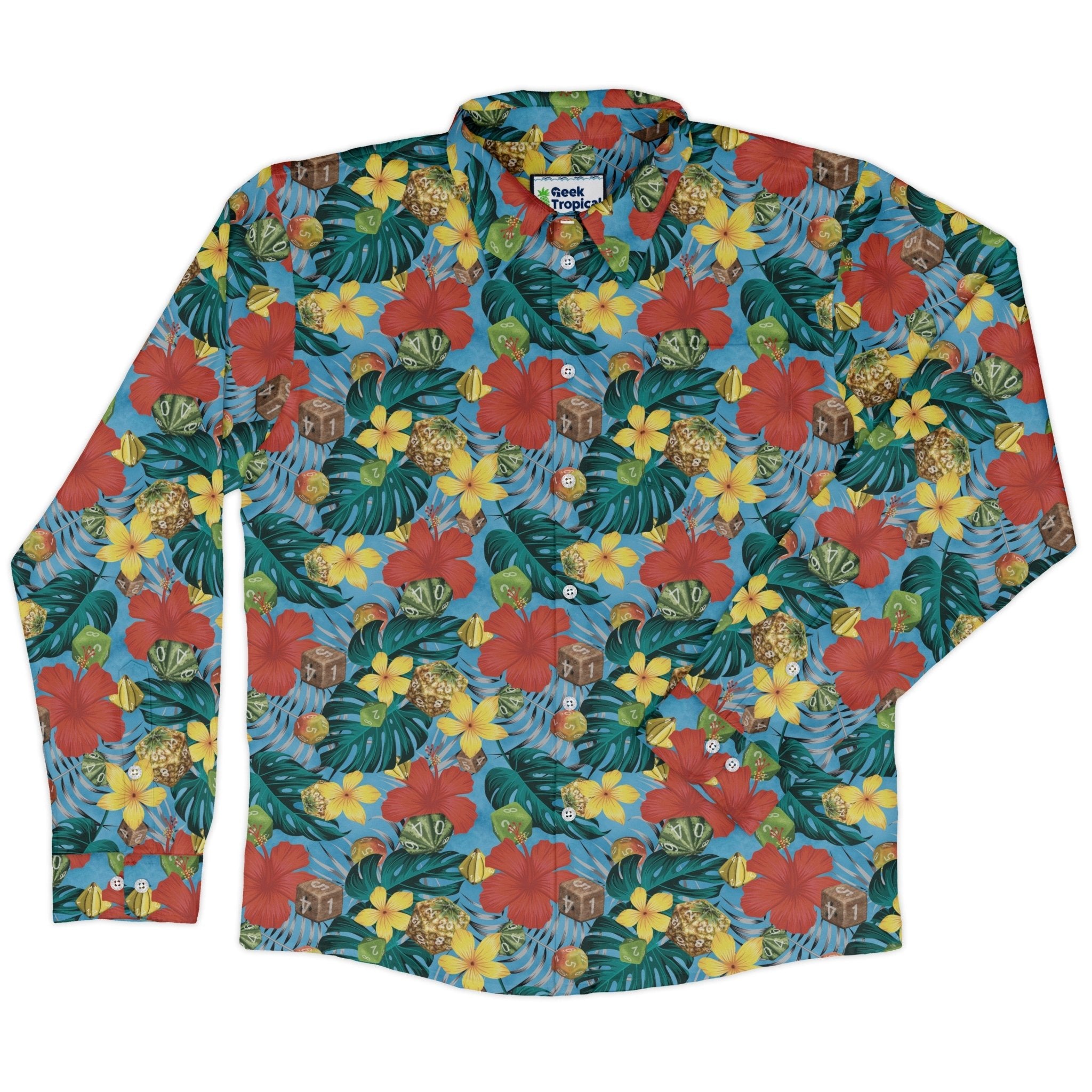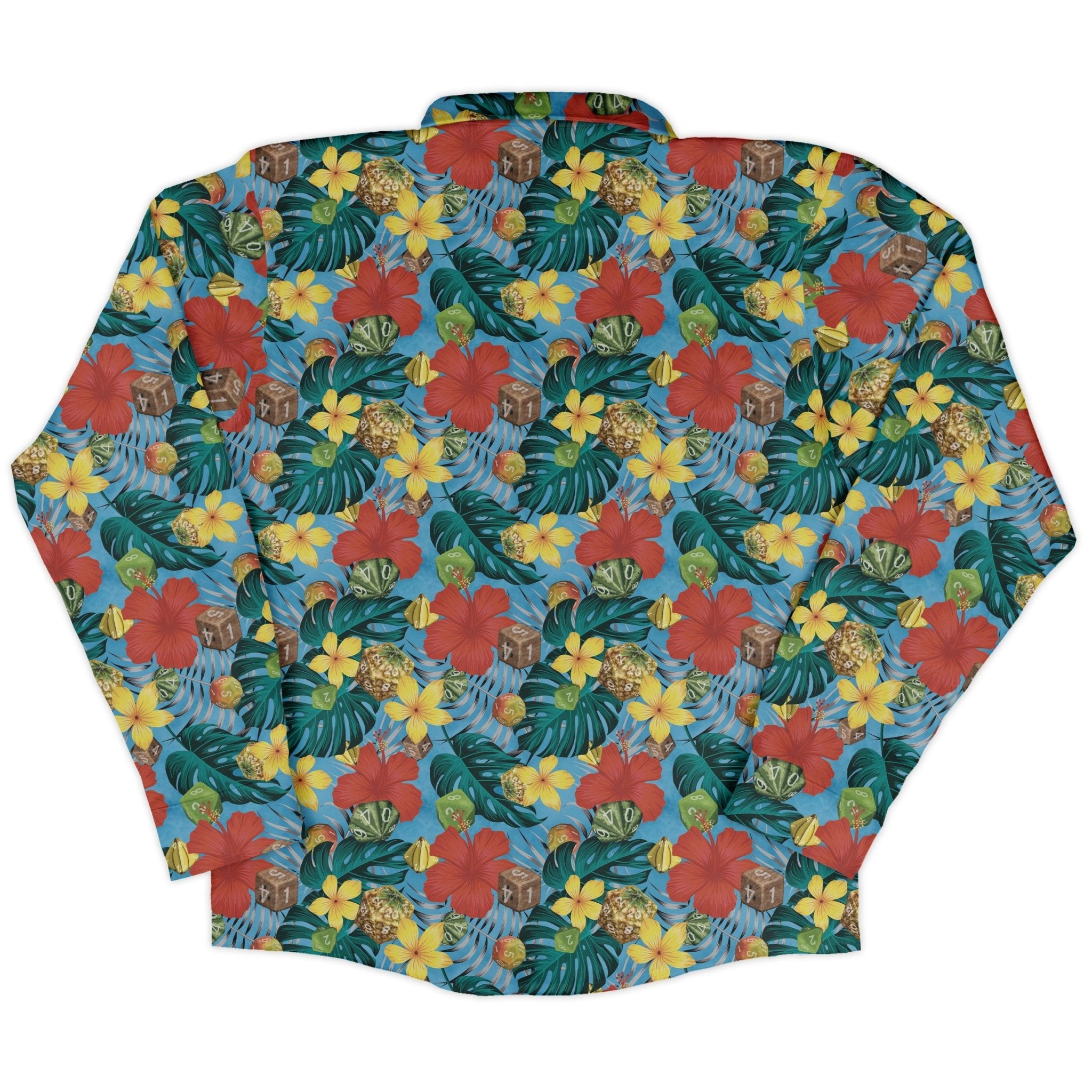 The Tropical Fruit Dice Dnd Long Sleeve Button Up Shirt blends tabletop swagger with vacation vibes. Designed by Nathan, its all-over print mixes juicy tropical fruit with crisp polyhedral dice (yes, d20s) for a playful, island-ready look. The pattern flows cleanly across the front and pocket for a polished finish, and eco-conscious inks keep it fresh. Ready for game night, tiki hangs, or your most charismatic casual Friday.