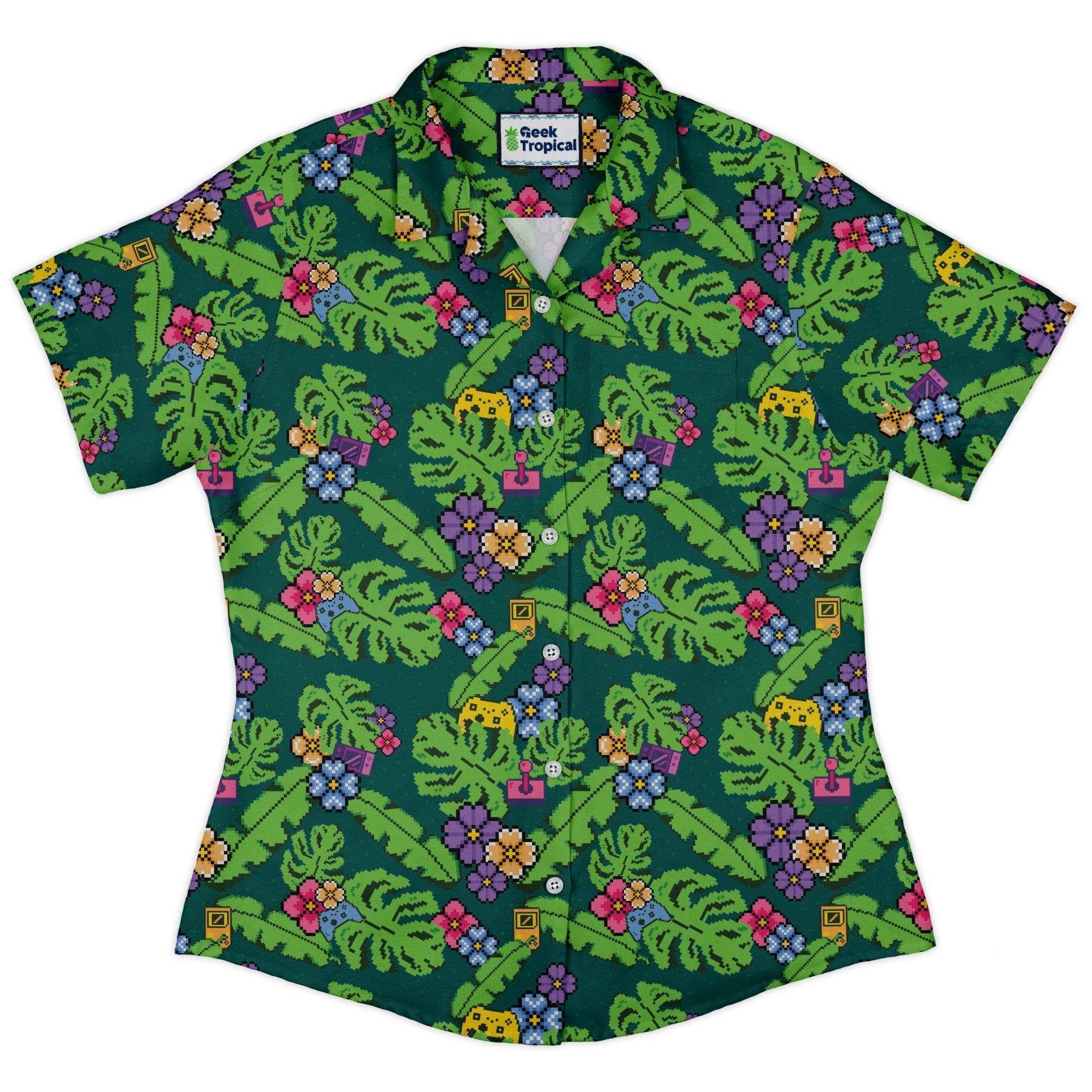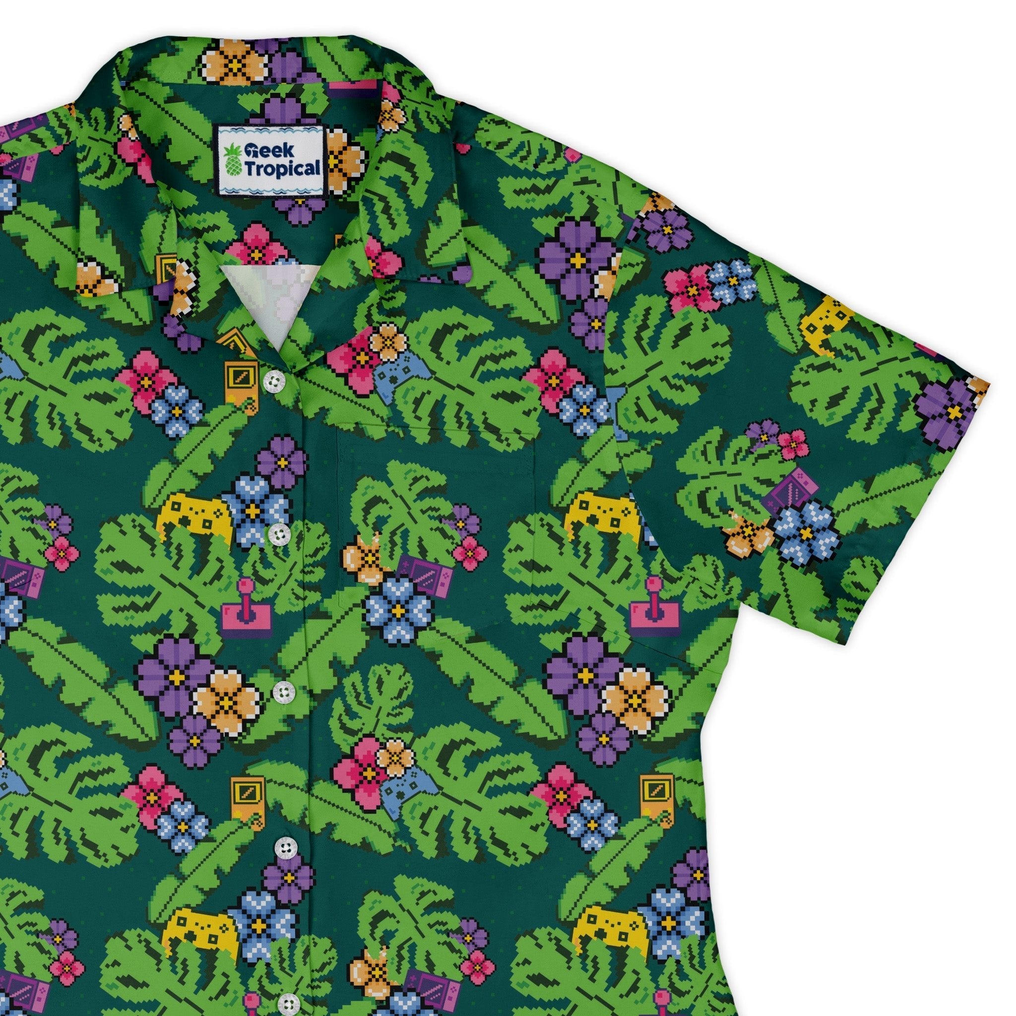 Tropical Video Game Pixels Curvy Button Up Shirt