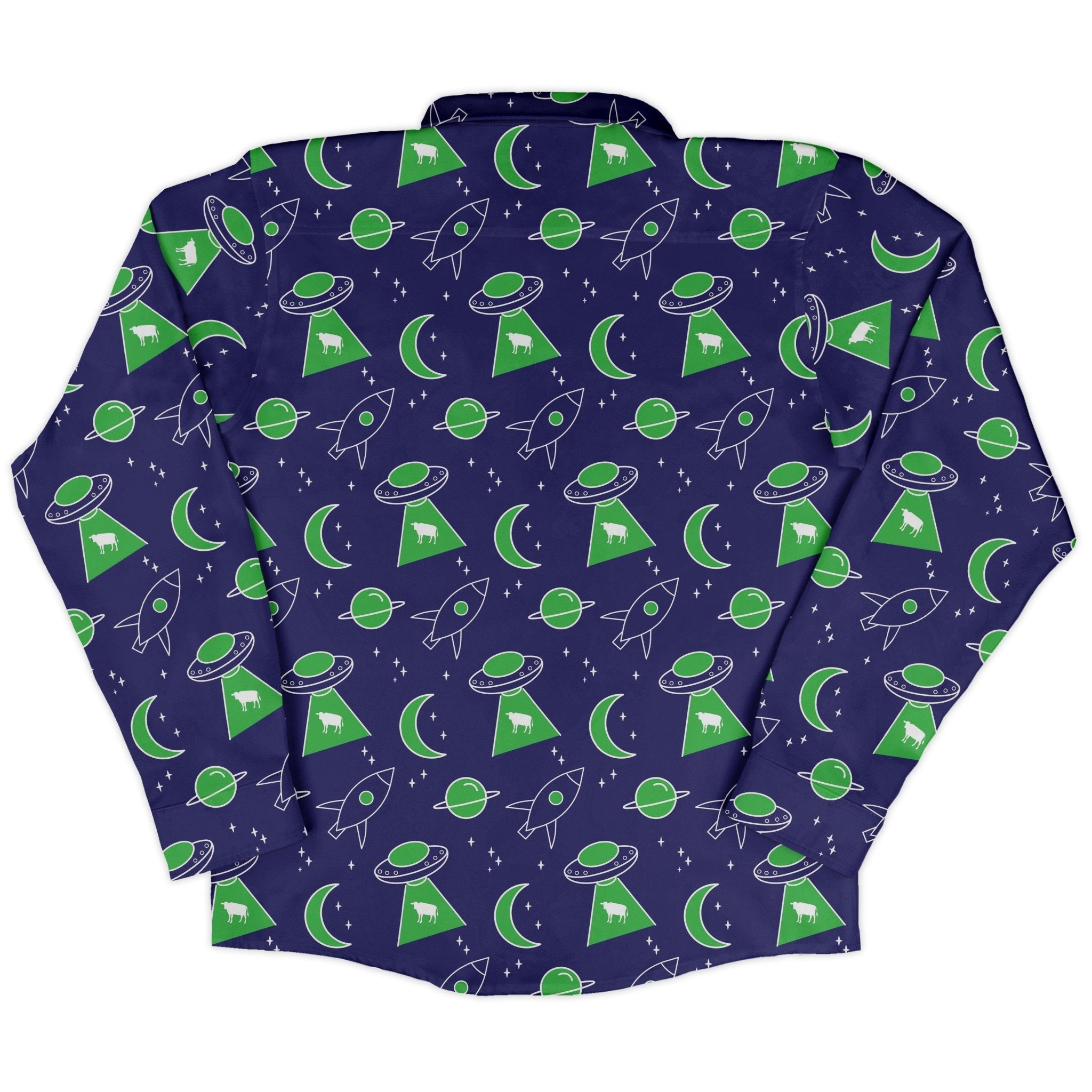 UFO Cow Abduction Long Sleeve Button Up Shirt