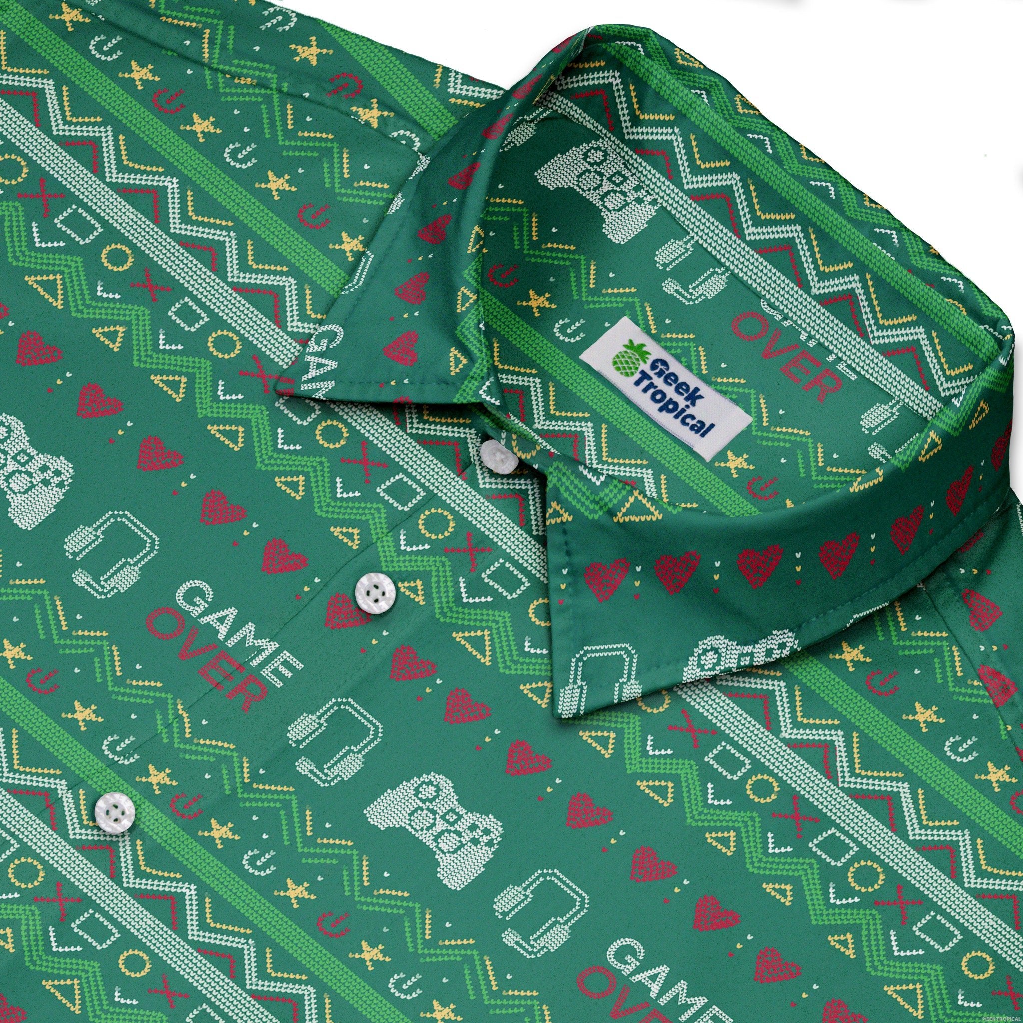 Ugly Christmas Sweater Video Gamer Button Up Shirt