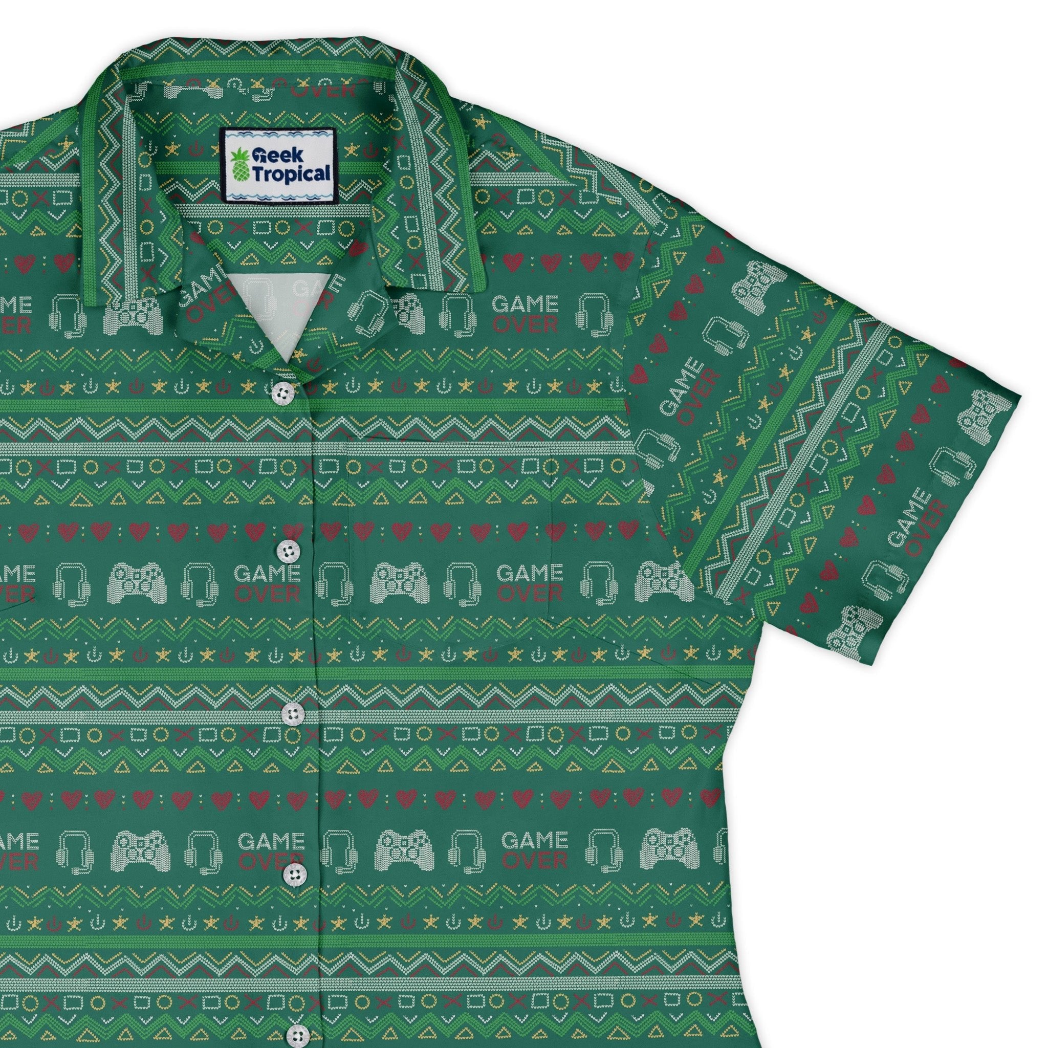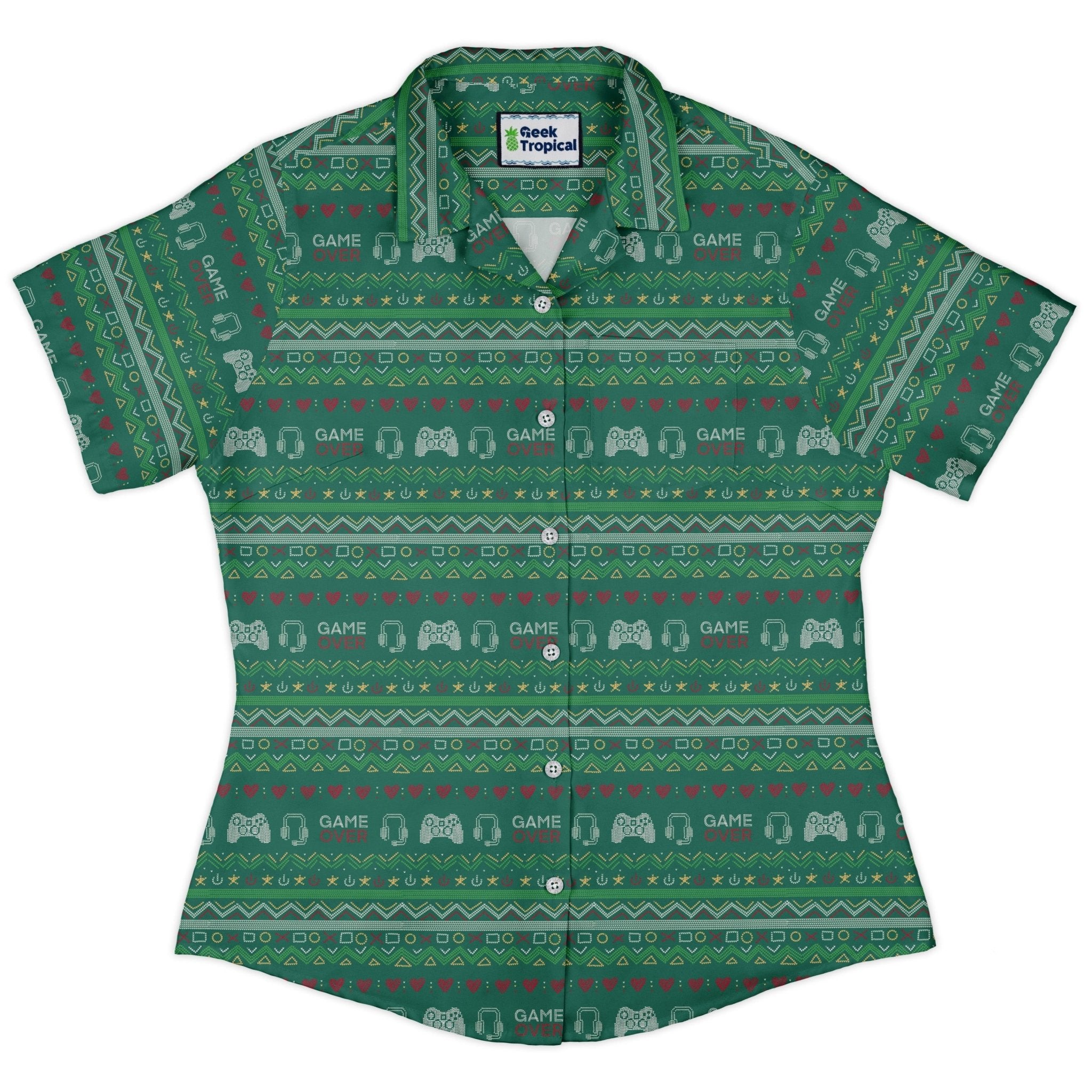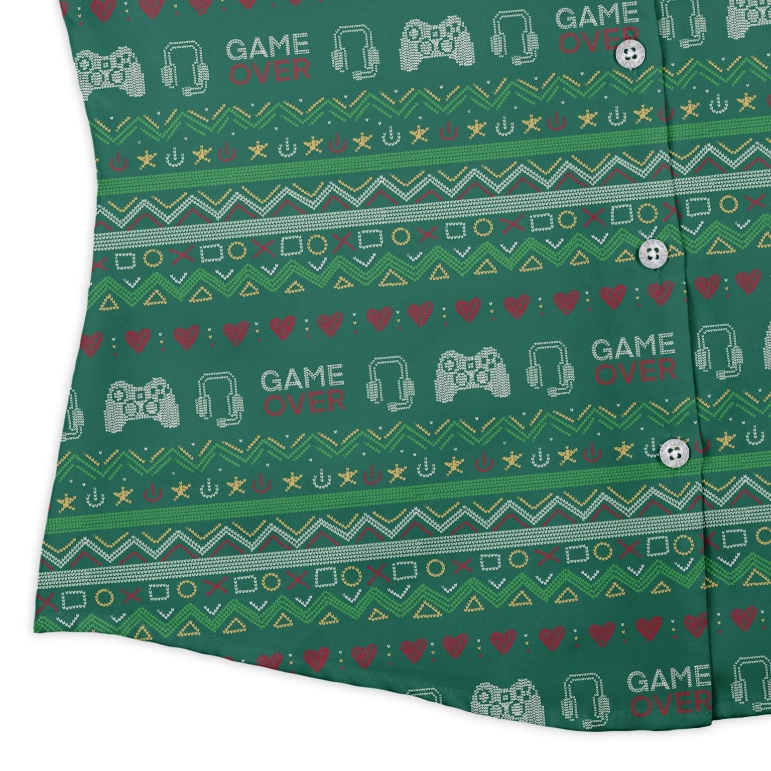 Ugly Christmas Sweater Video Gamer Curvy Button Up Shirt