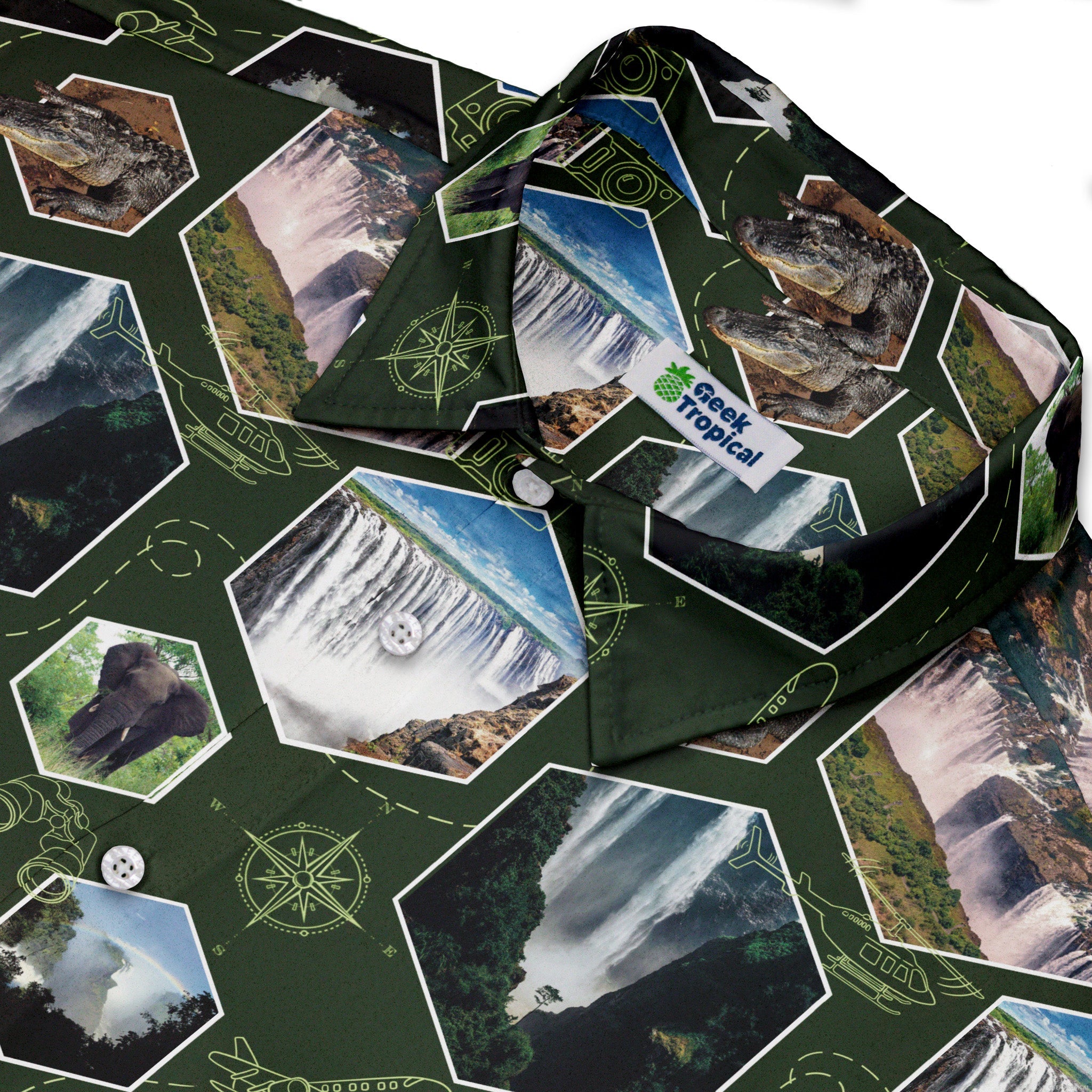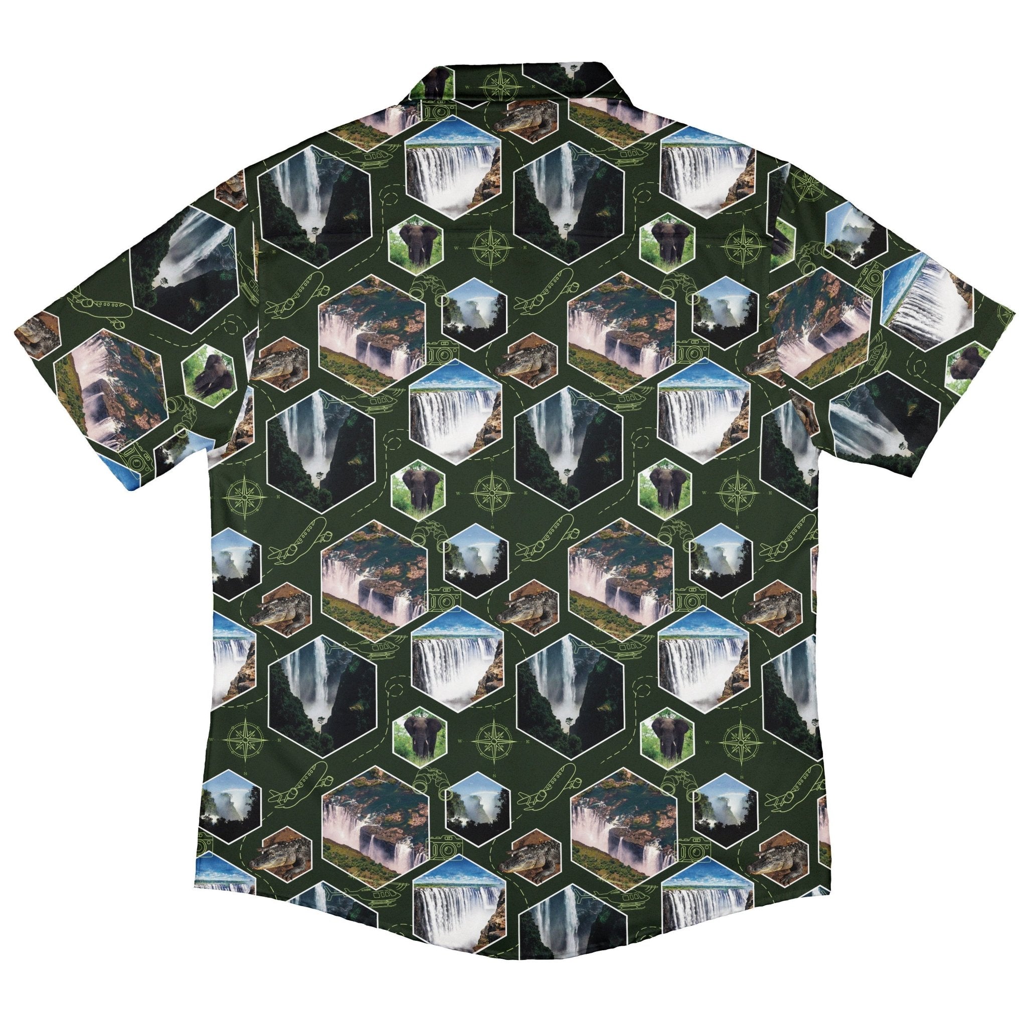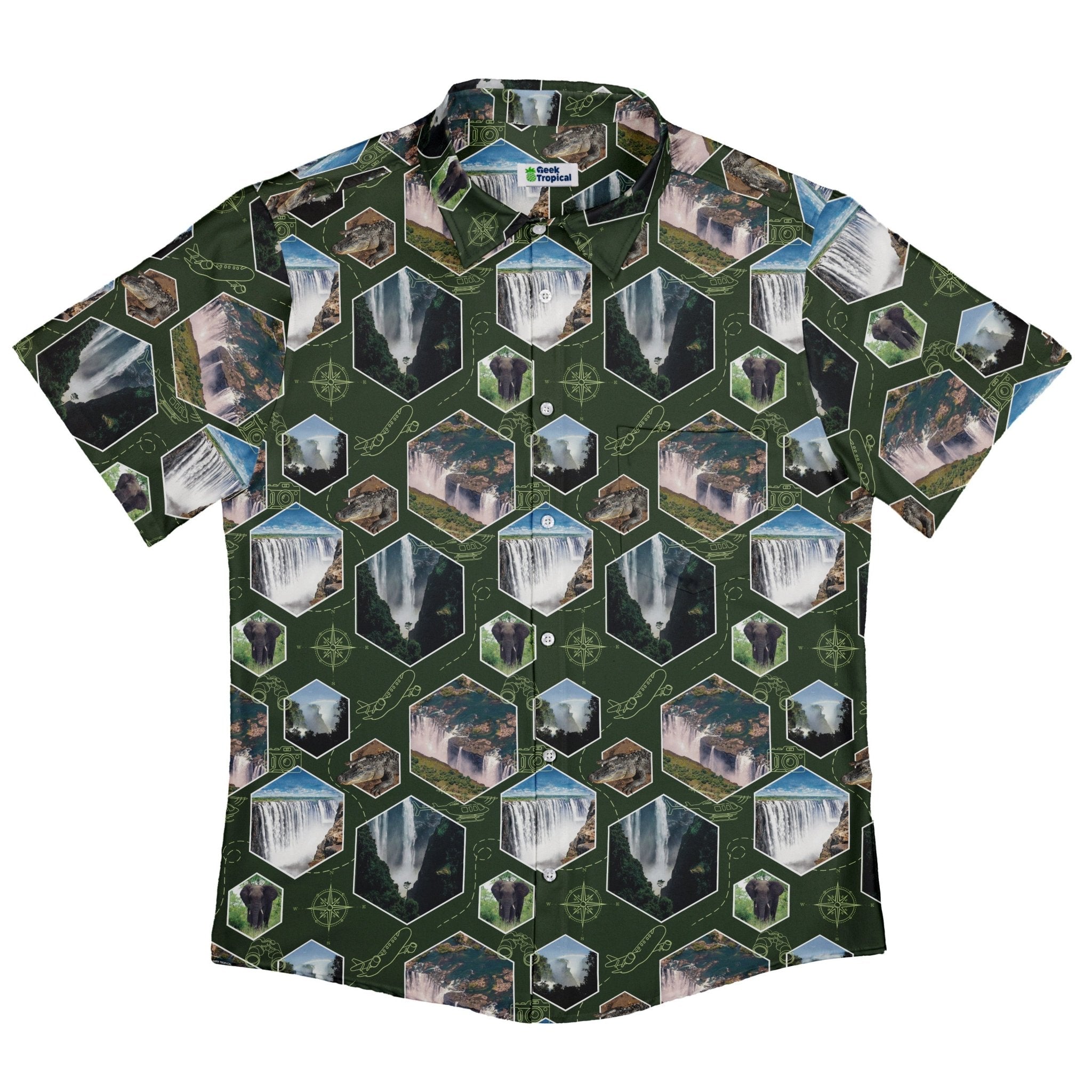 The Victoria Falls Wonder Button Up Shirt splashes your day with a lush, maximalist botanical print that feels like cool mist off a cascade. Layered leaves and curling fronds drift across the surface with crisp, illustrative detail, giving natural motion from collar to hem. Designed by Nathan, it’s artist-backed style for plant geeks and travelers—easy to dress up, bold enough to be the main event, and effortlessly unisex.