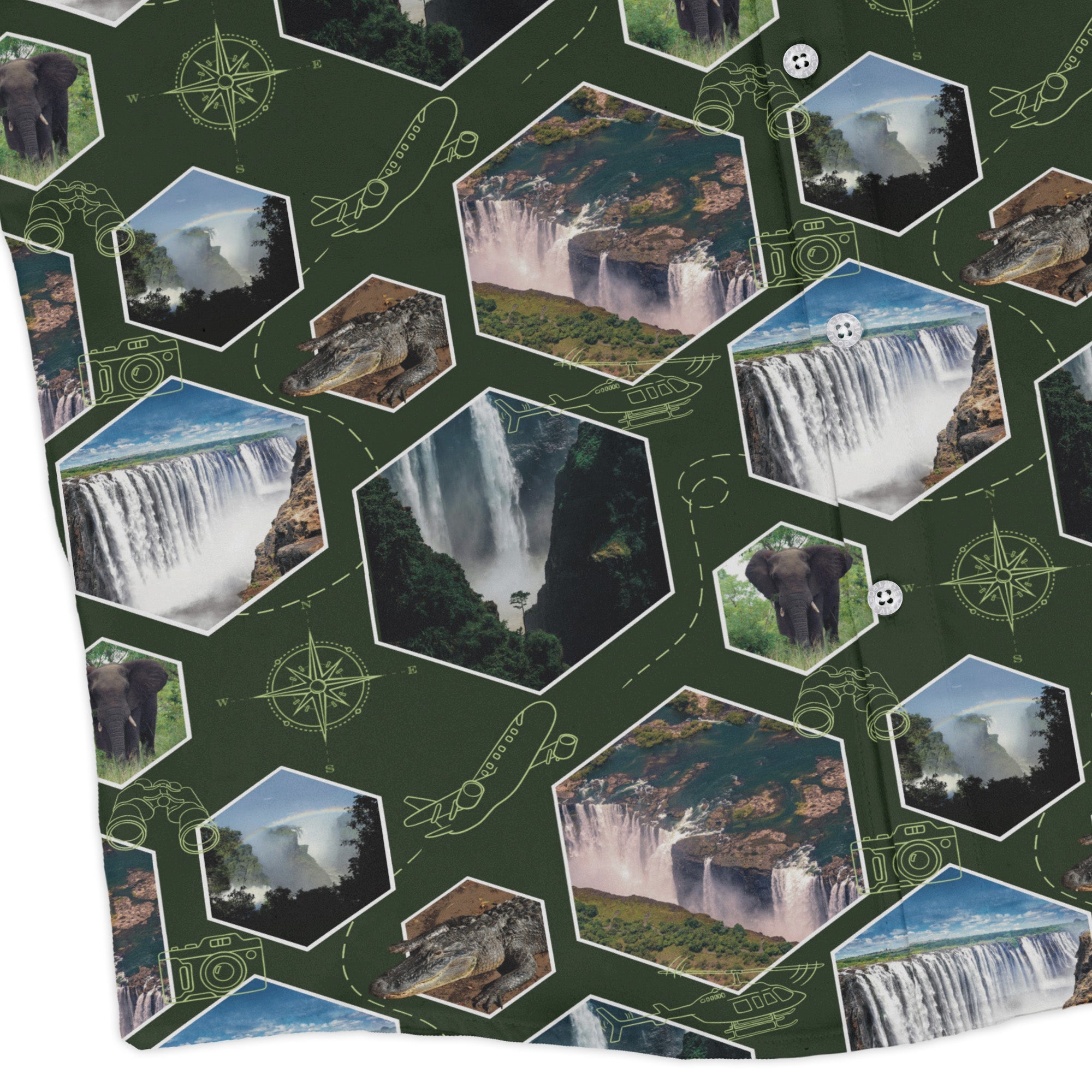 Meet the Victoria Falls Wonder Long Sleeve Button Up Shirt, a lush, unisex statement inspired by roaring cascades and jungle botany. Vivid waterfall blues mingle with deep greens in a maximalist print of layered leaves and fluid motion, flowing cleanly from collar to hem. Easy to dress up or down, it brings geeky confidence to weekdays and wanderlust to weekends. Designed by Nathan and printed with eco-conscious inks.