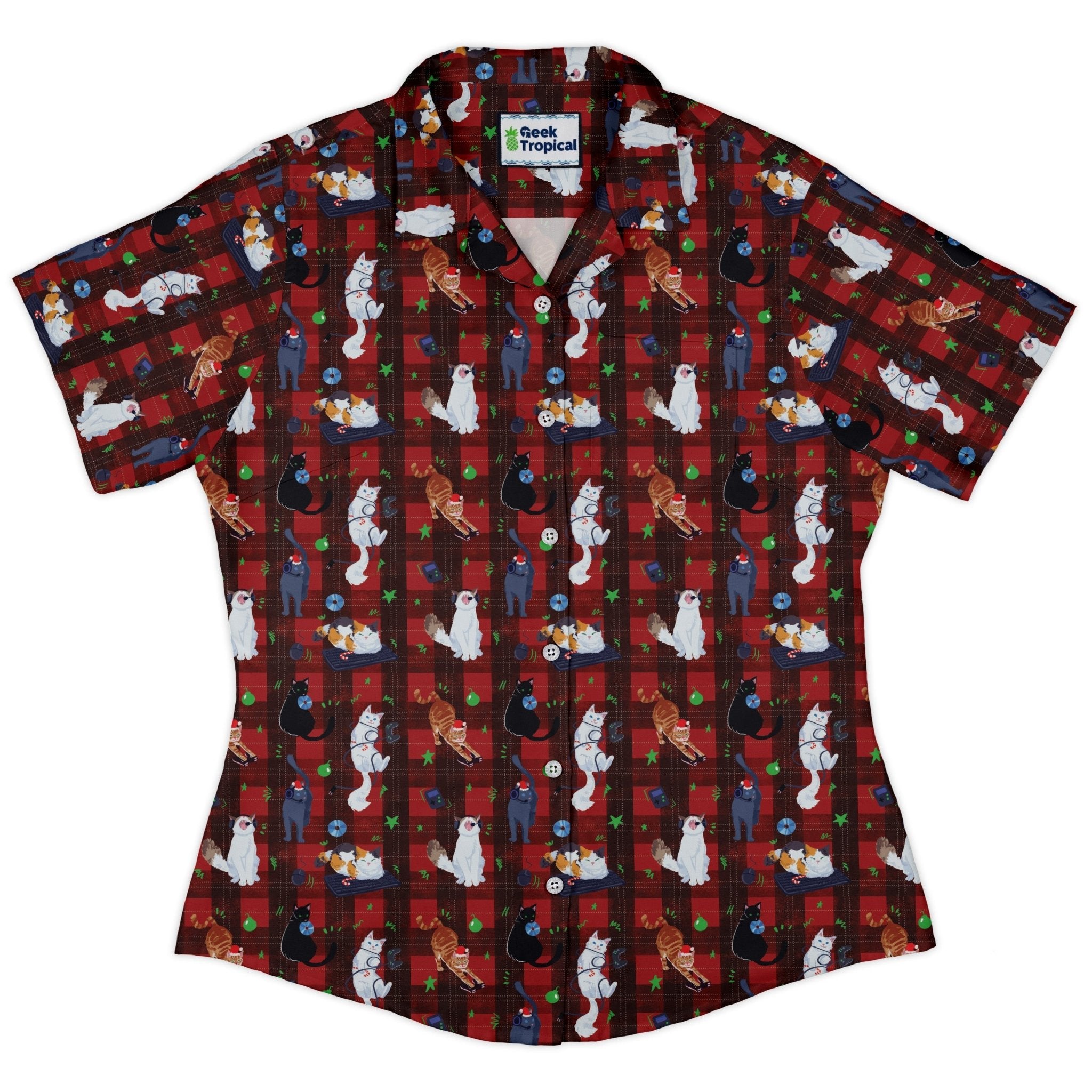 Video Game Cats Christmas Curvy Button Up Shirt