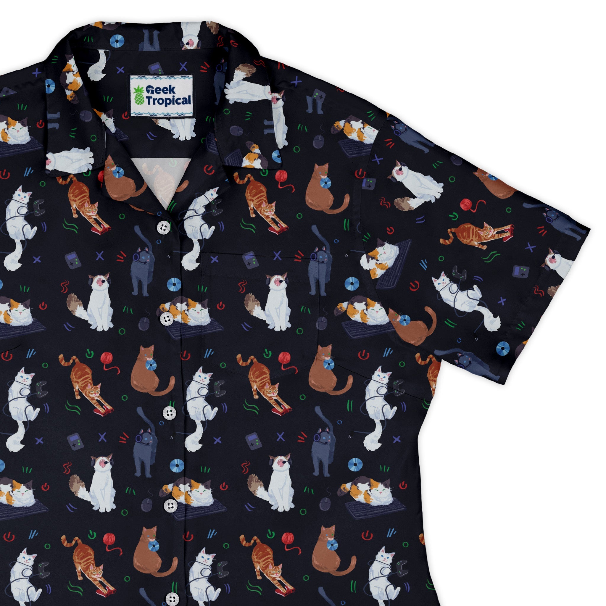 Video Game Cats Dark Curvy Button Up Shirt