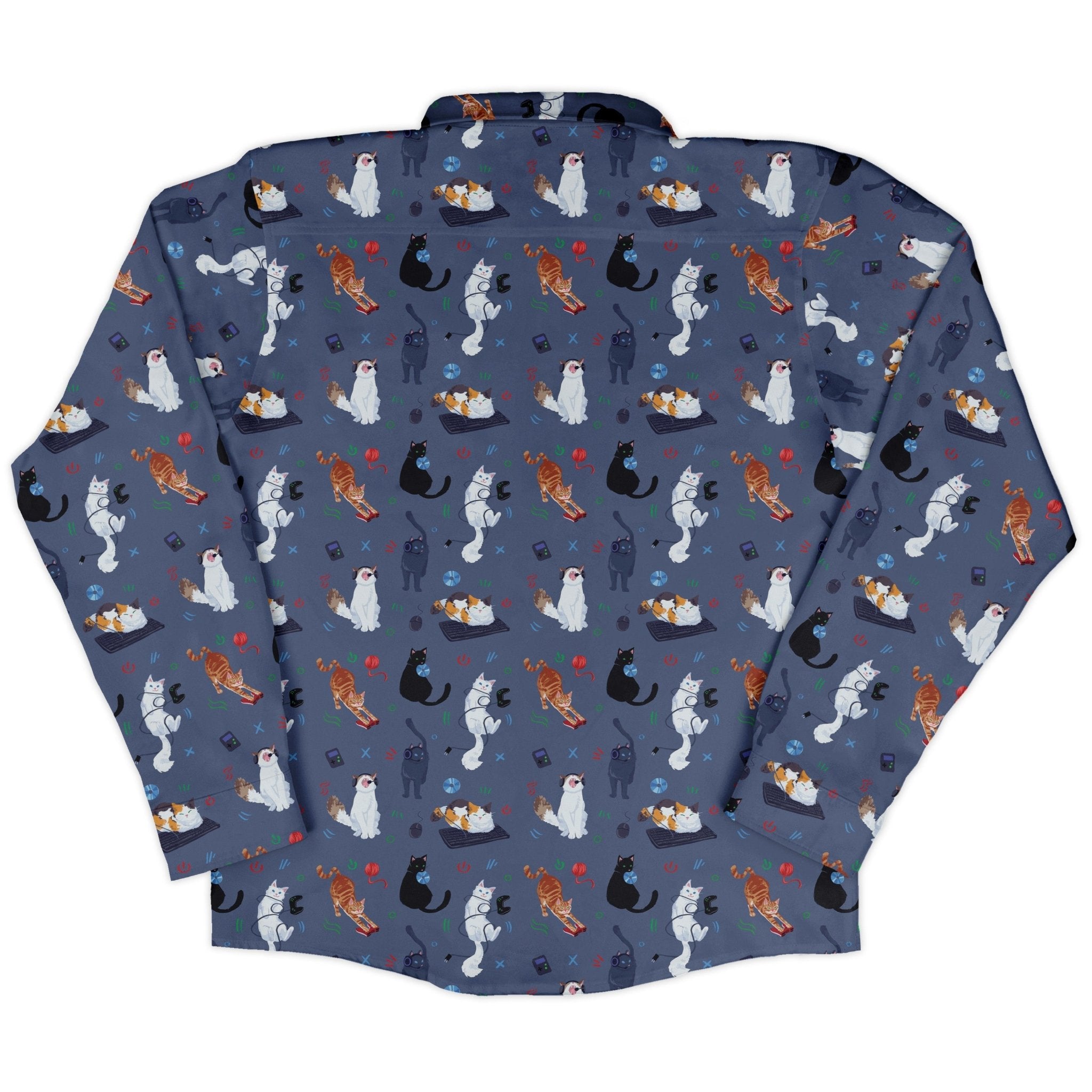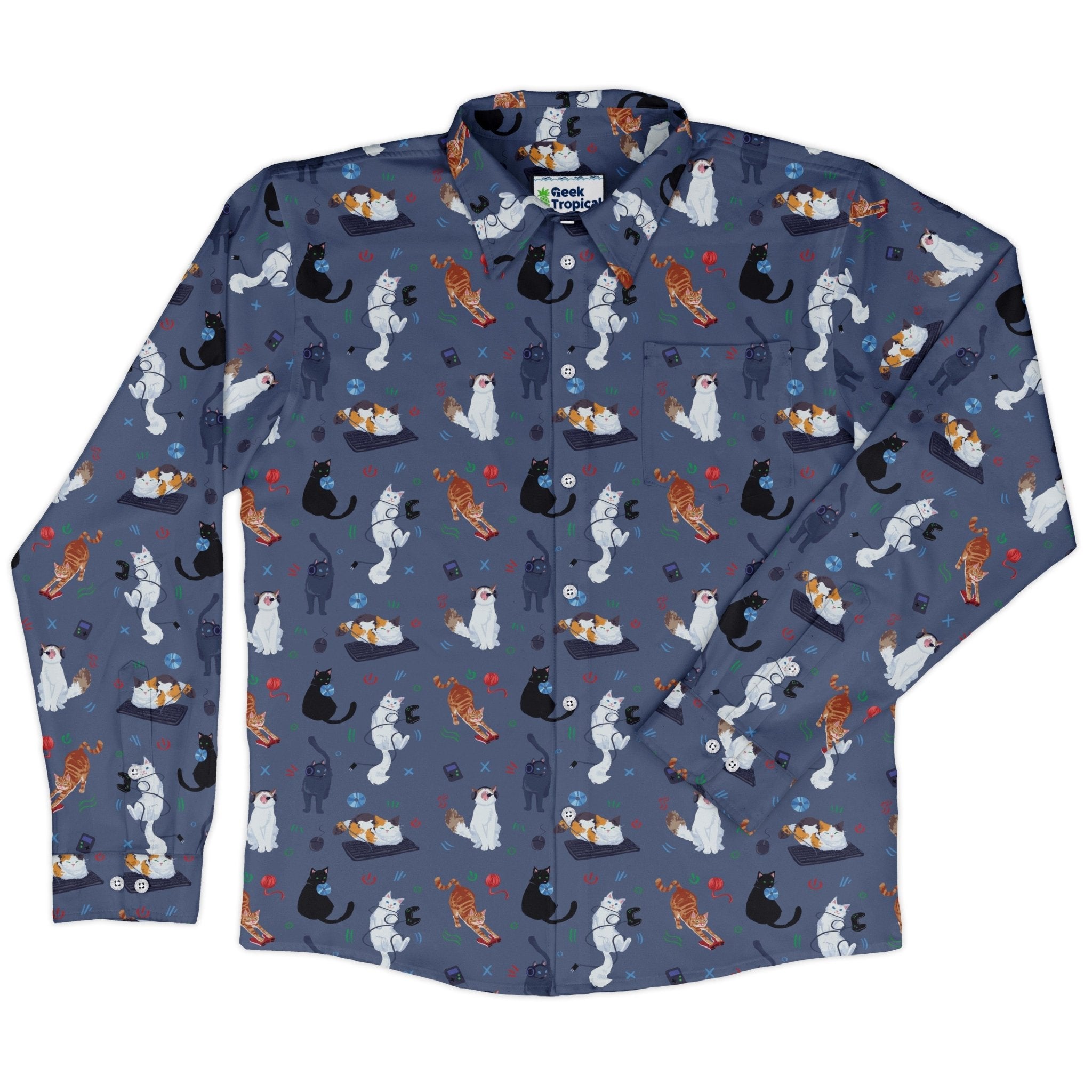Video Game Cats Light Long Sleeve Button Up Shirt