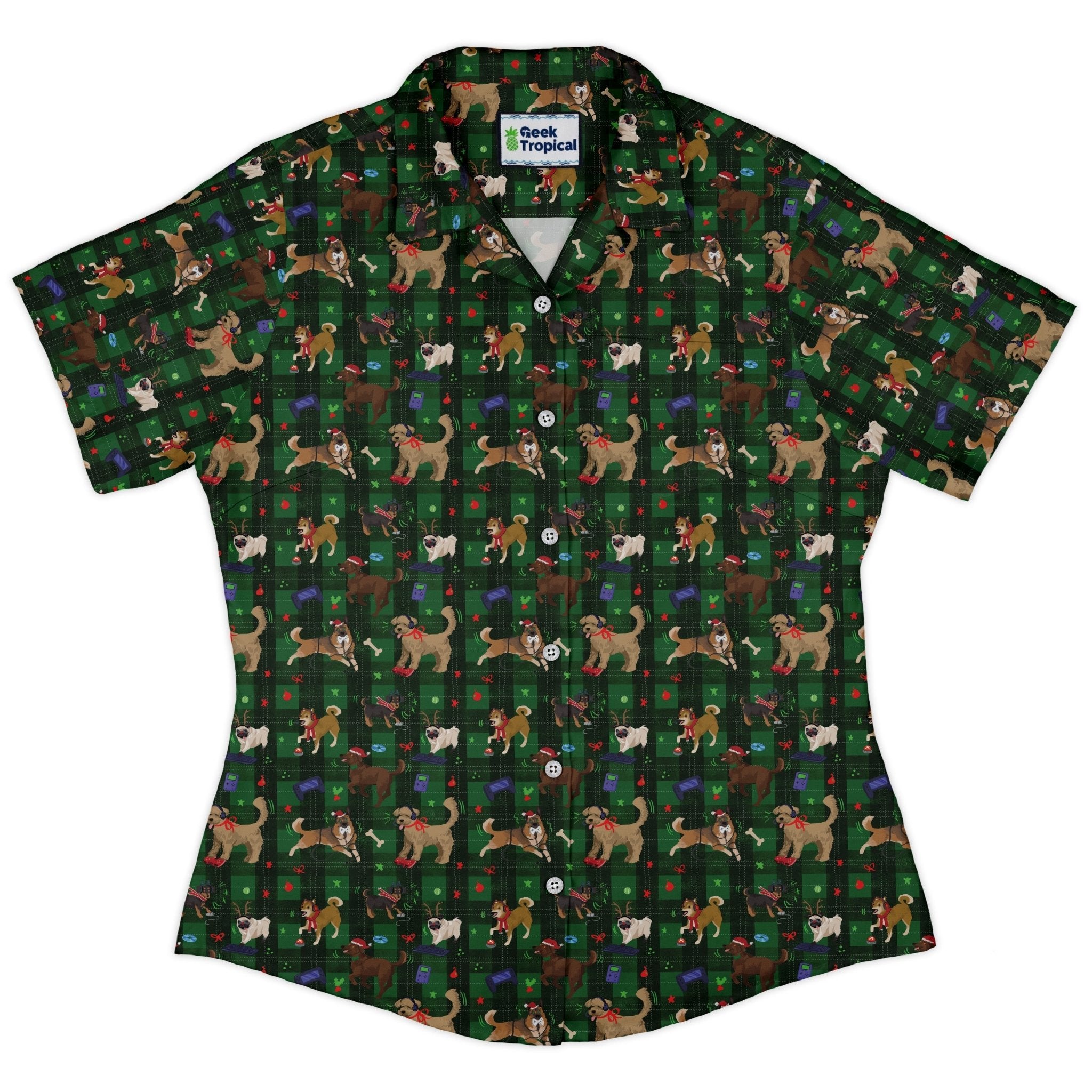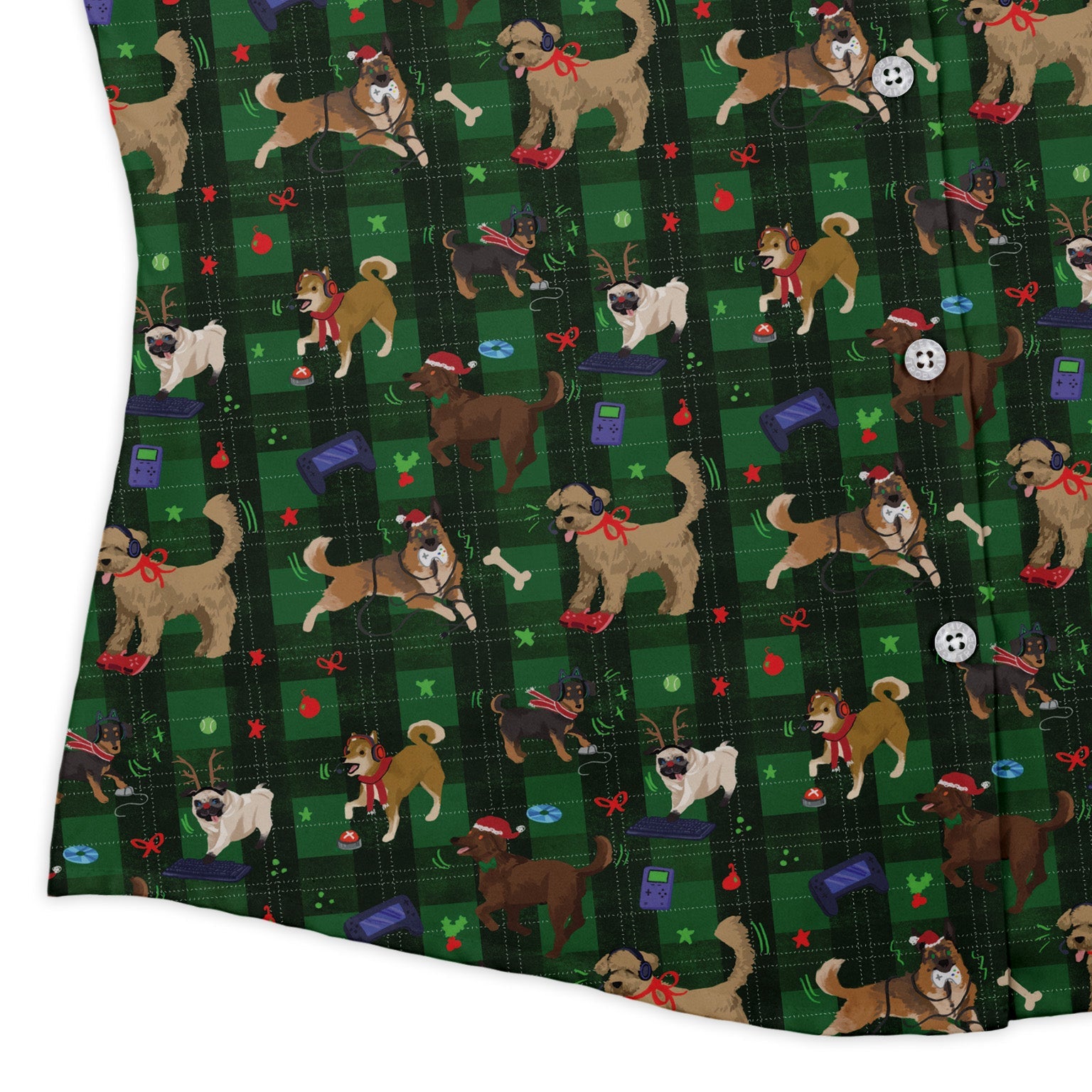 Video Game Dogs Christmas Curvy Button Up Shirt