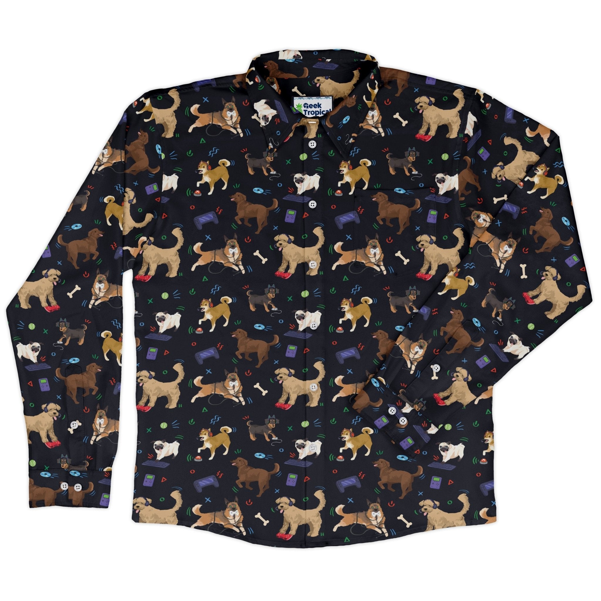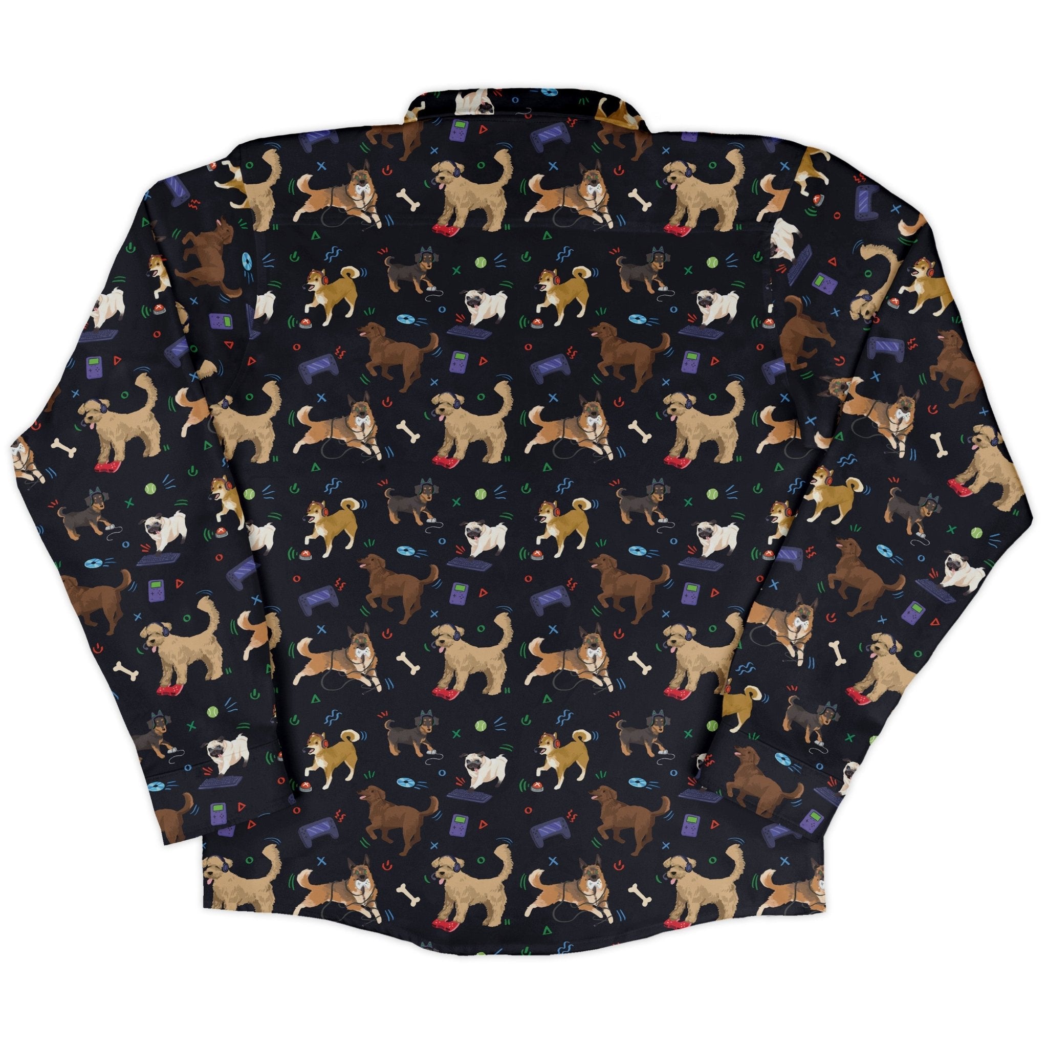 Video Game Dogs Dark Long Sleeve Button Up Shirt