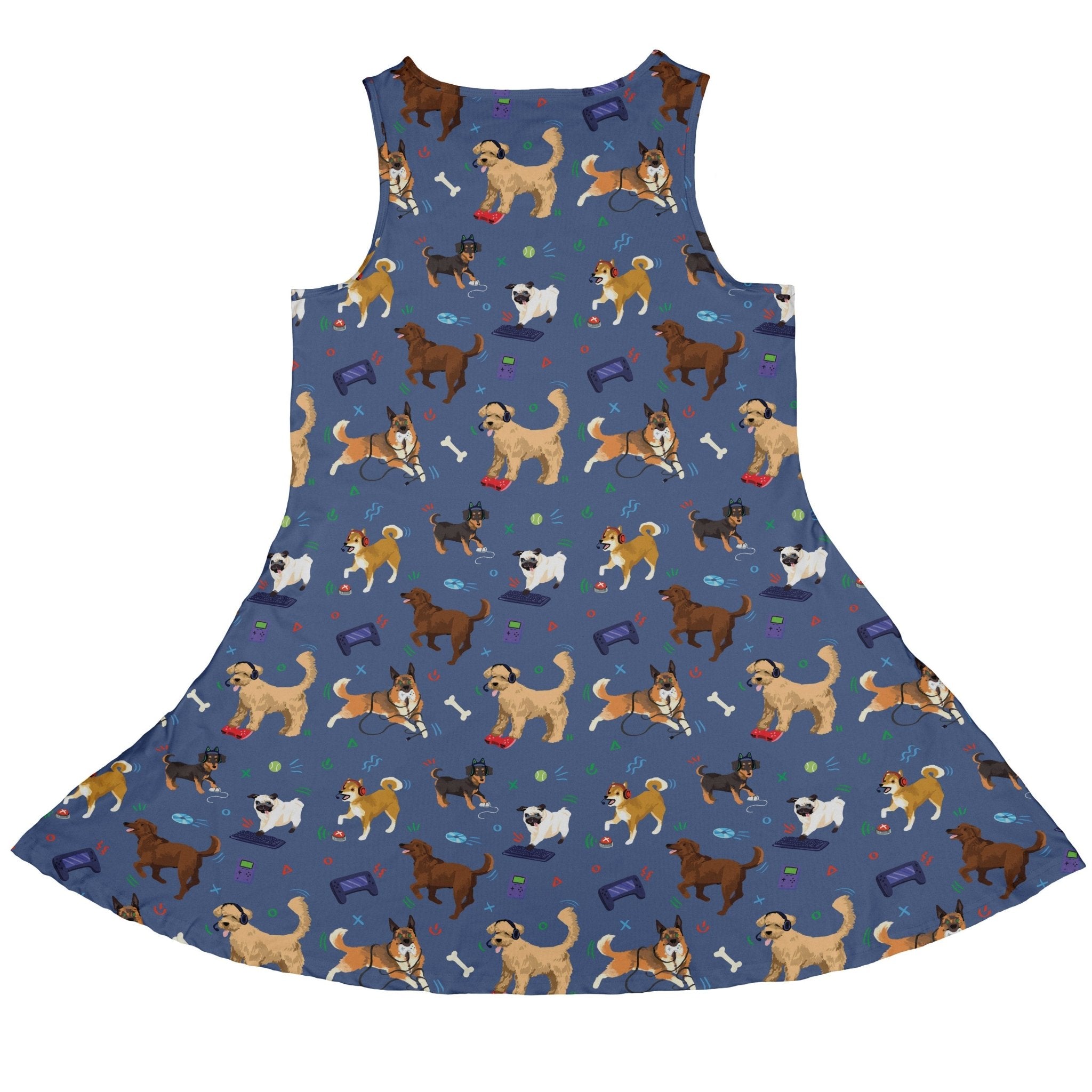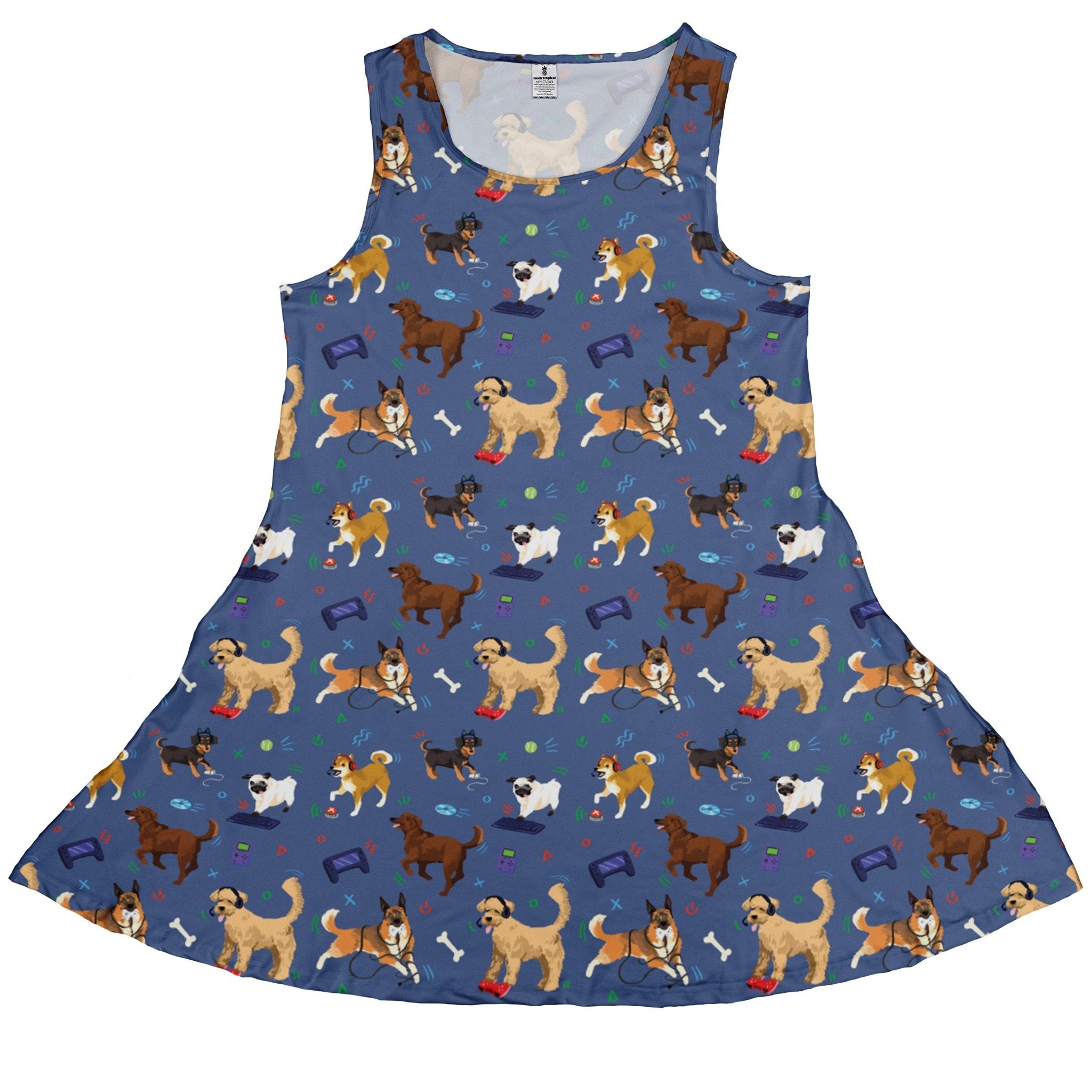 Level up your day-to-day in the Video Game Dogs Light Dress, a breezy, gamer-chic piece designed by Claire Murphy. A light backdrop showcases a pack of pups rendered in retro, arcade-inspired art, with playful pixel cues that nod to coin-op nostalgia. Easy to wear, fully covered, and pocket-equipped—yes, room for a controller—this is casual cool with nerd cred. Every purchase supports licensed artists.