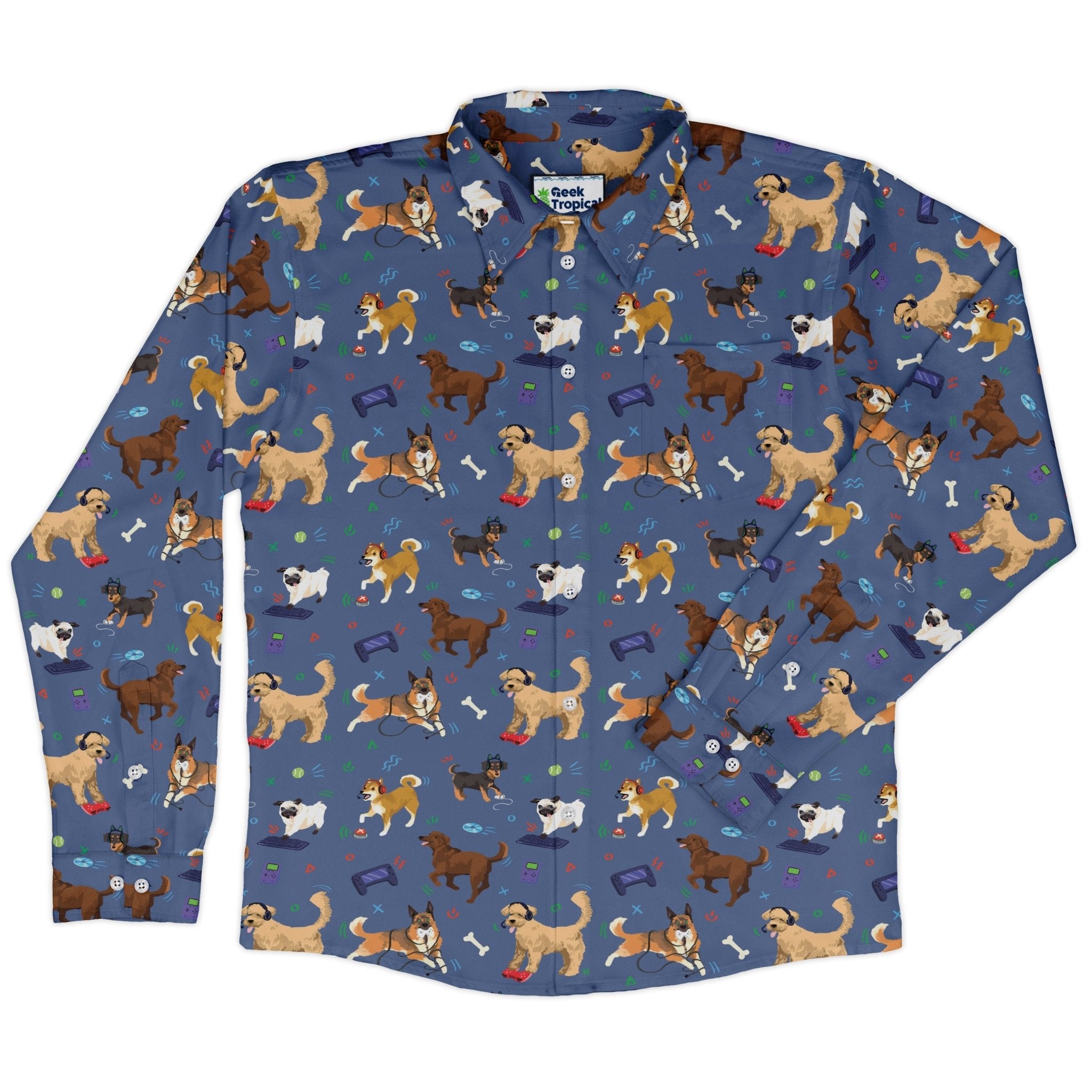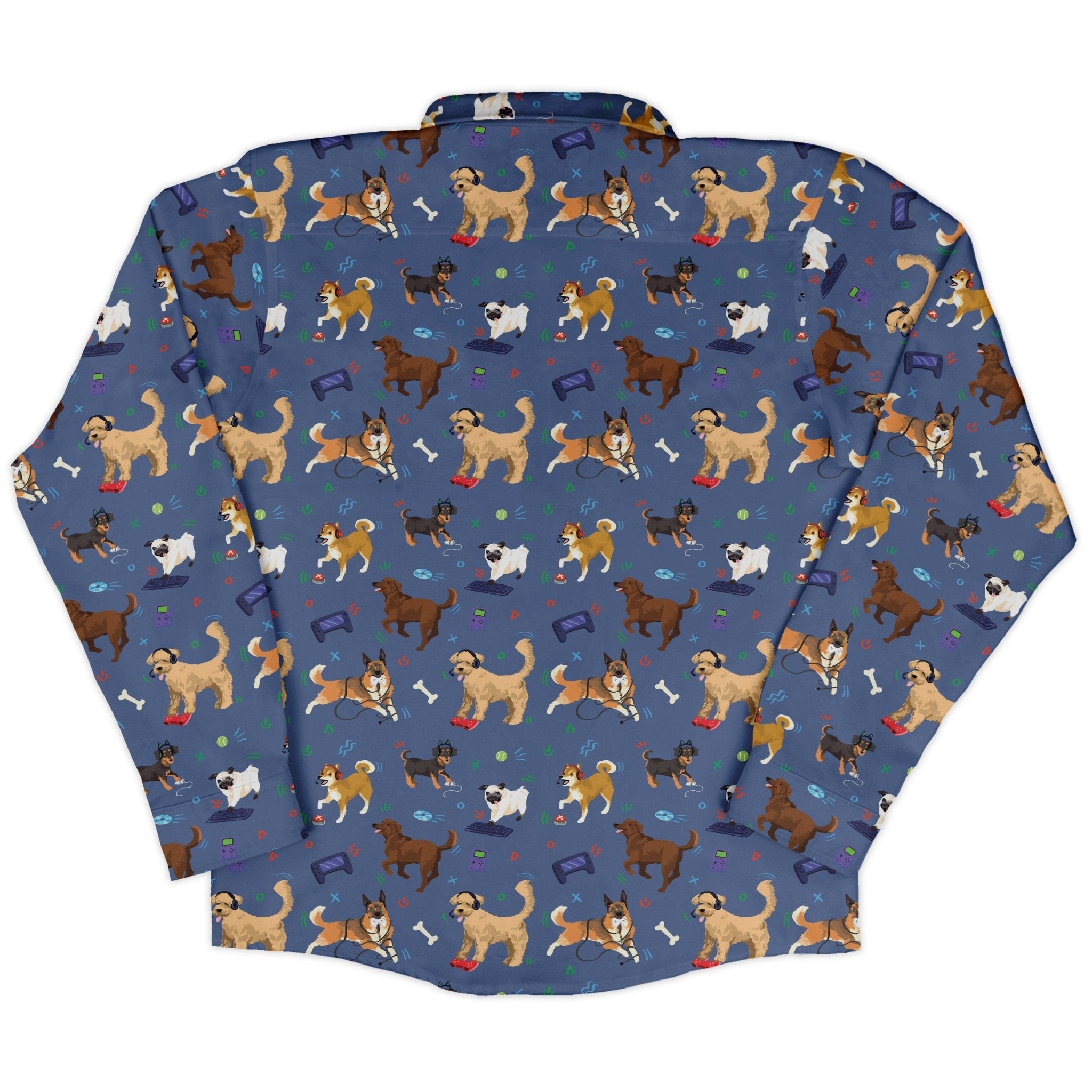 Video Game Dogs Light Long Sleeve Button Up Shirt