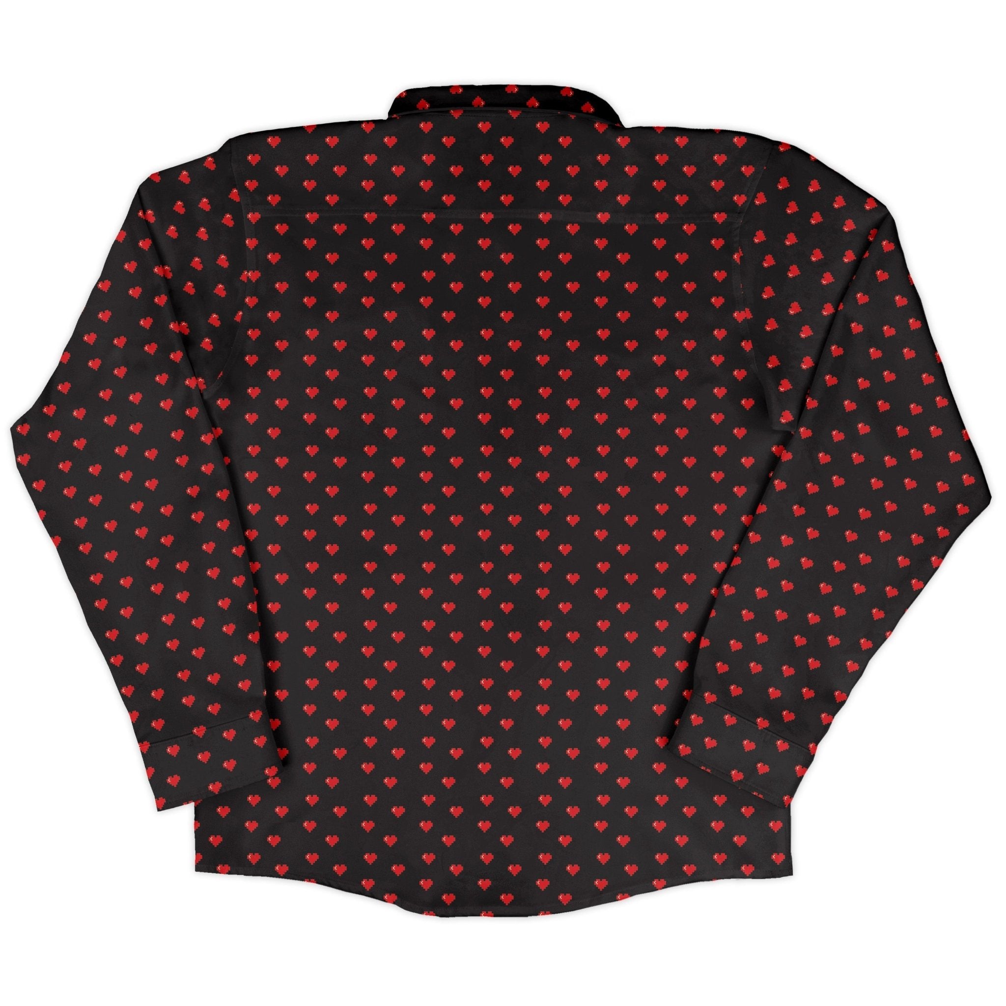 Video Game Hearts Black Long Sleeve Button Up Shirt