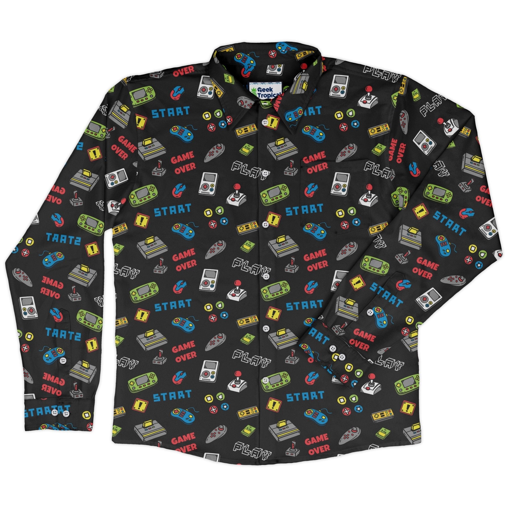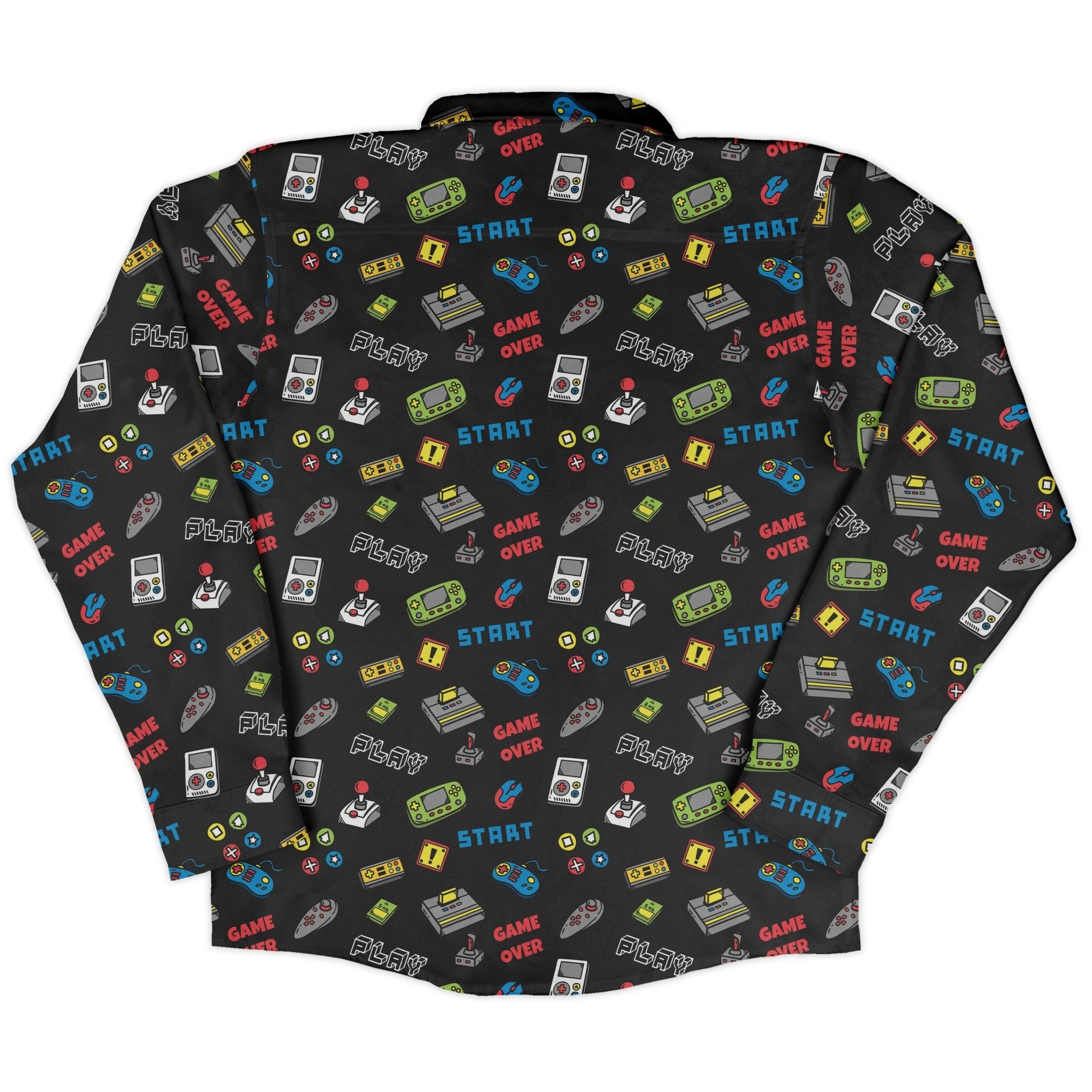 Video Gamer Black Video Game Long Sleeve Button Up Shirt