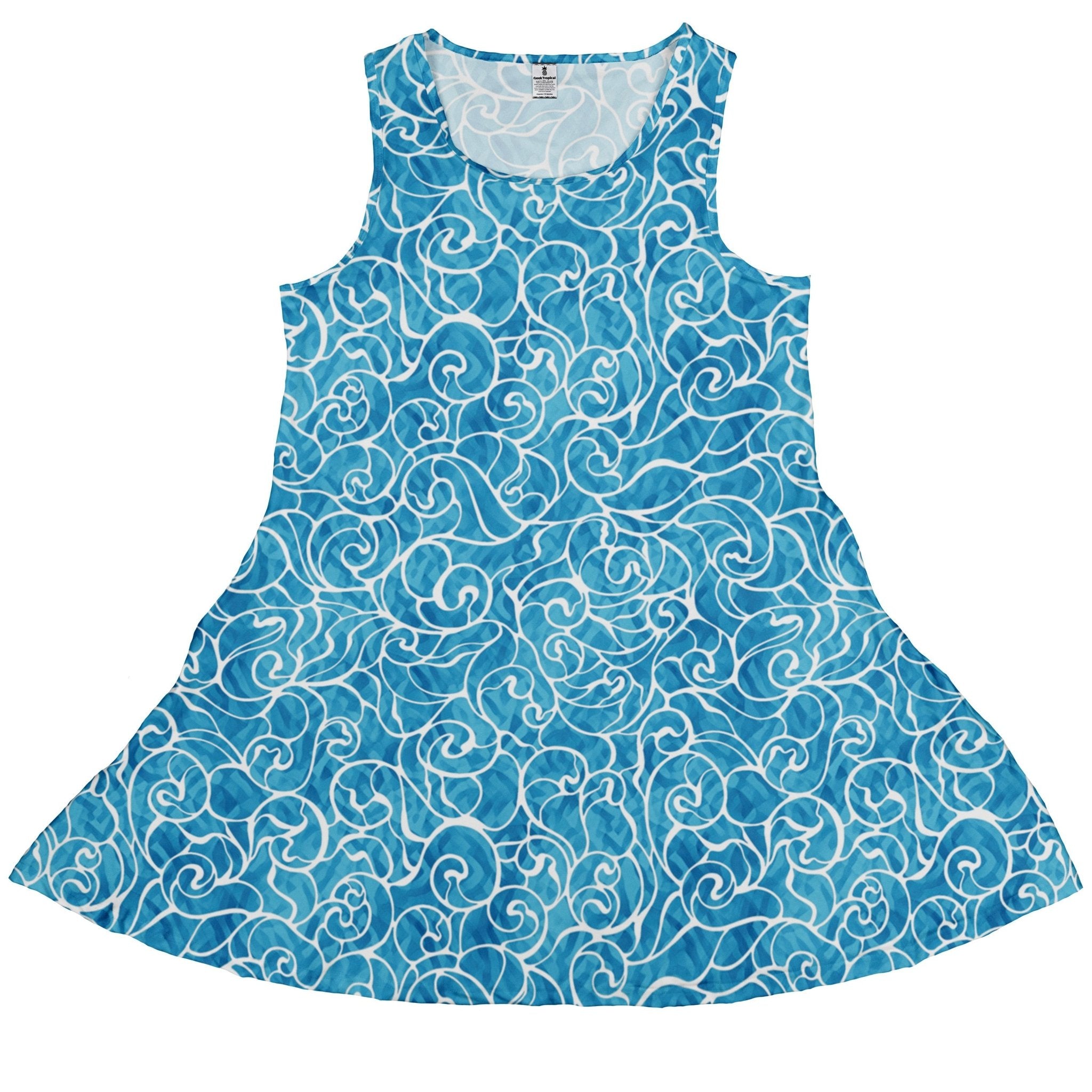 Waves light Dress brings coastal calm to your closet, designed by Brigid Ashwood. A soft gradient of pale aqua and seafoam forms cresting waves across a light backdrop, with crisp linework and flecks of foam that ripple as you move. The comfy, breathable stretch keeps its shape and coverage, while deep side pockets stash your essentials—yes, even a game controller. Artist-backed, geek-approved, effortlessly polished.