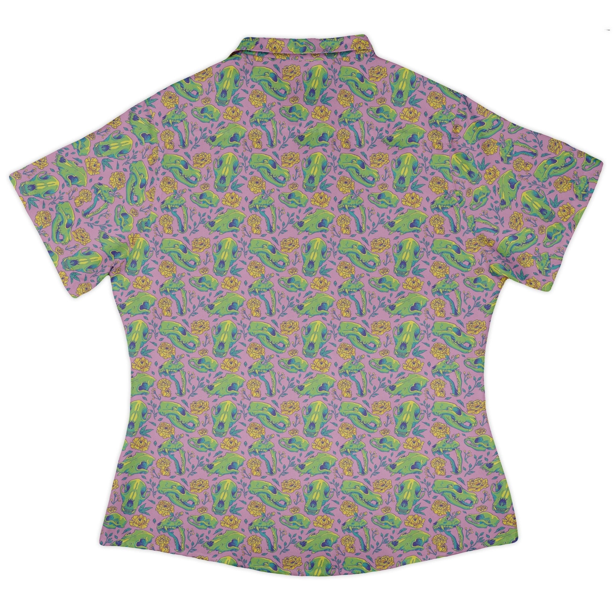 Meet the Wildfang Flora Pink Curvy Button Up Shirt, a rosy botanical statement with a curve-loving fit made for plant geeks. The print—designed by Julie Kitzes—layers lush flora with subtle animal nods over a pink ground, flowing cleanly across the placket and pocket for a seamless look. Soft to the touch with polished branded buttons, it shines untucked, and the sleeves style fitted or relaxed. Printed with eco-conscious inks.