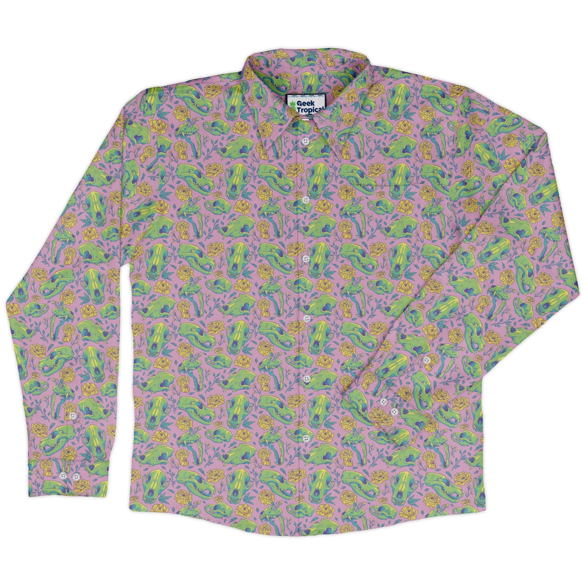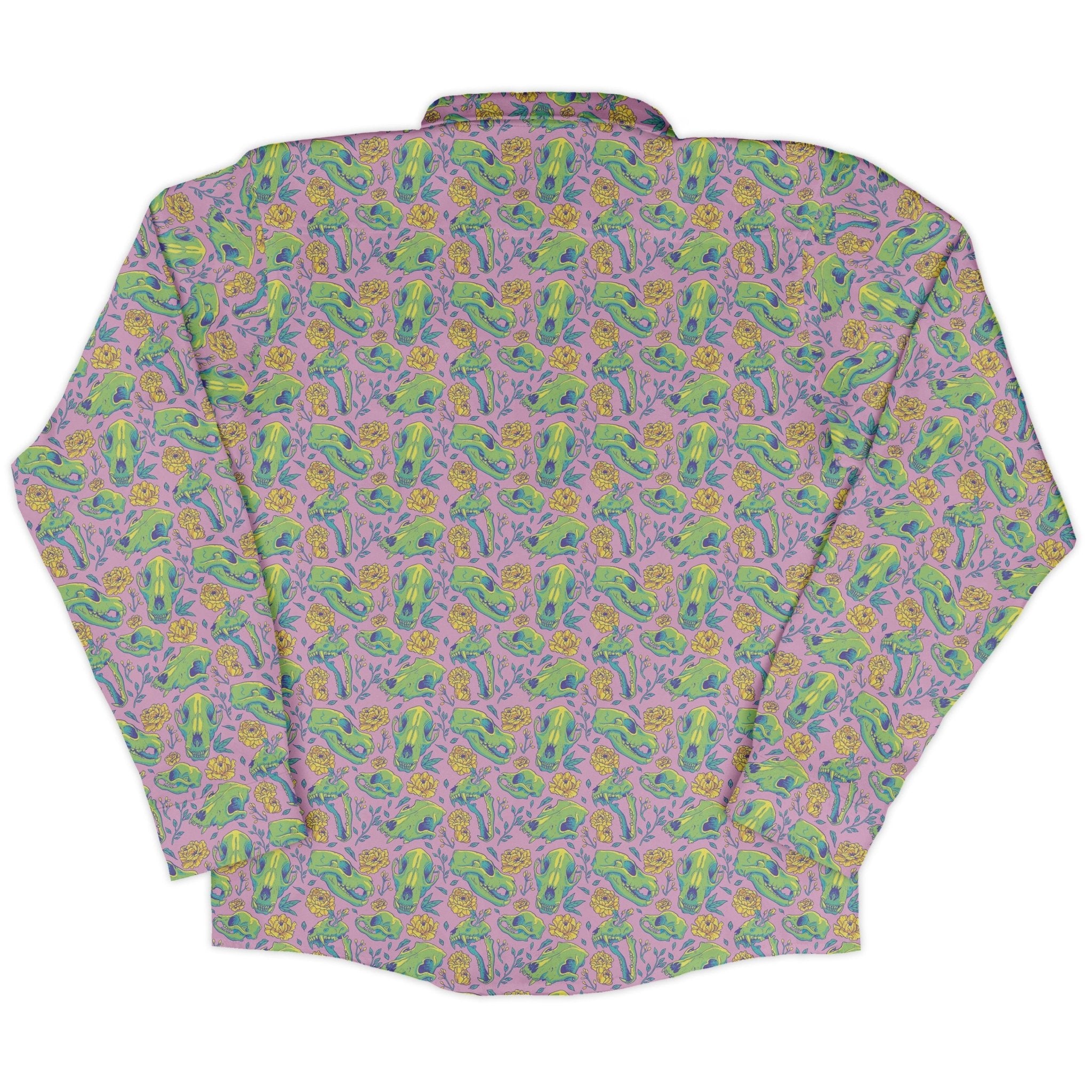 Meet the Wildfang Flora Pink Long Sleeve Button Up Shirt, a rosy canvas of lush flora and subtle critters illustrated by Julie Kitzes. Airy-soft and breathable, it drapes in an easy, relaxed-meets-regular vibe with adjustable cuffs and signature buttons. A pattern-matched chest pocket keeps the artwork flowing edge to edge. Printed with eco-conscious inks, and your purchase supports the artist—smart style for plant geeks with personality.