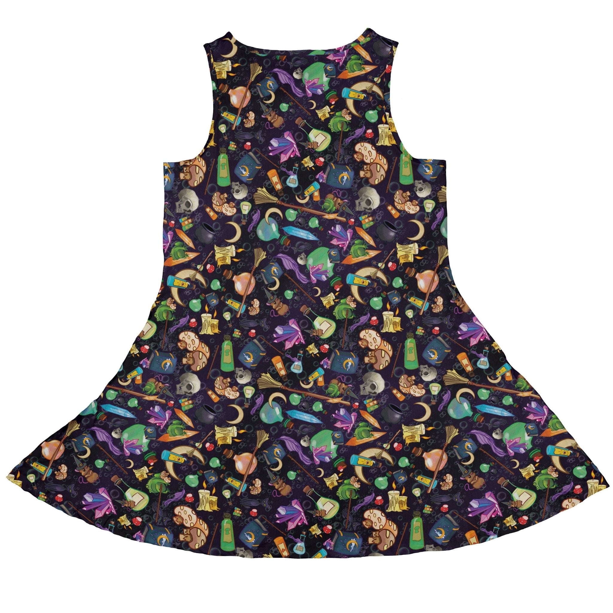 The Witches Potion Brew Dress serves spooky-luxe energy for your next quest or coffee run. A maximalist fantasy print splashes the fabric with witchy potions and bubbling brews, turning your look into a stylish spell. Soft, breathable stretch keeps you comfy with confident, non-sheer coverage. Deep side pockets actually hold a game controller. Effortlessly casual, instantly polished, and artist-backed—your new familiar for Halloween and beyond.