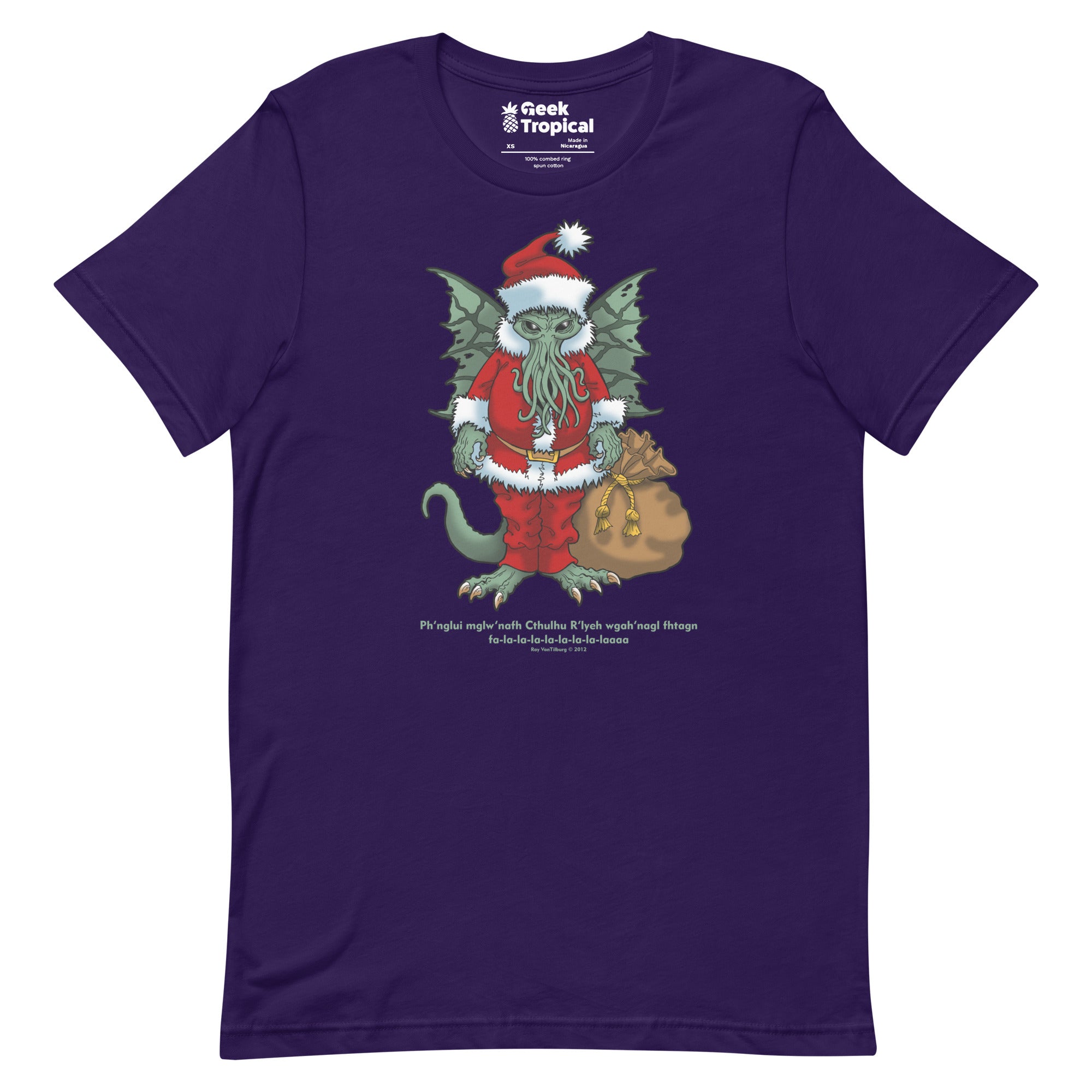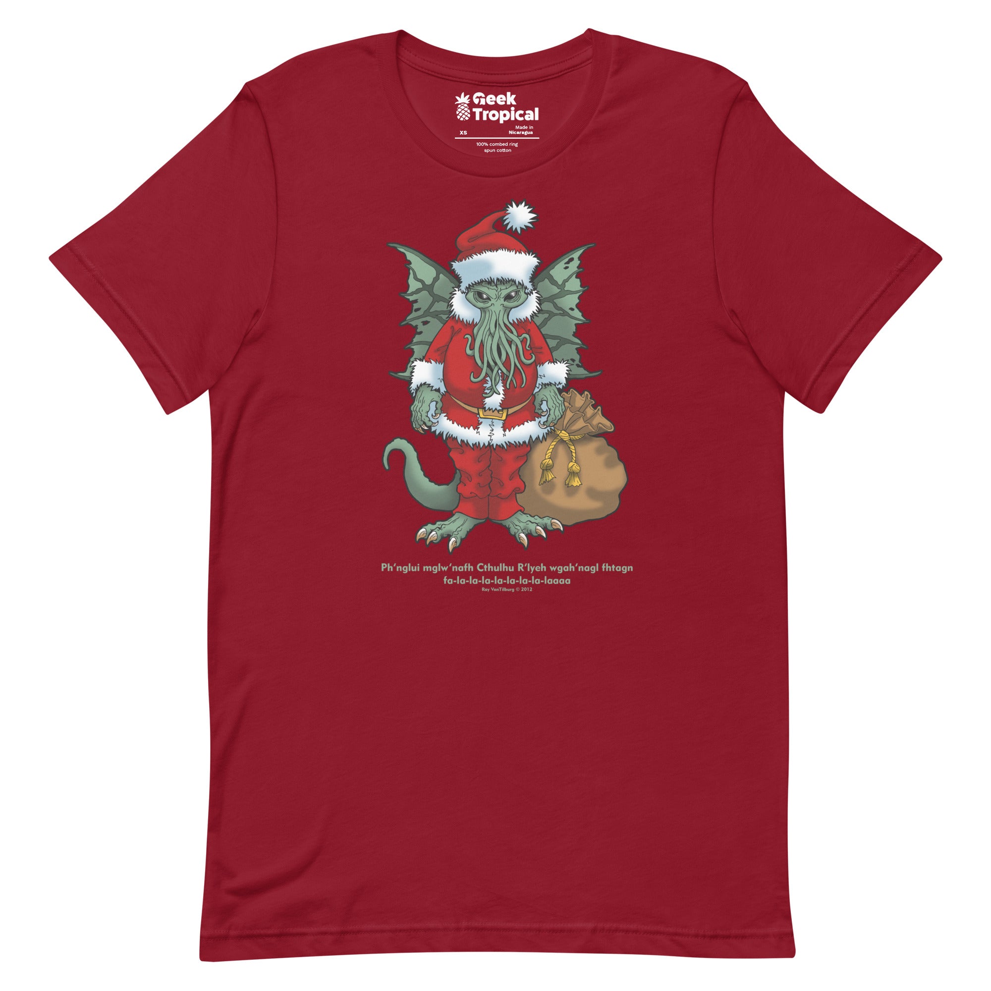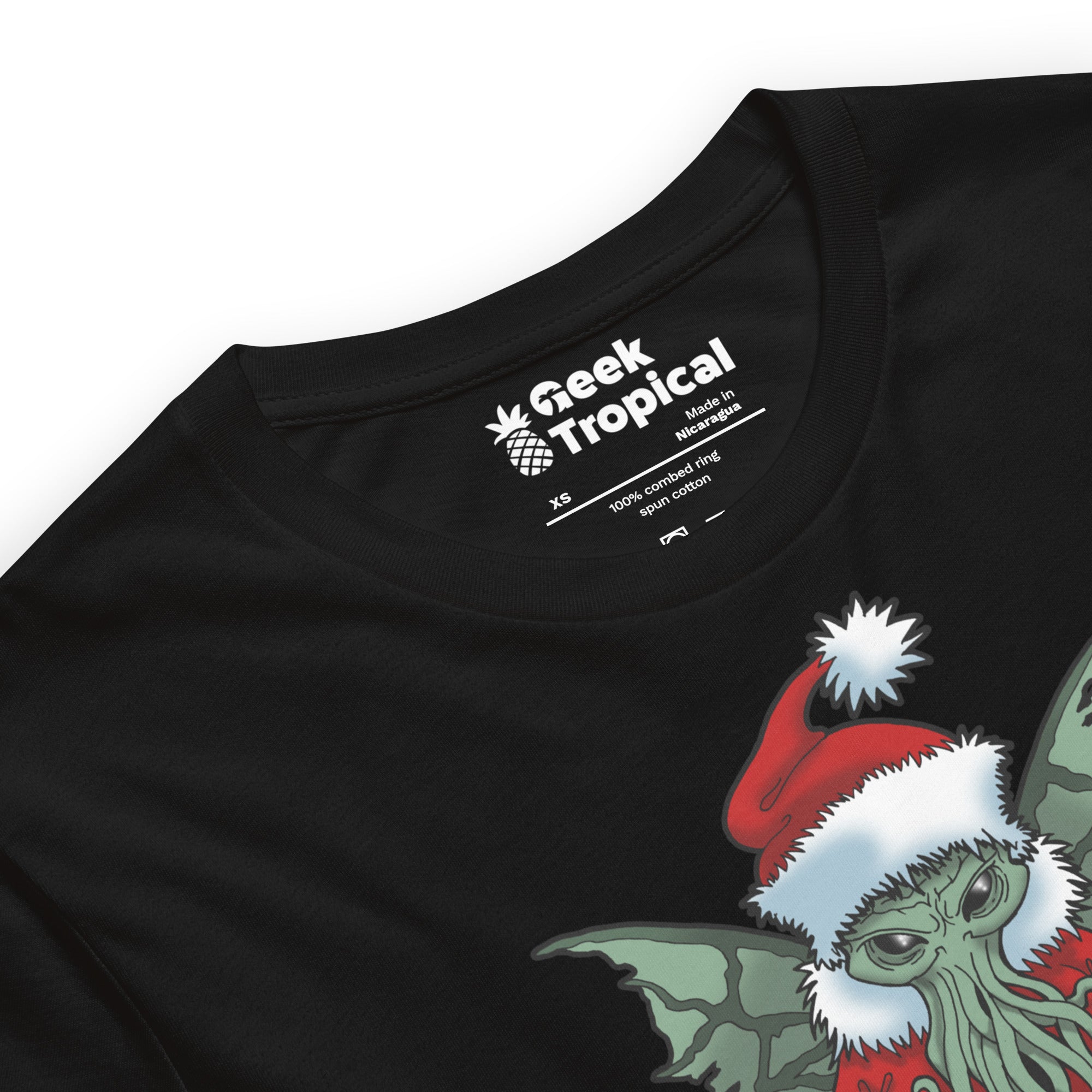 Xmas Cthulhu 2012 T-Shirt conjures merry‑meets‑mythos energy. A bold, detailed Cthulhu—tentacled visage and all—gets a cheeky seasonal twist for holiday hangs, game nights, or gifting the cult classic fan. Clean lines and vivid color keep the print sharp wear after wear. Artist-backed, licensed artwork designed by Off World Designs, and printed with eco‑conscious inks for eldritch cheer that ages beautifully.