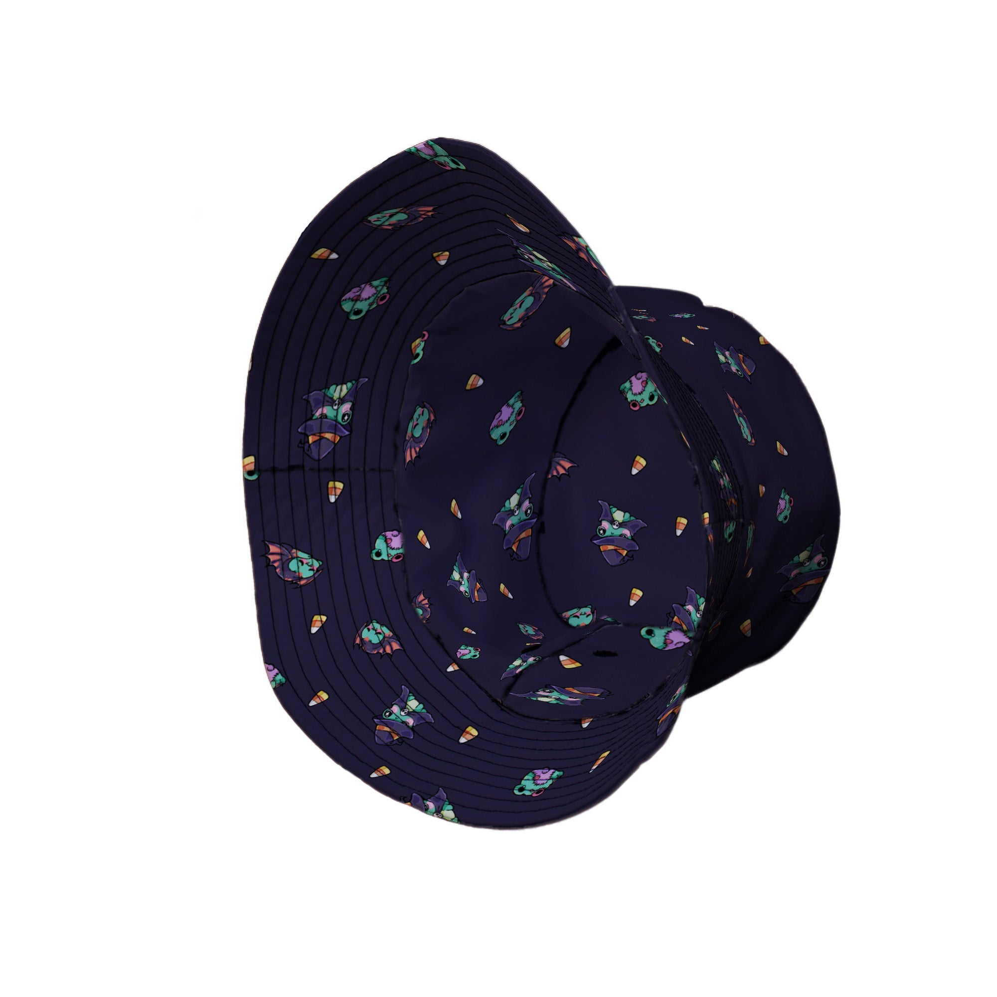 Zombie Frogs Bucket Hat by Ardi Tong turns campy horror into streetwear: an all-over swarm of cartoon undead frogs wraps crown and brim, with expressive eyes and gnarly grins that pop against a dark backdrop. Built for everyday quests—cons, beach days, or Halloween haunts. Geek Tropical style, artist-backed and ready for sun, shade, and shenanigans.